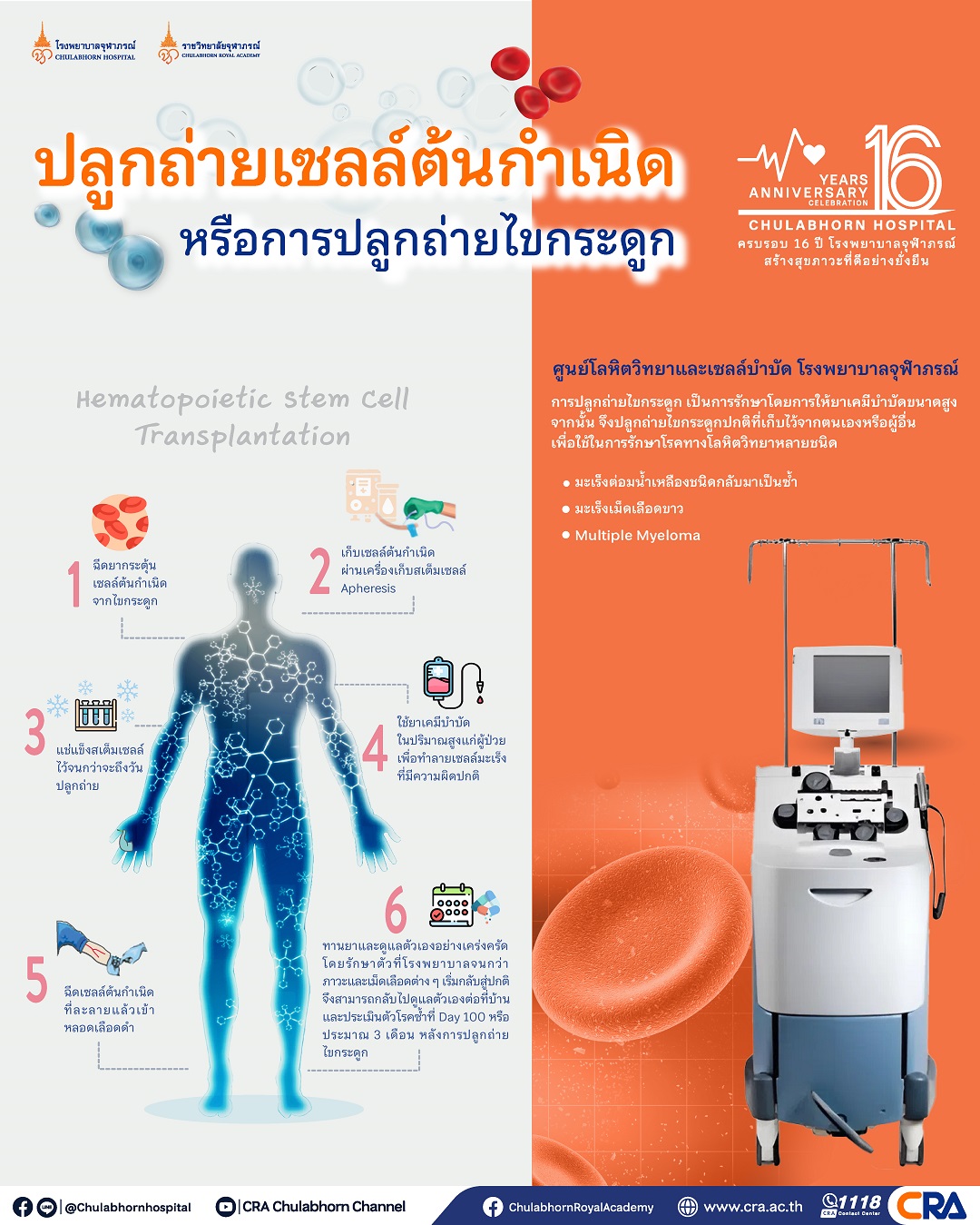 🧬การปลูกถ่ายเซลล์ต้นกำเนิด: นวัตกรรมพลิกฟื้นชีวิตผู้ป่วย โรคมะเร็งทางโลหิตวิทยาณ โรงพยาบาลจุฬาภรณ์