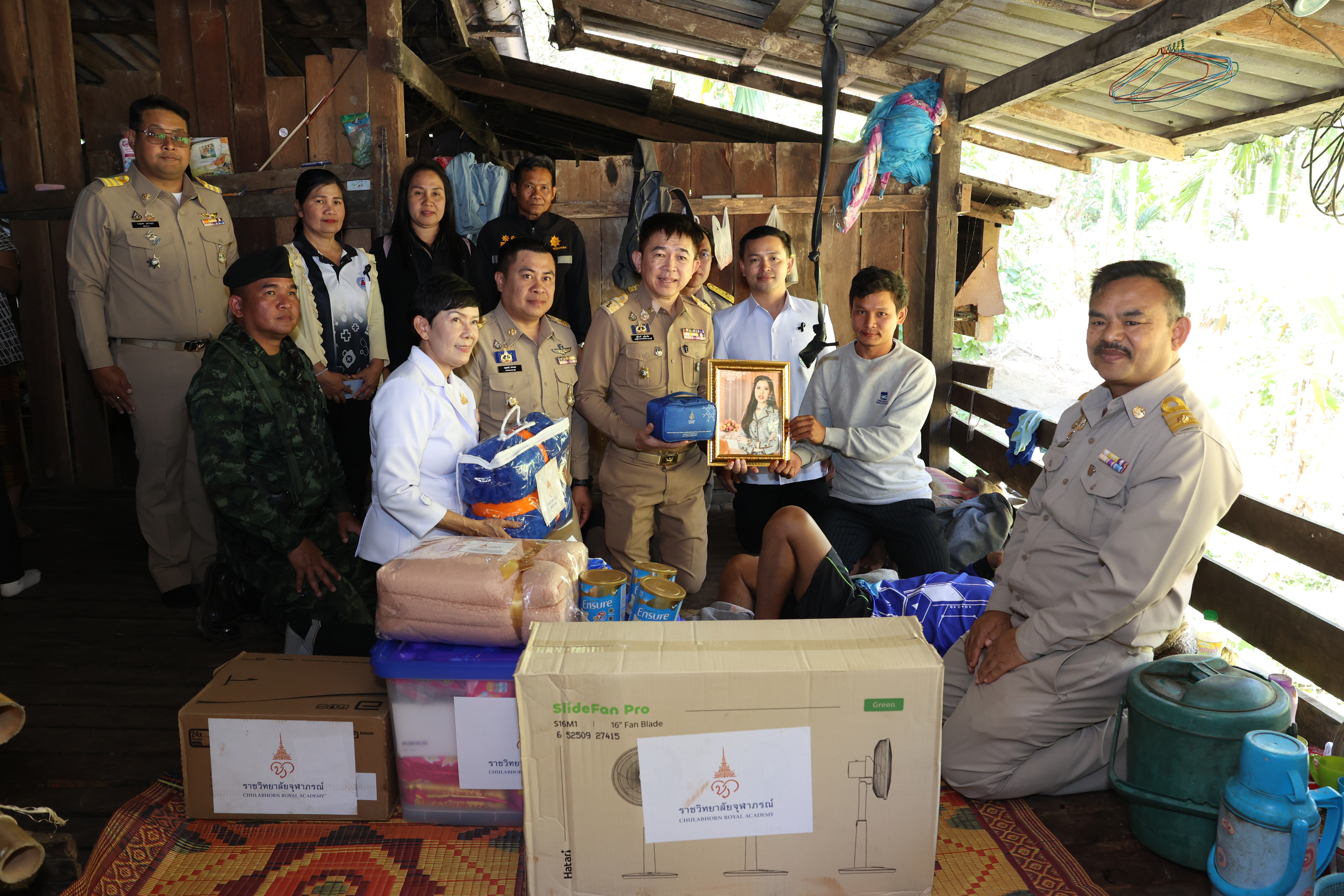 วันอังคารที่ ๑๗ กันยายน ๒๕๖๗ เวลา ๐๙.๓๐ น. ณ ลานที่ว่าการอำเภอเวียงแก่น จังหวัดเชียงราย ราชวิทยาลัยจุฬาภรณ์ เชิญถุงยังชีพพร้อมสิ่งของพระราชทาน สมเด็จพระเจ้าน้องนางเธอ เจ้าฟ้าจุฬาภรณวลัยลักษณ์ อัครราชกุมารี กรมพระศรีสวางควัฒน วรขัตติยราชนารี องค์ประธานและนายกสภาราชวิทยาลัยจุฬาภรณ์ ประกอบด้วยถุงยังชีพพระราชทานจำนวน ๕๐๐ ชุด และกระเป๋ายาสามัญประจำบ้านจำนวน ๓๐๐ ชุด มอบให้แก่ราษฎรที่ประสบอุทกภัย ในพื้นที่อำเภอเวียงแก่น จังหวัดเชียงราย โดยมีนายสุพจน์ ลังกาวีระนันท์ นายอำเภอเวียงแก่น จังหวัดเชียงราย เป็นประธานในพิธี เชิญสิ่งของพระราชทานฯ มอบให้แก่ตัวแทนราษฎรที่ประสบอุทกภัย โดยมีข้าราชการในพื้นใน ๔ ตำบล ได้แก่ ตำบลหล่ายงาว ตำบลม่วงยาย ตำบลท่าข้าม และตำบลปอ เข้าร่วมพิธีและกล่าวสำนึกในพระกรุณาธิคุณของสมเด็จเจ้าฟ้าฯ กรมพระศรีสวางควัฒน วรขัตติยราชนารี ที่ทรงห่วงใยและมีพระเมตตาแก่ราษฎรที่ได้รับความเดือดร้อนจากอุทกภัยในครั้งนี้ โดยราชวิทยาลัยจุฬาภรณ์ ได้นำส่งถุงยังชีพและสิ่งของพระราชทานฯ เพื่อเป็นการช่วยเยียวยาและบรรเทาความเดือดร้อน อีกทั้งเป็นขวัญกำลังใจแก่ผู้ประสบอุทกภัยในครั้งนี้ด้วย