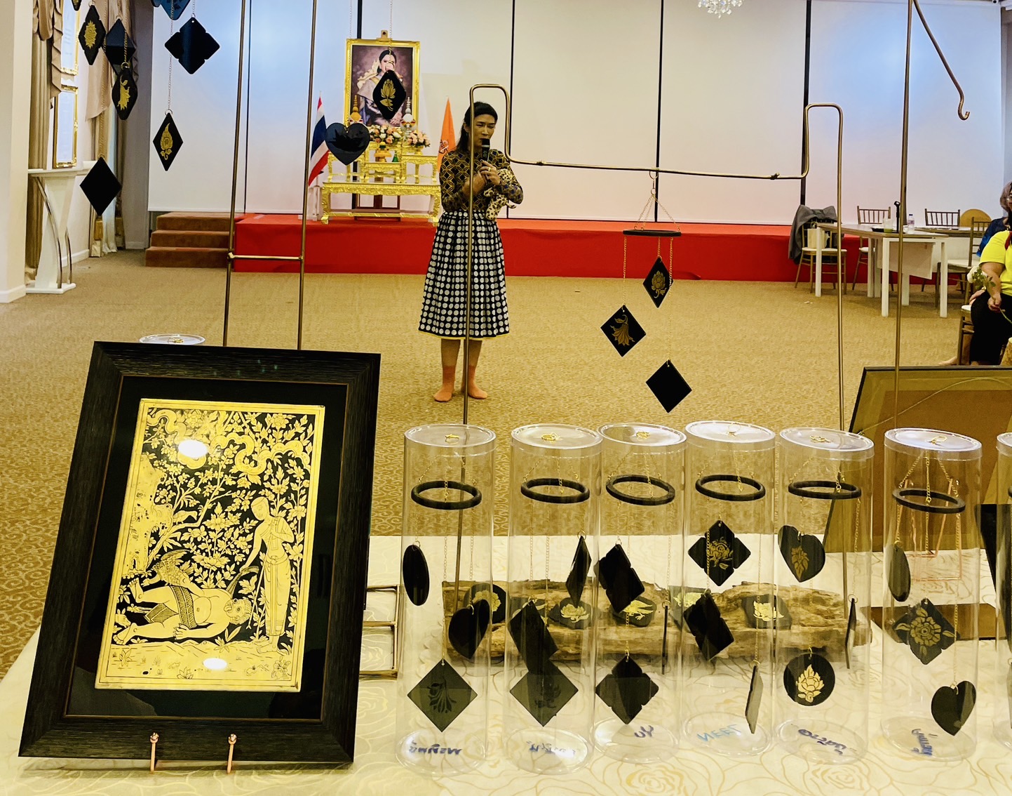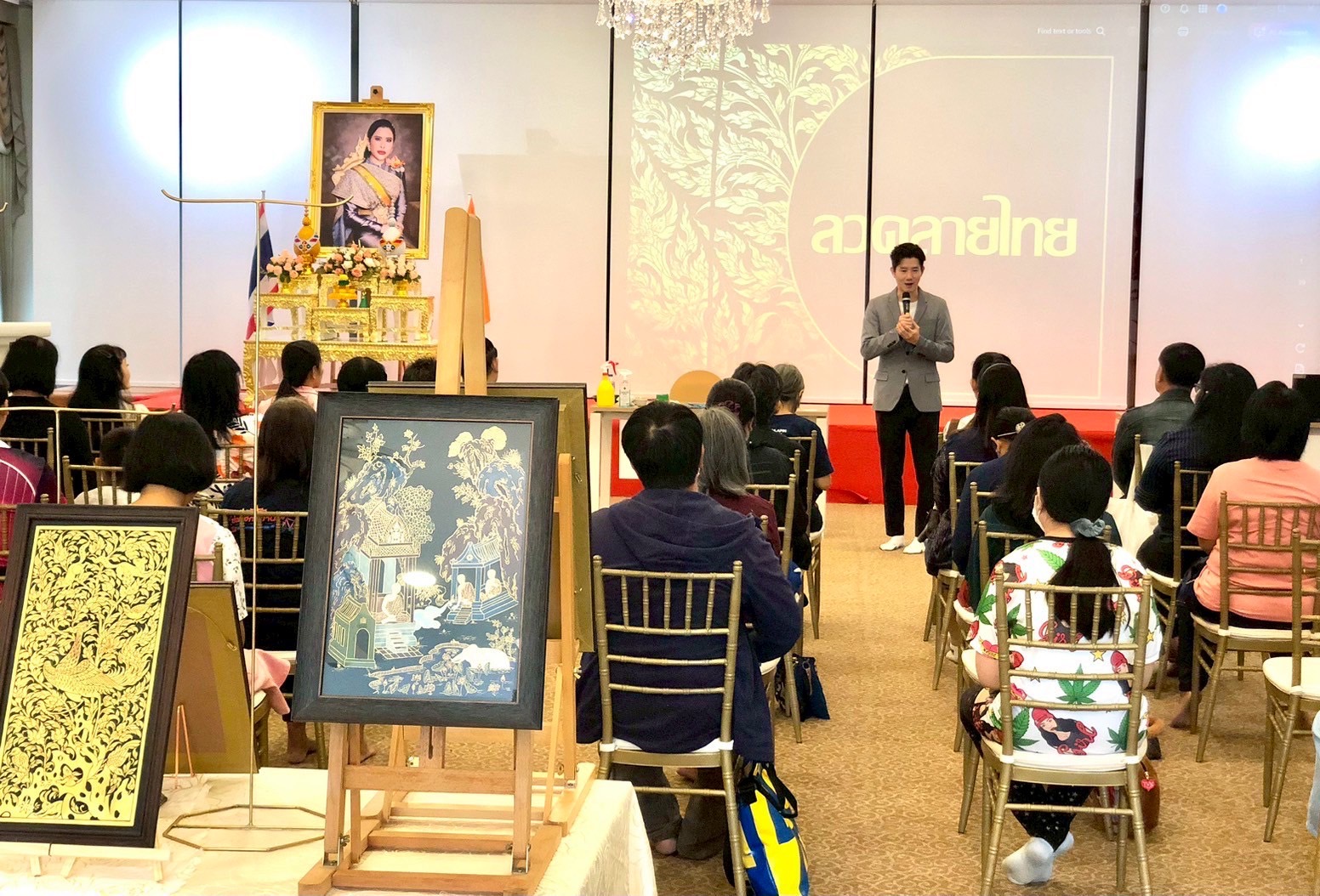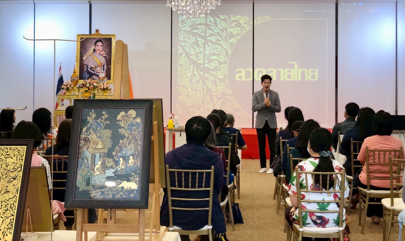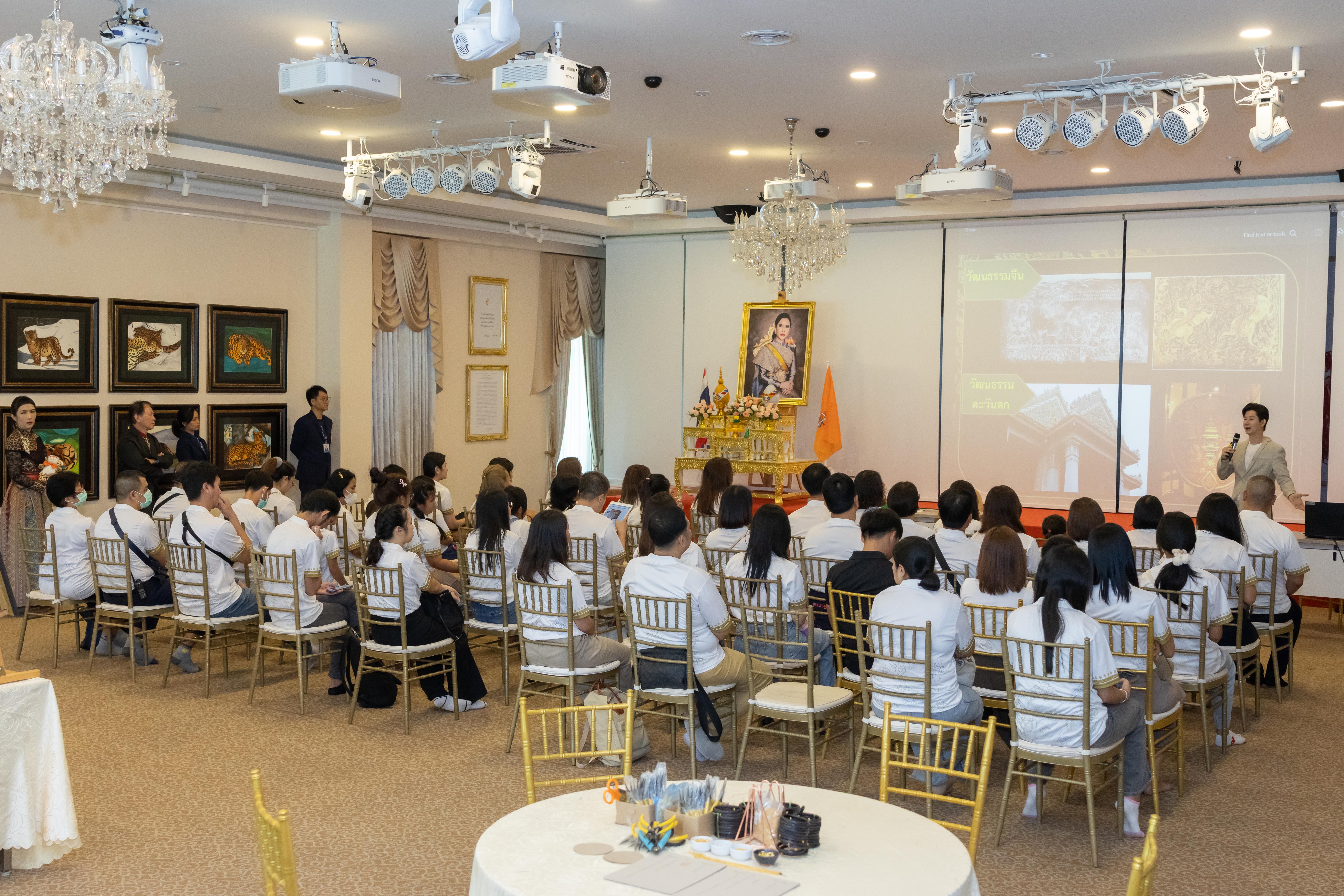 “ลายไทย” ถือเป็นมรดกทางด้านศิลปวัฒนธรรมที่วิจิตรงดงามและสืบเนื่องมาแต่ครั้งโบราณกาลของไทย สมเด็จพระเจ้าน้องนางเธอ เจ้าฟ้าจุฬาภรณวลัยลักษณ์ อัครราชกุมารี กรมพระศรีสวางควัฒน วรขัตติยราชนารี ทรงเห็นคุณค่าและให้ความสำคัญควบคู่ไปกับงานศิลปะแขนงอื่นๆ ด้วยทรงใช้เวลาว่างจากพระกรณียกิจ ด้วยการวาดภาพและระหว่างนั้นก็ยังทรงได้ฝึกฝนการเขียนลายไทย และในบางครั้งได้ปรับประยุกต์ใช้ลายไทย สอดแทรกในงานออกแบบรูปทรงที่สอดคล้องกับธรรมชาติและพื้นที่ที่เหมาะสมในผลงานสร้างสรรค์ นอกเหนือจากวัตถุประสงค์เพื่อแสดงออกถึงคุณค่าทางด้านความงามแล้ว กระบวนการในการสร้างสรรค์ยังเป็นเครื่องมืออันดีต่อการฝึกสมาธิ น้อมนำจิตใจให้เกิดความละเอียดอ่อน และทรงเห็นว่าลายไทยที่งดงามและอ่อนช้อยนั้นต้องใช้ทักษะการฝึกฝนและความเพียร ใช้สมาธิ ฝึกการสังเกต มีความอดทนอดกลั้น แต่เมื่อทรงเริ่มลงมือปฏิบัติ เหตุปัจจัยแก่การเข้าถึงความสงบของจิตก็เกิดขึ้นได้โดยง่าย ด้วยสิ่งนี้ จึงทรงเห็นว่าการศึกษาลายไทยเป็นประโยชน์ต่อจิตใจสร้างพลังใจ ด้วยภาวะดังกล่าวมีความคล้ายสภาวะขณะปฏิบัติธรรม ถือเป็นการนำเอาธรรมะเข้ามาใช้ในการทำงานศิลปะและชีวิตประจำวัน จากการที่สมเด็จพระเจ้าน้องนางเธอ เจ้าฟ้าจุฬาภรณวลัยลักษณ์ อัครราชกุมารี กรมพระศรีสวางควัฒน วรขัตติยราชนารี ทรงมีความสนพระทัยเกี่ยวกับลายไทยจึงเป็นที่มาของการจัดโครงการ “ทิพย์พิมานสร้างศิลป์” ครั้งที่ ๑/๒๕๖๘ (workshop: เครื่องแขวนลายทอง) เพื่อเป็นการส่งเสริมและพัฒนาการเรียนรู้ทางด้านศิลปะไทย ซึ่งการเขียนลายไทย ถือเป็นกระบวนการหนึ่งในการพัฒนาจิตใจให้เกิดสติปัญญา ทั้งผู้สร้างสรรค์และผู้ชมก็ล้วนได้ประโยชน์ ดังพระดำรัสที่ว่า “ศิลปะเป็นเครื่องกล่อมเกลาชีวิตของคน”