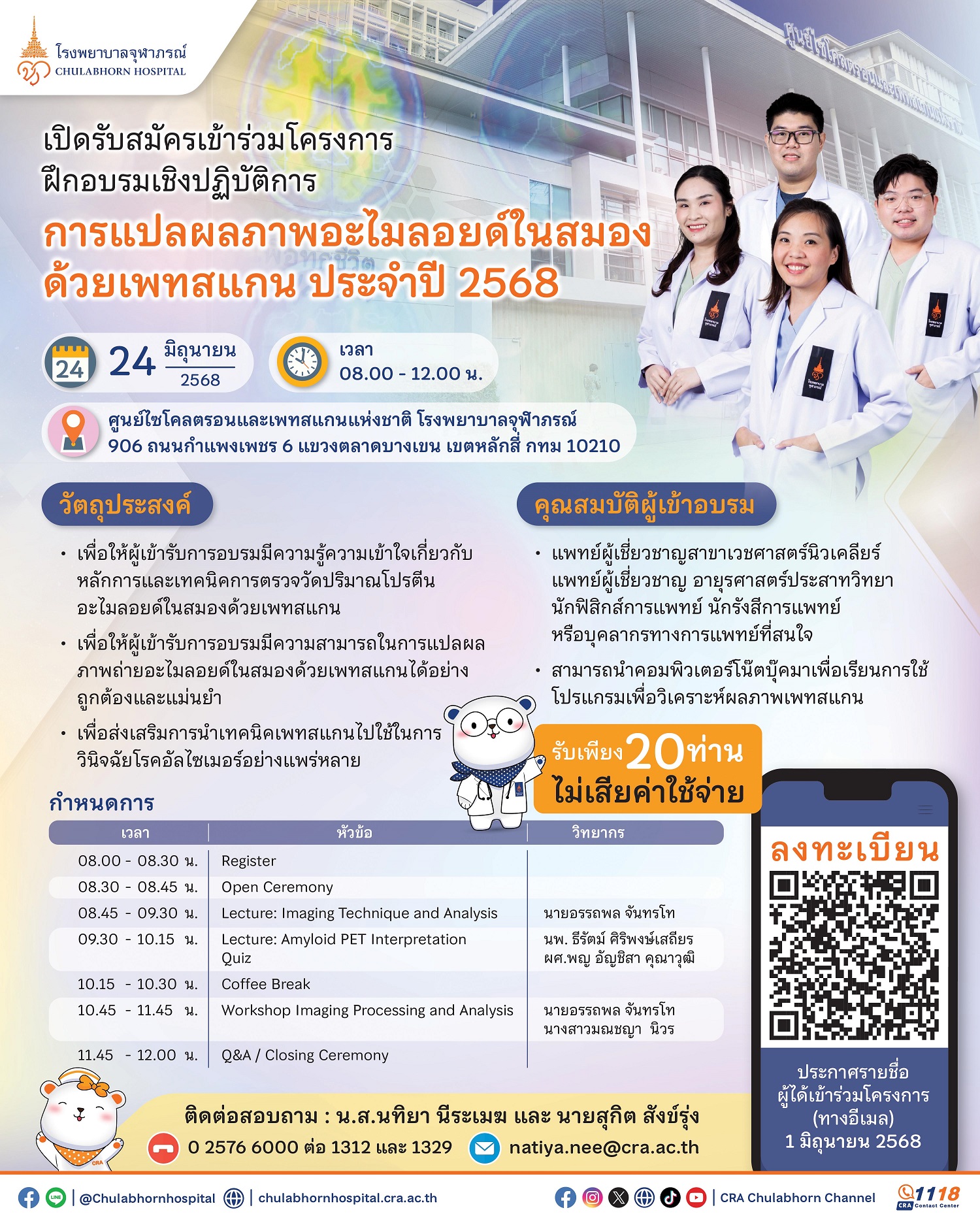 เปิดรับสมัครเข้าร่วมโครงการฝึกอบรมเชิงปฏิบัติการการแปลผลภาพอะไมลอยด์ในสมองด้วยเพทสแกน ประจำปี 2568