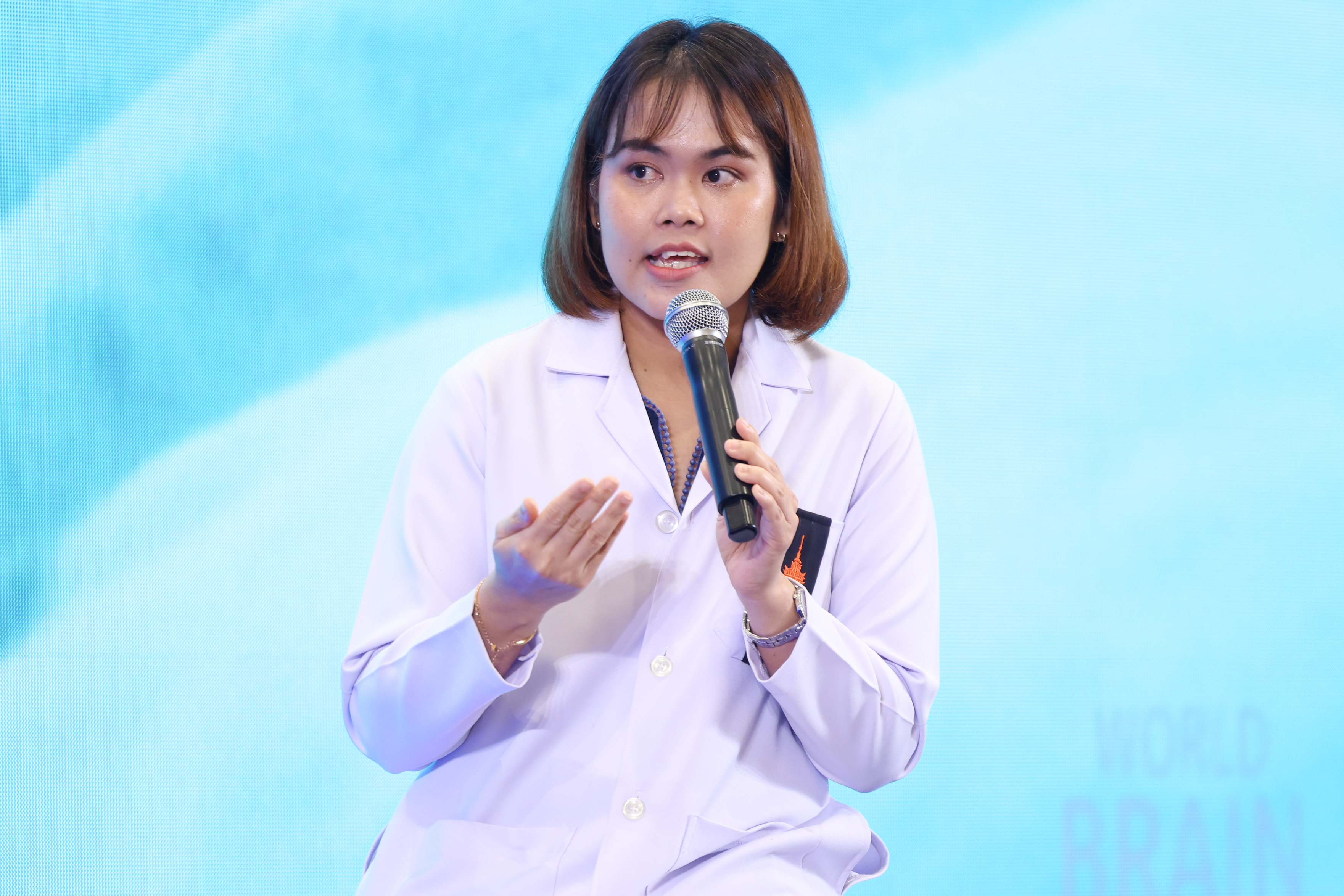 หัวข้อ “เบื้องหลังความสำเร็จ:วิสัญญีกับการผ่าตัดเนื้องอกสมอง” โดย พญ.นิศารัตน์ อาชวาคม วิสัญญีแพทย์เฉพาะทางสำหรับผู้ป่วยโรคทางระบบประสาท โรงพยาบาลจุฬาภรณ์ เปิดเผยถึง บทบาทวิสัญญีแพทย์เฉพาะทางด้านระบบประสาท โดยจะมีหน้าที่หลักในการดูแลผู้ป่วยที่เข้ารับการผ่าตัดทางระบบประสาท เช่น สมอง ไขสันหลัง และเส้นประสาท ซึ่งถือว่าเป็นการผ่าตัดที่มีความซับซ้อนสูง โดยเริ่มตั้งแต่การวางแผนและการเลือกใช้เทคนิคในการดมยาสลบให้เหมาะสมกับสภาวะของผู้ป่วย ลักษณะการผ่าตัด การเฝ้าระวังสัญญาณชีพและการทำงานของสมองขณะผ่าตัด รวมถึงการดูแลผู้ป่วยหลังผ่าตัด โดยเฉพาะในเรื่องการระงับปวด ซึ่งการวางยาสลบสำหรับผ่าตัดสมองแตกต่างกับการผ่าตัดทั่วไปเพราะการระงับความรู้สึกสำหรับการผ่าตัดทางระบบประสาท จำเป็นต้องอาศัยความรู้ทั้งด้านกายวิภาคและการทำงานของระบบประสาทเป็นอย่างดี เนื่องจากสมองเป็นอวัยวะที่เปราะบาง ต้องให้ความสำคัญกับการควบคุมความดันในกะโหลกศีรษะ ทั้งนี้เพื่อให้คุณหมอผ่าตัดสามารถผ่าตัดได้โดยง่าย, การเฝ้าระวังพิเศษ เช่น การดูคลื่นสมองระหว่างผ่าตัด การใช้เทคโนโลยีมอนิเตอร์การทำงานของสมอง ต้องเลือกยาที่ไม่รบกวนเทคนิคนั้น ๆ, อีกทั้งการผ่าตัดแบบพิเศษ เช่น awake craniotomy คือการที่คนไข้ยังตื่นรู้ตัวขณะผ่าตัด การฝังเครื่องกระตุ้นในสมอง เป็นต้น สำหรับการเตรียมตัวก่อนการผ่าตัดก็จะคล้าย ๆ กับการผ่าตัดทั่วไป เช่น การงดน้ำงดอาหารก่อนการผ่าตัด 8 ชั่วโมง, การหยุดสูบบุหรี่หรือแอลกอฮอล์, การหยุดยาบางชนิด เช่น ยาละลายลิ่มเลือด เป็นต้น และโดยส่วนใหญ่แล้วหลังผ่าตัดมีความจำเป็นที่ต้องสังเกตอาการที่ห้อง ICU อย่างน้อย 1 คืน เพื่อดูแลและประเมินอาการทางระบบประสาทอย่างใกล้ชิด แต่หากมีการผ่าตัดแบบพิเศษ เช่น awake craniotomy (การผ่าตัดสมองขณะตื่นอยู่) ก็อาจจะมีการเตรียมพร้อมที่มีรายละเอียดมากขึ้นหลัก ๆ จะมี 3ขั้นตอนง่าย ๆ คือ หลับ-ตื่น-หลับ วิสัญญีแพทย์จะมีการอธิบายถึงขั้นตอนอย่างละเอียดก่อน มีการให้ยาทางน้ำเกลือให้คนไข้หลับ และมีการบล็อกเส้นประสาทที่ไปเลี้ยงบริเวณศีรษะ ช่วงที่ศัลยแพทย์จะทำการตัดเอาเนื้องอกสมองออก ก็จะปิดยา คนไข้จะตื่นภายใน 15 นาที โดยไม่รู้สึกเจ็บ แต่อาจมีความรู้สึกเมื่อย หนาว และขัด ๆ สายสวนปัสสาวะได้ ระหว่างนี้จะมีการทำการผ่าตัดไปด้วย โดยที่ให้คนไข้พูดคุย อ่านรูป ยกแขน ยกขา ไปด้วย และหลังจากที่ผ่าตัดเอาก้อนออกเสร็จแล้ว หมอก็จะเปิดยาให้คนไข้หลับอีกครั้ง โดยที่คนไข้ไม่ต้องกังวลเลยเนื่องจากหมอจะอยู