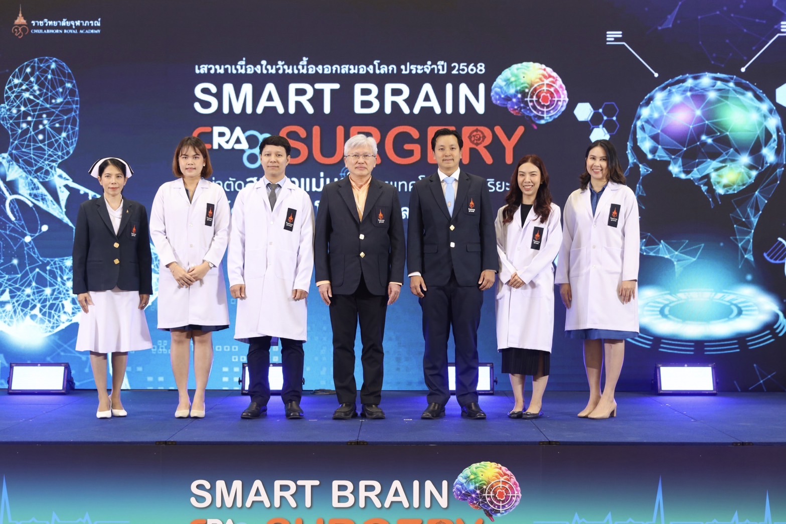“เนื้องอกในสมอง” เกิดจากการเจริญเติบโตผิดปกติของเซลล์ภายในสมอง การเจริญเติบโตเหล่านี้อาจเป็นมะเร็งหรือไม่ใช่มะเร็งก็ได้ แต่ไม่ว่าจะเป็นเนื้องอกชนิดใด ก็สามารถทำให้เกิดอาการทางระบบประสาทได้หลากหลายโดยหากมีรอยโรคบริเวณนี้แล้ว อาจทำให้เกิดความเสียหายที่รุนแรง เช่น พิการหรืออาจเสียชีวิต หากไม่ได้รับการรักษาที่ถูกต้องและทันเวลา ทั้งนี้ เพื่อสร้างความตระหนักและให้ความรู้เกี่ยวกับเนื้องอกในสมอง ศูนย์ศัลยกรรม โรงพยาบาลจุฬาภรณ์ ราชวิทยาลัยจุฬาภรณ์ จึงได้จัดกิจกรรมบริการสุขภาพด้านกลุ่มโรคสมองและระบบประสาท และบริการทางการแพทย์นวัตกรรมการผ่าตัดเนื้องอกในสมอง เนื่องในวันเนื้องอกในสมองโลก (World Brain Tumor Day) 2568 ภายใต้แนวคิด SMART BRAIN SURGERY “ผ่าตัดสมองแม่นยำด้วยเทคโนโลยีอัจฉริยะ” โดยมี รศ.นพ.สุรศักดิ์ ลีลาอุดมลิปิ รักษาการผู้อำนวยการโรงพยาบาลจุฬาภรณ์ กล่าวเปิดงาน พร้อมด้วยทีมศัลยแพทย์และอายุรแพทย์เฉพาะทางโรคสมองและระบบประสาท และวิสัญญีแพทย์โรงพยาบาลจุฬาภรณ์ นำโดย ผศ.ป.นพ.ปโยธร เดชะรินทร์ รักษาการหัวหน้างานศัลยกรรมทั่วไป แพทย์เฉพาะทางด้านศัลยกรรมระบบประสาทและรังสีร่วมรักษาระบบประสาท นพ.พงศกร พงศาพาส แพทย์เฉพาะทางด้านศัลยกรรมระบบประสาท พญ.อาทิตา ชูหลำ แพทย์เฉพาะทางด้านอายุรกรรมประสาทวิทยา พญ.นิศารัตน์ อาชวาคม วิสัญญีแพทย์เฉพาะทางสำหรับผู้ป่วยโรคทางระบบประสาท และคุณณัฏพล บุญเรือง พยาบาลวิชาชีพเฉพาะทางสาขาการพยาบาลผู้ป่วยโรคหลอดเลือดสมอง หอผู้ป่วยวิกฤตรวม โรงพยาบาลจุฬาภรณ์ เข้าร่วมงาน ณ ห้องประชุม Convention Hall ชั้น 6 อาคารกรมพระศรีสวางควัฒน โรงพยาบาลจุฬาภรณ์ โดยมีหมอก้อง สรวิชญ์ สุบุญ เป็นผู้ดำเนินรายการ วันศุกร์ที่ 6 มิถุนายน 2568