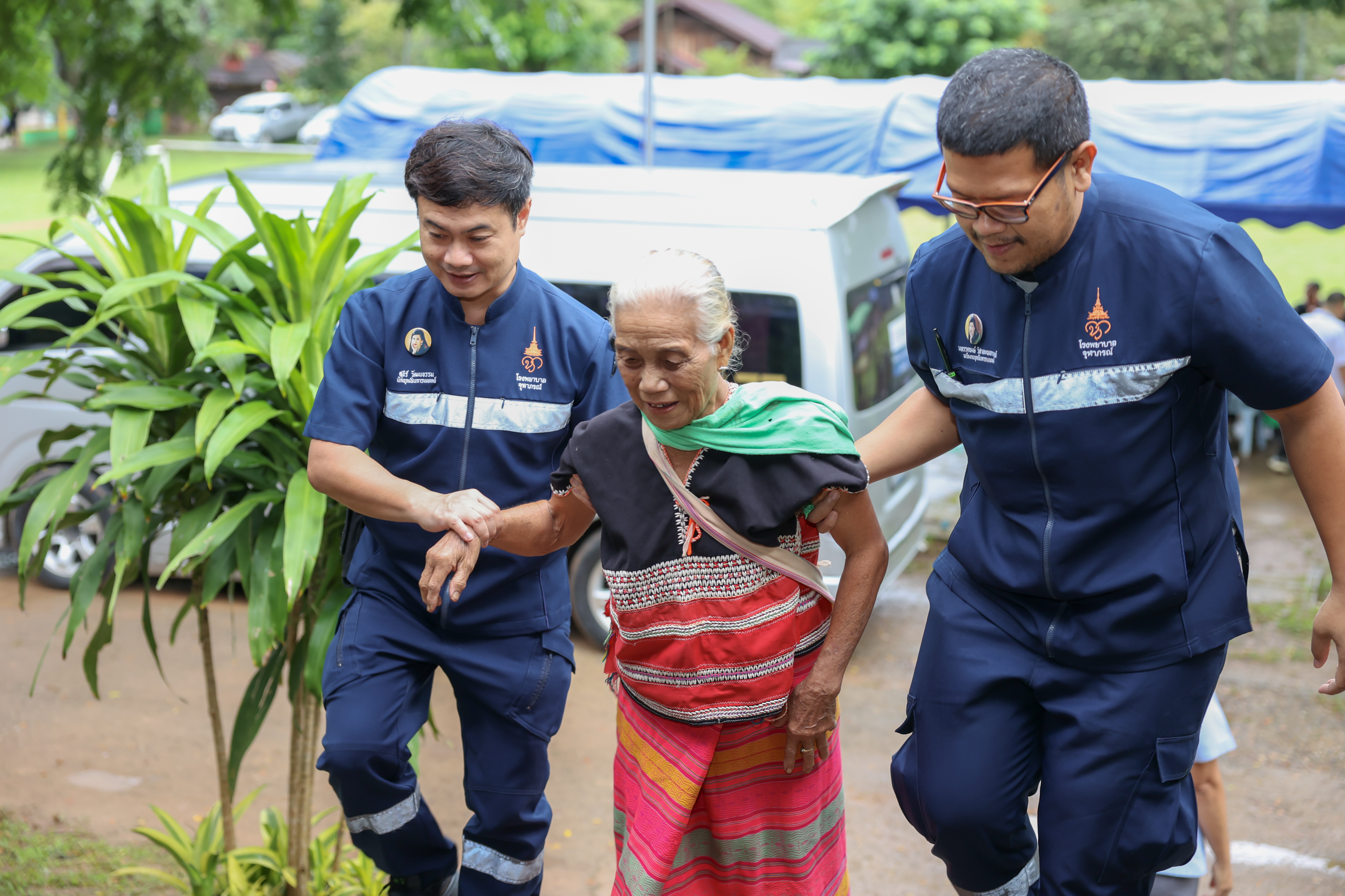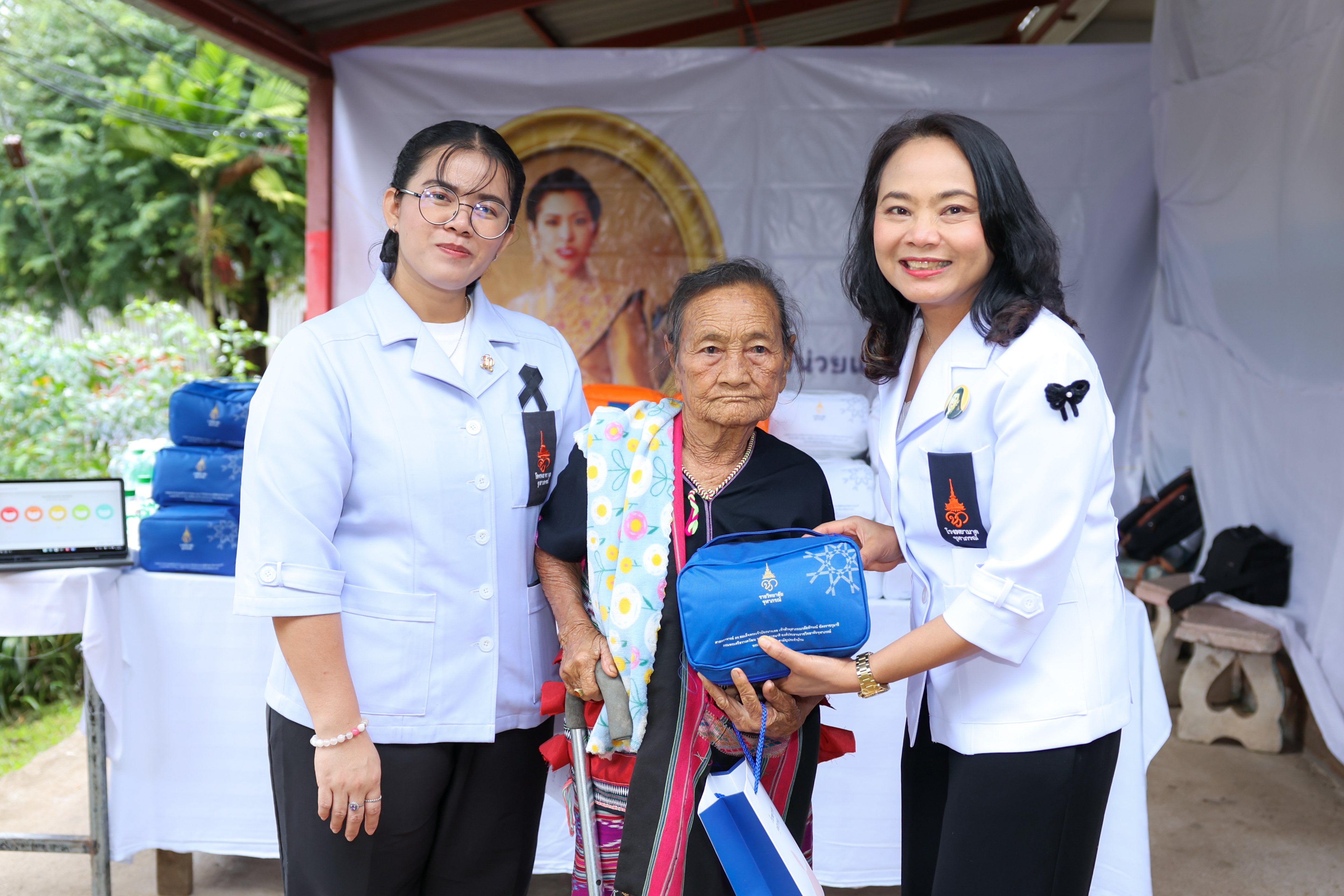 วันอังคารที่ 18 พฤศจิกายน 2568 ณ โรงเรียนบ้านนากลาง ตำบลลี้ อำเภอลี้ จังหวัดลำพูน ราชวิทยาลัยจุฬาภรณ์ เชิญผ้าห่มกันหนาวและสิ่งของพระราชทาน สมเด็จเจ้าฟ้า ฯ กรมพระศรีสวางควัฒน วรขัตติยราชนารี องค์ประธานและนายกสภาราชวิทยาลัยจุฬาภรณ์ พร้อมจัดหน่วยแพทย์พระราชทานโรงพยาบาลจุฬาภรณ์ออกให้บริการตรวจสุขภาพ โดยเชิญผ้าห่มกันหนาวพระราชทาน จำนวน 500 ผืน กระเป๋ายาพระราชทาน จำนวน 300 ชุด ให้แก่ประชาชนในพื้นที่อำเภอลี้ จังหวัดลำพูน โดยมีนายบูรณ์ ฐาปนดุลย์ รักษาการรองเลขาธิการราชวิทยาลัยจุฬาภรณ์ เป็นประธานในพิธี และนายวิวัฒน์ อินทร์ไทยวงศ์ ผู้ว่าราชการจังหวัดลำพูน หัวหน้าส่วนราชการฯ และประชาชนในพื้นที่ให้การต้อนรับ พร้อมร่วมกล่าวสำนึกในพระกรุณาธิคุณของ ศาสตราจารย์ ดร. สมเด็จเจ้าฟ้าฯ กรมพระศรีสวางควัฒน วรขัตติยราชนารี องค์ประธานและนายกสภาราชวิทยาลัยจุฬาภรณ์ ที่ทรงมีพระเมตตาต่อพสกนิกรชาวจังหวัดลำพูน ที่ได้รับความเดือดร้อนจากภัยหนาวในครั้งนี้ จากนั้นร่วมมอบสิ่งของพระราชทานแก่ประชาชนในพื้นที่ และได้เยี่ยมชมการให้บริการของหน่วยแพทย์พระราชทานโรงพยาบาลจุฬาภรณ์ที่ได้ตรวจสุขภาพให้กับประชาชน โดยในวันนี้มีผู้เข้ารับบริการตรวจสุขภาพรวม 237 ราย กลุ่มโรคที่พบมาก 5 อันดับแรก ได้แก่ 1.ระบบกล้ามเนื้อ กระดูกและข้อ 143 ราย 2.ระบบทางเดินอาหารและขับถ่าย 34 ราย 3.ระบบประสาท 16 ราย 4.ระบบจักษุ 12 ราย 5.ระบบผิวหนัง 11 ราย และจำนวนผู้ป่วยส่งต่อ 13 ราย พร้อมกันนี้ได้ลงพื้นที่ไปเยี่ยมบ้านและมอบกระเป๋ายาพระราชทานแก่ผู้ป่วยติดเตียงจำนวน 3 ราย ซึ่งประกอบด้วย