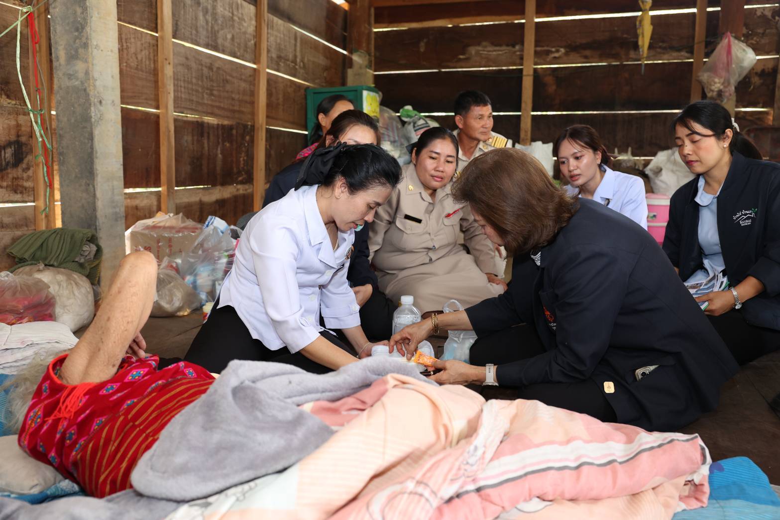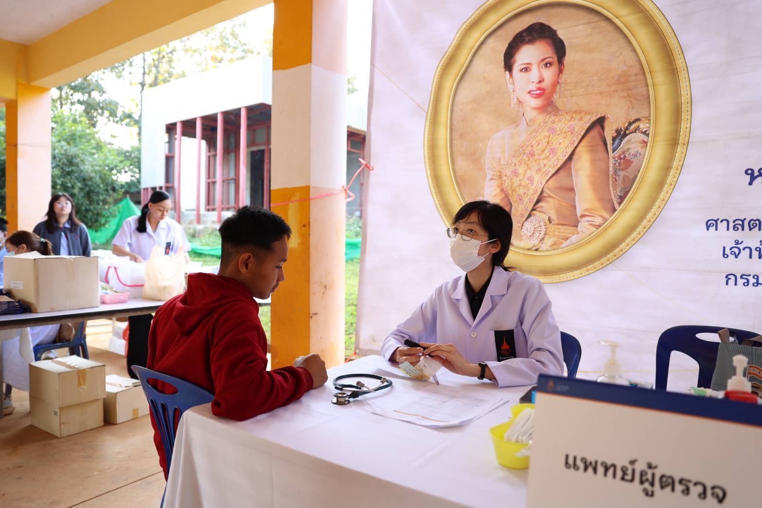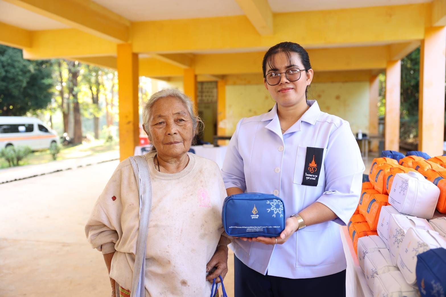 วันพฤหัสบดีที่ ๑๕ มกราคม ๒๕ ณ โรงเรียนบ้านอีมาดอีทราย ตำบลแก่นมะกรูด อำเภอบ้านไร่ จังหวัดอุทัยธานี ราชวิทยาลัยจุฬาภรณ์ จัดหน่วยแพทย์พระราชทานโรงพยาบาลจุฬาภรณ์ ให้บริการรักษาและคำแนะนำด้านสุขภาพแก่ประชาชน พร้อมเชิญผ้าห่มกันหนาวและสิ่งของพระราชทานที่ได้รับพระกรุณาธิคุณจาก สมเด็จเจ้าฟ้าฯ กรมพระศรีสวางควัฒน วรขัตติยราชนารี องค์ประธานและนายกสภาราชวิทยาลัยจุฬาภรณ์ ประกอบด้วยผ้าห่มกันหนาวพระราชทาน จำนวน ๕๐๐ ผืน และกระเป๋ายาพระราชทาน จำนวน ๒๐๐ ชุด มอบให้แก่ประชาชนในพื้นที่ตำบลแก่นมะกรูด อำเภอบ้านไร่ จังหวัดอุทัยธานี โดยมีรองศาสตราจารย์ ดร.เภสัชกรหญิงจุฑามณี สุทธิสีสังข์ รักษาการรองเลขาธิการราชวิทยาลัยจุฬาภรณ์ เป็นประธานในพิธี นายธีรพัฒน์ คัชมาตย์ ผู้ว่าราชการจังหวัดอุทัยธานี พร้อมด้วยหัวหน้าส่วนราชการและประชาชนในพื้นที่ให้การต้อนรับ พร้อมกันนี้ ได้ร่วมกล่าวสำนึกในพระกรุณาธิคุณของ สมเด็จเจ้าฟ้าฯ กรมพระศรีสวางควัฒน วรขัตติยราชนารี ที่ทรงมีพระเมตตาและห่วงใยต่อความเป็นอยู่ของประชาชนที่ได้รับความเดือดร้อนจากภัยหนาวในครั้งนี้ จากนั้นร่วมมอบสิ่งของพระราชทาน และเยี่ยมชมการให้บริการของหน่วยแพทย์พระราชทานโรงพยาบาลจุฬาภรณ์ โดยในวันนี้มีผู้เข้ารับบริการตรวจสุขภาพรวม ๒๒๔ ราย กลุ่มโรคที่พบมาก ๕ อันดับแรก ได้แก่ ๑. ระบบทางเดินหายใจ จำนวน ๖๔ ราย ๒. ระบบกล้ามเนื้อกระดูกและข้อ จำนวน ๕๕ ราย ๓. ระบบหัวใจและหลอดเลือด จำนวน ๒๒ ราย ๔. ระบบทางเดินอาหารและการขับถ่าย จำนวน ๒๑ ราย ๕. ระบบปกคลุมร่างกายและผิวหนัง ๗ ราย และจำนวนผู้ป่วยส่งต่อ ๑๒ ราย พร้อมกันนี้ได้ลงพื้นที่ไปเยี่ยมบ้านและมอบกระเป๋ายาพระราชทานแก่ผู้ป่วยติดเตียงจำนวน ๓ รายประกอบด้วย๑. นางมือยี่ วาจักดี อายุ ๗๙ ปี มีอาการปวดขา ปวดหลัง เป็นๆหายๆ๒. นางนองเค้ง เจะเละ อายุ ๘๕ ปี ตาทั้งสองข้างมองไม่เห็น รับประทานอาหารได้น้อย สามารถรับประทานอาหารได้เฉพาะอาหารเหลว และมีแผลกดทับ๓. นางอุบล น้ำพุ อายุ ๖๕ ปี แขนขาอ่อนแรง เป็นผู้ป่วยติดเตียง ลุกเดินไม่ได้