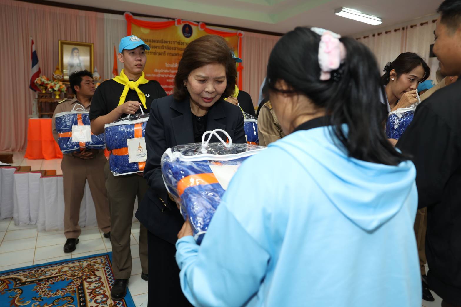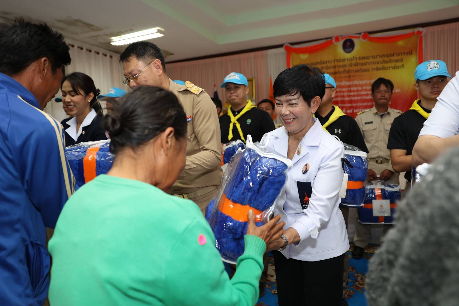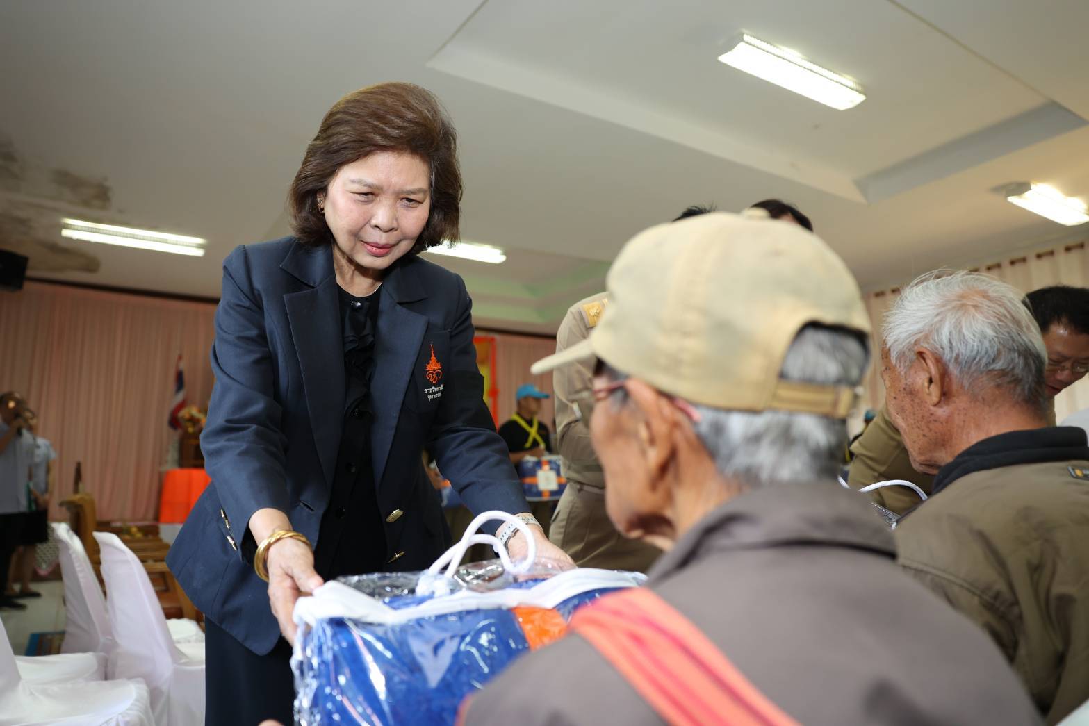 วันพฤหัสบดีที่ ๑๕ มกราคม ๒๕ ณ โรงเรียนบ้านอีมาดอีทราย ตำบลแก่นมะกรูด อำเภอบ้านไร่ จังหวัดอุทัยธานี ราชวิทยาลัยจุฬาภรณ์ จัดหน่วยแพทย์พระราชทานโรงพยาบาลจุฬาภรณ์ ให้บริการรักษาและคำแนะนำด้านสุขภาพแก่ประชาชน พร้อมเชิญผ้าห่มกันหนาวและสิ่งของพระราชทานที่ได้รับพระกรุณาธิคุณจาก สมเด็จเจ้าฟ้าฯ กรมพระศรีสวางควัฒน วรขัตติยราชนารี องค์ประธานและนายกสภาราชวิทยาลัยจุฬาภรณ์ ประกอบด้วยผ้าห่มกันหนาวพระราชทาน จำนวน ๕๐๐ ผืน และกระเป๋ายาพระราชทาน จำนวน ๒๐๐ ชุด มอบให้แก่ประชาชนในพื้นที่ตำบลแก่นมะกรูด อำเภอบ้านไร่ จังหวัดอุทัยธานี โดยมีรองศาสตราจารย์ ดร.เภสัชกรหญิงจุฑามณี สุทธิสีสังข์ รักษาการรองเลขาธิการราชวิทยาลัยจุฬาภรณ์ เป็นประธานในพิธี นายธีรพัฒน์ คัชมาตย์ ผู้ว่าราชการจังหวัดอุทัยธานี พร้อมด้วยหัวหน้าส่วนราชการและประชาชนในพื้นที่ให้การต้อนรับ พร้อมกันนี้ ได้ร่วมกล่าวสำนึกในพระกรุณาธิคุณของ สมเด็จเจ้าฟ้าฯ กรมพระศรีสวางควัฒน วรขัตติยราชนารี ที่ทรงมีพระเมตตาและห่วงใยต่อความเป็นอยู่ของประชาชนที่ได้รับความเดือดร้อนจากภัยหนาวในครั้งนี้ จากนั้นร่วมมอบสิ่งของพระราชทาน และเยี่ยมชมการให้บริการของหน่วยแพทย์พระราชทานโรงพยาบาลจุฬาภรณ์ โดยในวันนี้มีผู้เข้ารับบริการตรวจสุขภาพรวม ๒๒๔ ราย กลุ่มโรคที่พบมาก ๕ อันดับแรก ได้แก่ ๑. ระบบทางเดินหายใจ จำนวน ๖๔ ราย ๒. ระบบกล้ามเนื้อกระดูกและข้อ จำนวน ๕๕ ราย ๓. ระบบหัวใจและหลอดเลือด จำนวน ๒๒ ราย ๔. ระบบทางเดินอาหารและการขับถ่าย จำนวน ๒๑ ราย ๕. ระบบปกคลุมร่างกายและผิวหนัง ๗ ราย และจำนวนผู้ป่วยส่งต่อ ๑๒ ราย พร้อมกันนี้ได้ลงพื้นที่ไปเยี่ยมบ้านและมอบกระเป๋ายาพระราชทานแก่ผู้ป่วยติดเตียงจำนวน ๓ รายประกอบด้วย๑. นางมือยี่ วาจักดี อายุ ๗๙ ปี มีอาการปวดขา ปวดหลัง เป็นๆหายๆ๒. นางนองเค้ง เจะเละ อายุ ๘๕ ปี ตาทั้งสองข้างมองไม่เห็น รับประทานอาหารได้น้อย สามารถรับประทานอาหารได้เฉพาะอาหารเหลว และมีแผลกดทับ๓. นางอุบล น้ำพุ อายุ ๖๕ ปี แขนขาอ่อนแรง เป็นผู้ป่วยติดเตียง ลุกเดินไม่ได้