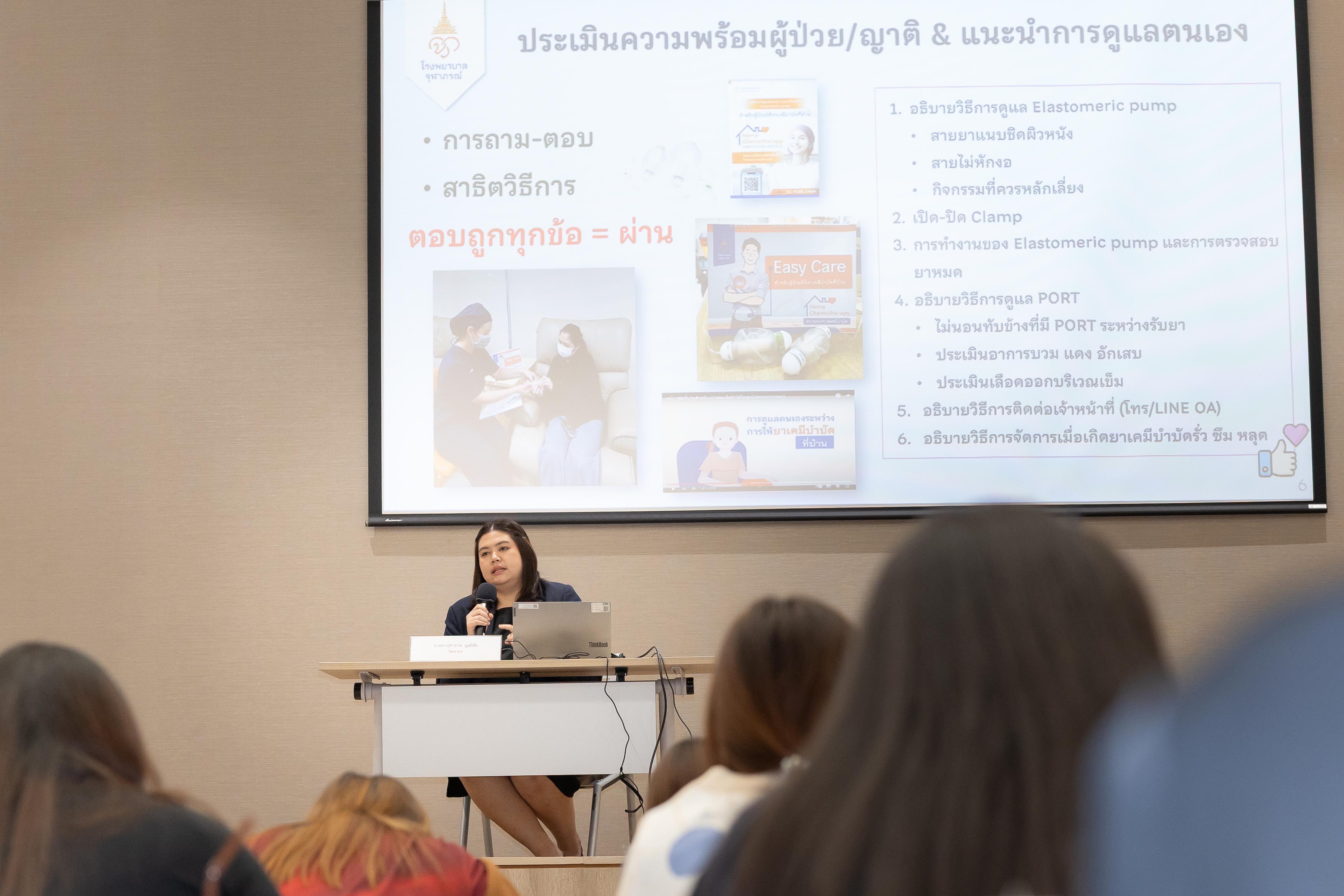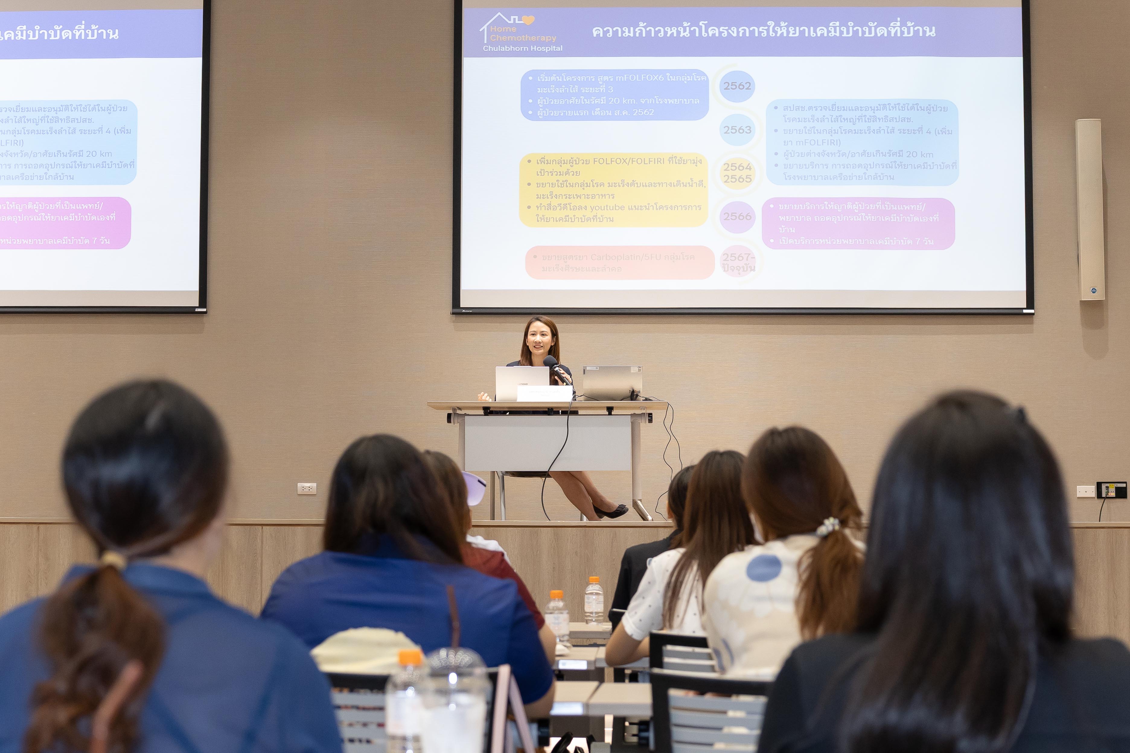 กิจกรรมครั้งนี้ ได้รับความร่วมมือจากทีมแพทย์ พยาบาลและบุคลากรทางการแพทย์โรงพยาบาลจุฬาภรณ์ ร่วมบรรยายให้ความรู้ในหัวข้อต่างๆ เช่น นวัตกรรมการรักษาโรคมะเร็งจากการให้เคมีบำบัดในโรงพยาบาลสู่การให้ยาเคมีบำบัดที่บ้าน และเทคนิคสำคัญในการดูแล PORT โดยมีวิทยากรแพทย์ผู้เชี่ยวชาญ อาทิ แพทย์หญิงชญานี สำแดงปั้น อายุรแพทย์มะเร็งวิทยา ,นายแพทย์ธนกร เจริญธนดล อายุรแพทย์มะเร็งวิทยา พญ.ปริชญา บุญสูง ภก.เอกวรรณ เดชสุรพงศ์ พร้อมด้วยพยาบาลวิชาชีพจากศูนย์มะเร็งวิทยา โรงพยาบาลจุฬาภรณ์ ให้ความรู้ในด้านการเตรียมความพร้อมสำหรับการรับยาเคมีบำบัดที่บ้าน,การดูแลผู้ป่วยรับยาเคมีบำบัดที่บ้านอย่างองค์รวม นอกจากนี้ ภายในงานยังมีกิจกรรม Workshop เรื่องเทคนิคการดูแล PORT ,เทคนิคการติด Elastomeric Pump และการให้คำแนะนำผู้ป่วยเมื่อกลับไปอยู่ที่บ้าน เป็นต้น