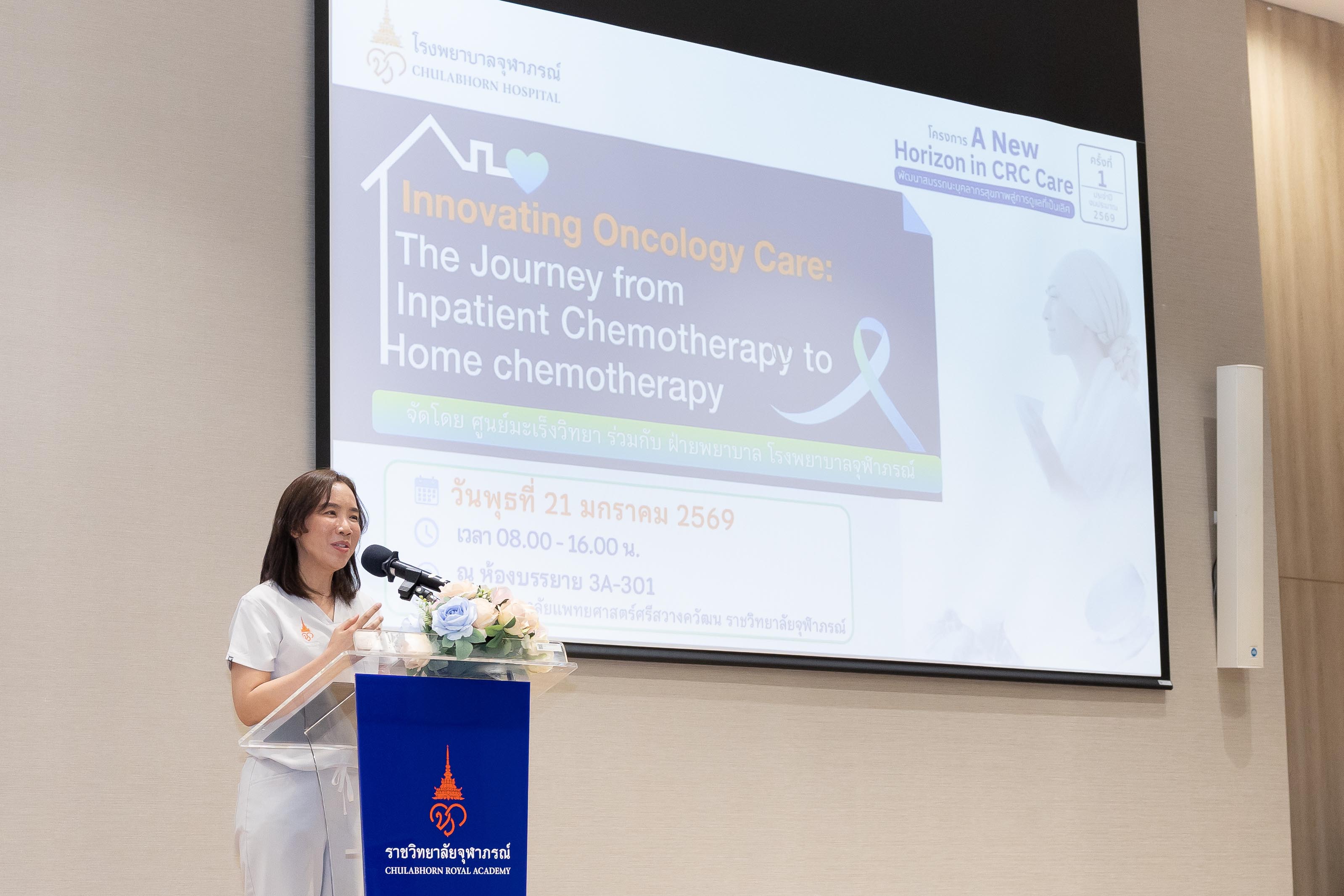 21 มกราคม 2569 ศูนย์มะเร็งวิทยา โรงพยาบาลจุฬาภรณ์ ราชวิทยาลัยจุฬาภรณ์ จัดอบรมโครงการ “A New Horizon in CRC Care : พัฒนาสมรรถนะบุคลากรสุขภาพสู่การดูแลที่เป็นเลิศ” ครั้งที่ 1 Innovating Oncology Care : The Journey from Inpatient Chemotherapy to Home chemotherapy โดยมี รศ.พญ.ชนิสา โชติพานิช รองผู้อำนวยการโรงพยาบาลจุฬาภรณ์ เป็นประธานในพิธี พร้อมด้วย พญ.จอมธนา ศิริไพบูลย์ ผู้อำนวยการศูนย์มะเร็งวิทยา โรงพยาบาลจุฬาภรณ์ ให้เกียรติกล่าวรายงาน พร้อมด้วยทีมแพทย์ พยาบาลและบุคลากรทางการแพทย์เข้าร่วมงาน ณ ห้องบรรยาย 3D – 301 อาคารวิทยาลัยแพทยศาสตร์ศรีสวางควัฒน ราชวิทยาลัยจุฬาภรณ์