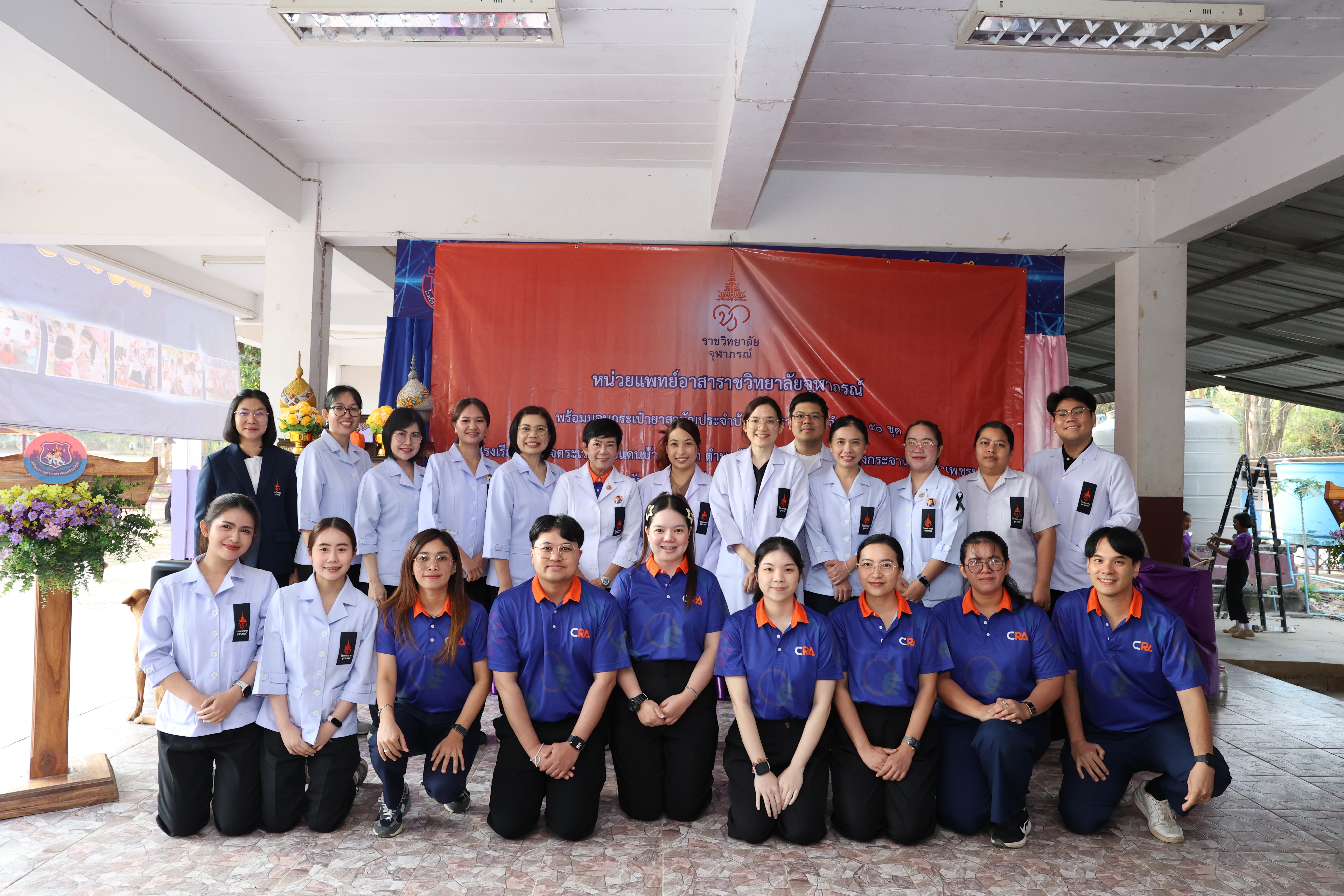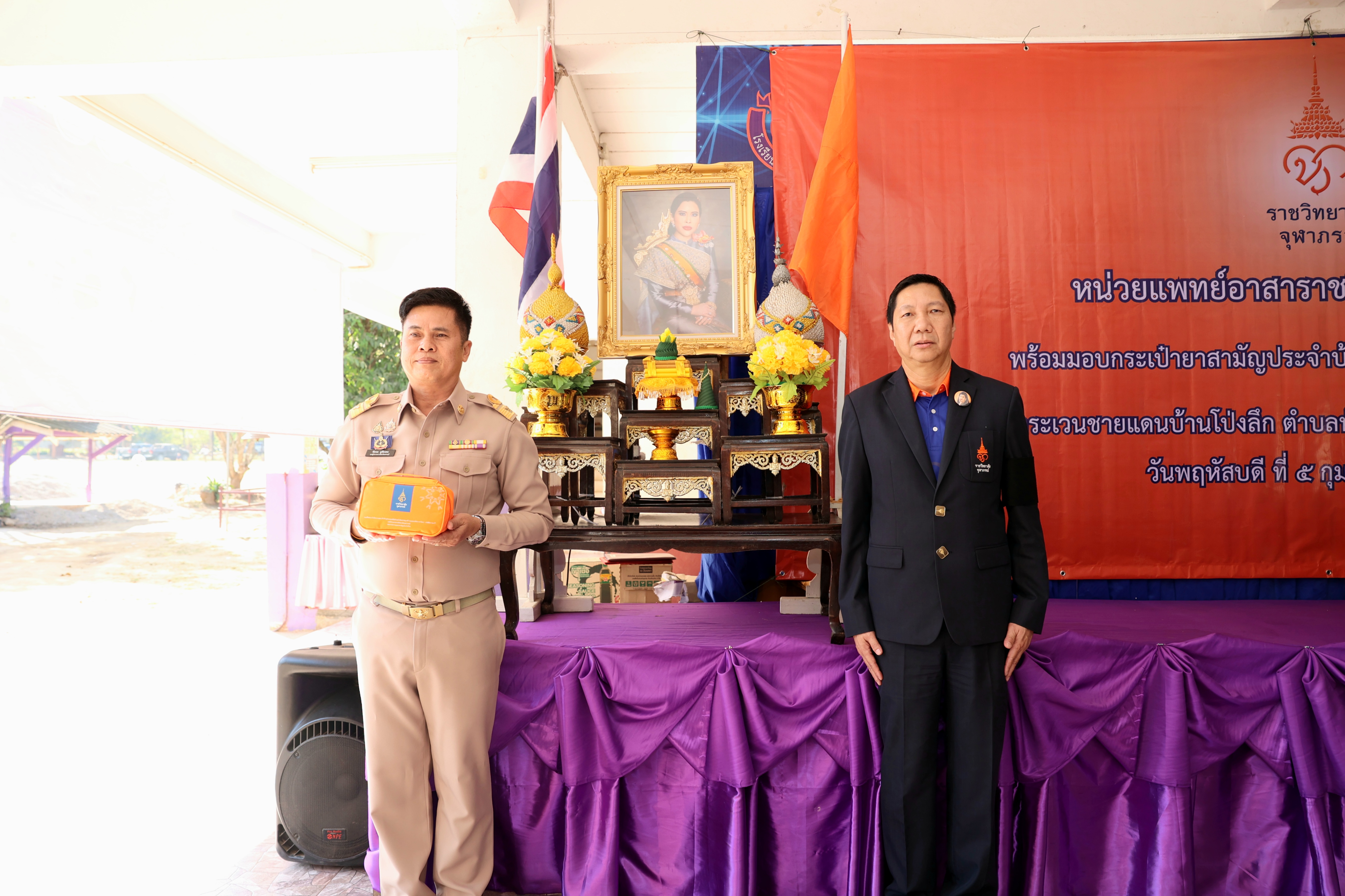 วันพฤหัสบดีที่ ๕ กุมภาพันธ์ ๒๕๖๙ ณ โรงเรียนตำรวจตระเวนชายแดนบ้านโป่งลึก ตำบลห้วยแม่เพรียง อำเภอแก่งกระจาน จังหวัดเพชรบุรี ราชวิทยาลัยจุฬาภรณ์ จัดหน่วยแพทย์อาสาราชวิทยาลัยจุฬาภรณ์ ออกให้บริการตรวจสุขภาพ พร้อมมอบกระเป๋ายาพระราชทาน แก่นักเรียนโรงเรียนตำรวจตระเวนชายแดนบ้านโป่งลึก โดยมี ผู้ช่วยศาสตราจารย์ ดร.รวิน ระวิวงศ์ รักษาการรองเลขาธิการราชวิทยาลัยจุฬาภรณ์ เป็นประธานในพิธี การนายชัยพล ภูต้องลม รองผู้ว่าราชการจังหวัดเพชรบุรี และหัวหน้าส่วนราชการ พร้อมหัวหน้าส่วนราชการในพื้นที่ ร่วมให้การต้อนรับ พร้อมกล่าวสำนึกในพระกรุณาธิคุณของ ศาสตราจารย์ ดร. สมเด็จพระเจ้าน้องนางเธอ เจ้าฟ้าจุฬาภรณวลัยลักษณ์ อัครราชกุมารี กรมพระศรีสวางควัฒน วรขัตติยราชนารี องค์ประธานและนายกสภาราชวิทยาลัยจุฬาภรณ์ ที่ทรงมีพระเมตตาและห่วงใยต่อประชาชน และนักเรียนในพื้นที่ พร้อมกันนี้ ฝ่ายโครงการตามพระดำริและงานส่วนพระองค์ ราชวิทยาลัยจุฬาภรณ์ ได้จัดกิจกรรม “โครงการ ราชวิทยาลัยจุฬาภรณ์ อาสาสนุก ปันสุข เพื่อน้อง ปี ๒” ซึ่งเป็นกิจกรรมนันทนาการ กิและให้ความรู้ด้านโภชนาการแก่น้องๆ นักเรียนในพื้นที่ พร้อมมอบสิ่งของอุปโภคบริโภค และอุปกรณ์กีฬาให้แก่รงเรียนตำรวจตระเวนชายแดนบ้านโป่งลึกด้วย