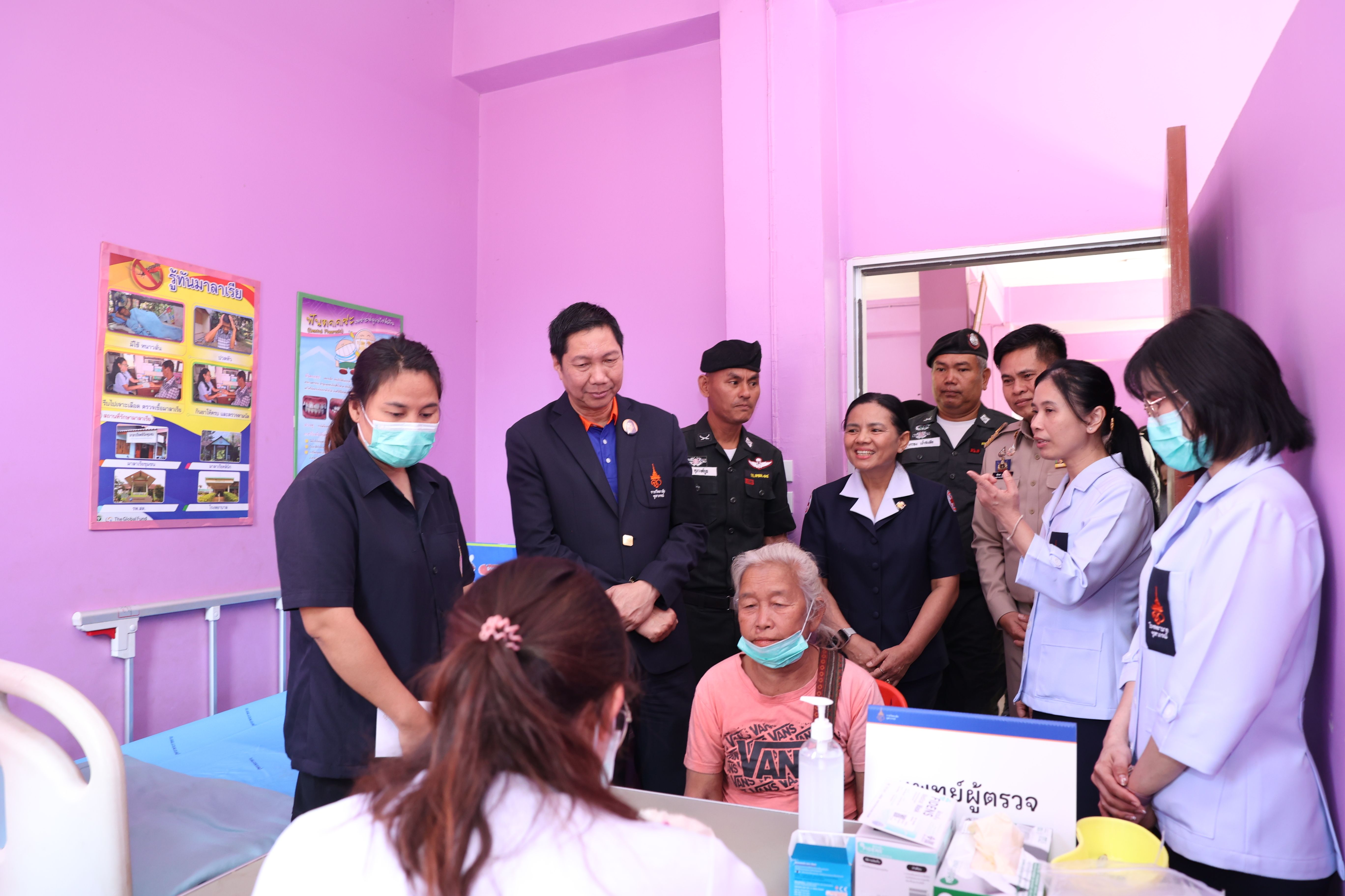 จากนั้น ประธานในพิธี และคณะได้ลงพื้นที่เยี่ยมชมการให้บริการของหน่วยแพทย์พระราชทานโรงพยาบาลจุฬาภรณ์ และกิจกรรมนันทนาการ โดยในวันนี้มีนักเรียนเข้ารับบริการตรวจสุขภาพเบื้องต้น รวมจำนวน ๑๒๕ ราย กลุ่มโรคที่พบมาก ๕ อันดับแรก ได้แก่ ๑. ระบบทางเดินหายใจ จำนวน ๔๑ ราย ๒. ระบบกล้ามเนื้อ กระดูก และข้อ จำนวน ๓๖ ราย ๓. ระบบทางเดินอาหารและขับถ่าย จำนวน ๒๙ ราย ๔. ระบบผิวหนัง จำนวน ๑๐ ราย ๕. ระบบอื่นๆ จำนวน ๙ ราย และมีจำนวนผู้ป่วยส่งต่อรวม ๘ ราย