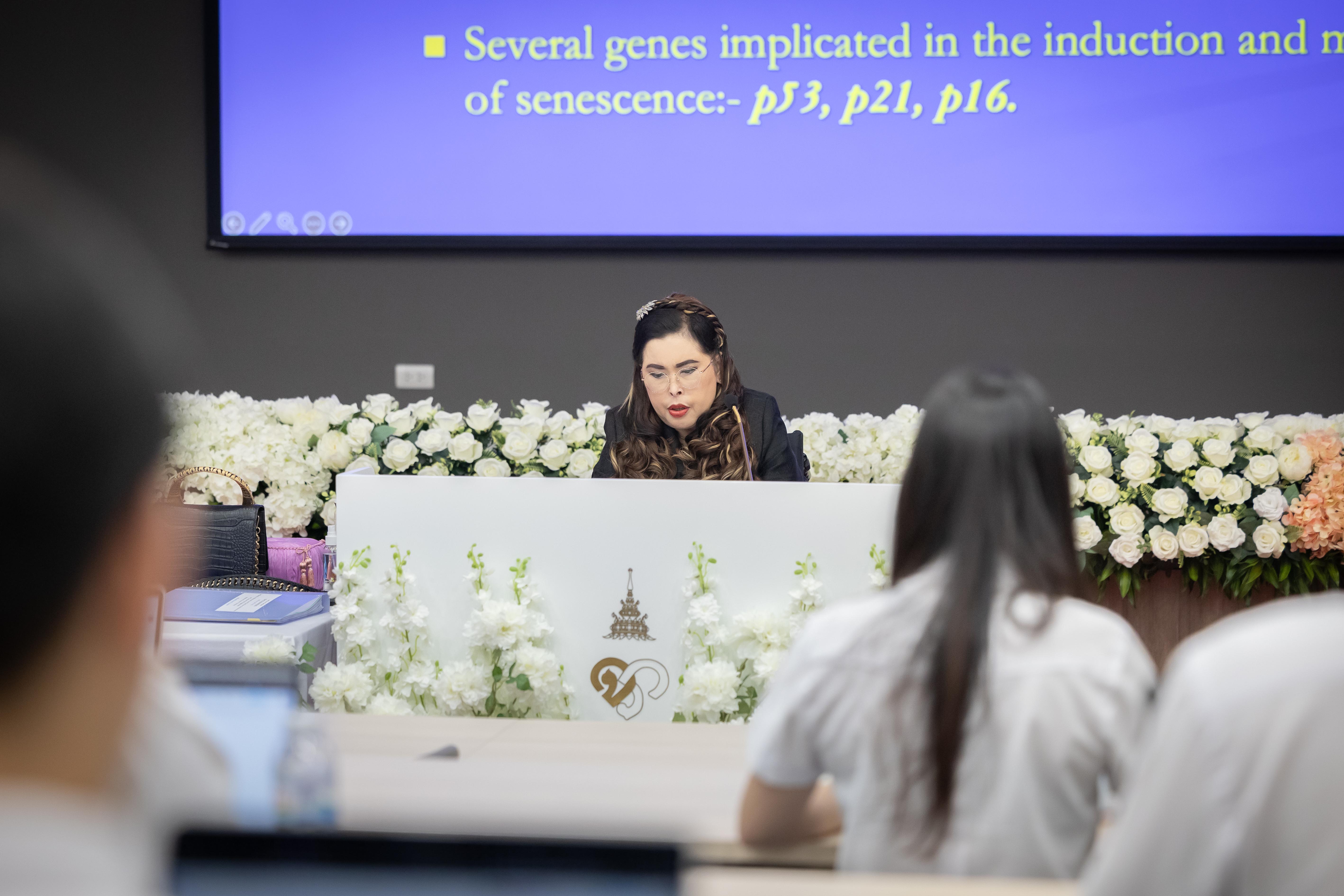 เธอ เจ้าฟ้าจุฬาภรณวลัยลักษณ์ อัครราชกุมารี กรมพระศรีสวางควัฒน วรขัตติยราชนารี เสด็จไปยังอาคารวิทยาลัยแพทยศาสตร์ศรีสวางควัฒน ราชวิทยาลัยจุฬาภรณ์ เขตหลักสี่ ทรงบรรยายพิเศษ เรื่อง “การเกิดโรคมะเร็ง หรือ Oncogenesis (อองโคจีเนซิส)” พระราชทานแก่นักศึกษาหลักสูตรแพทยศาสตรบัณฑิต (หลักสูตรใหม่ พ.ศ. ๒๕๖๓) ชั้นปีที่ ๓ รุ่นที่ ๔ ภาคการศึกษาที่ ๒ ประจำปีการศึกษา ๒๕๖๘ ของคณะแพทยศาสตร์ศรีสวางควัฒน โดยมีรักษาการรองเลขาธิการราชวิทยาลัยจุฬาภรณ์ นำโดย ศาสตราจารย์เกียรติคุณ นายแพทย์รัชตะ รัชตะนาวิน, ดร.ฐากูร พานิช, นายบูรณ์ ฐาปนดุลย์, ศาสตราจารย์เกียรติคุณ นายแพทย์รณชัย คงสกนธ์, รองศาสตราจารย์ นายแพทย์ธีรภัทร อึ้งตระกูล รักษาการคณบดีคณะแพทยศาสตร์ศรีสวางควัฒน พร้อมผู้บริหารและคณาจารย์ เฝ้ารับเสด็จและเข้าร่วมรับฟังการบรรยาย รวมจำนวน ๕๐ คน
