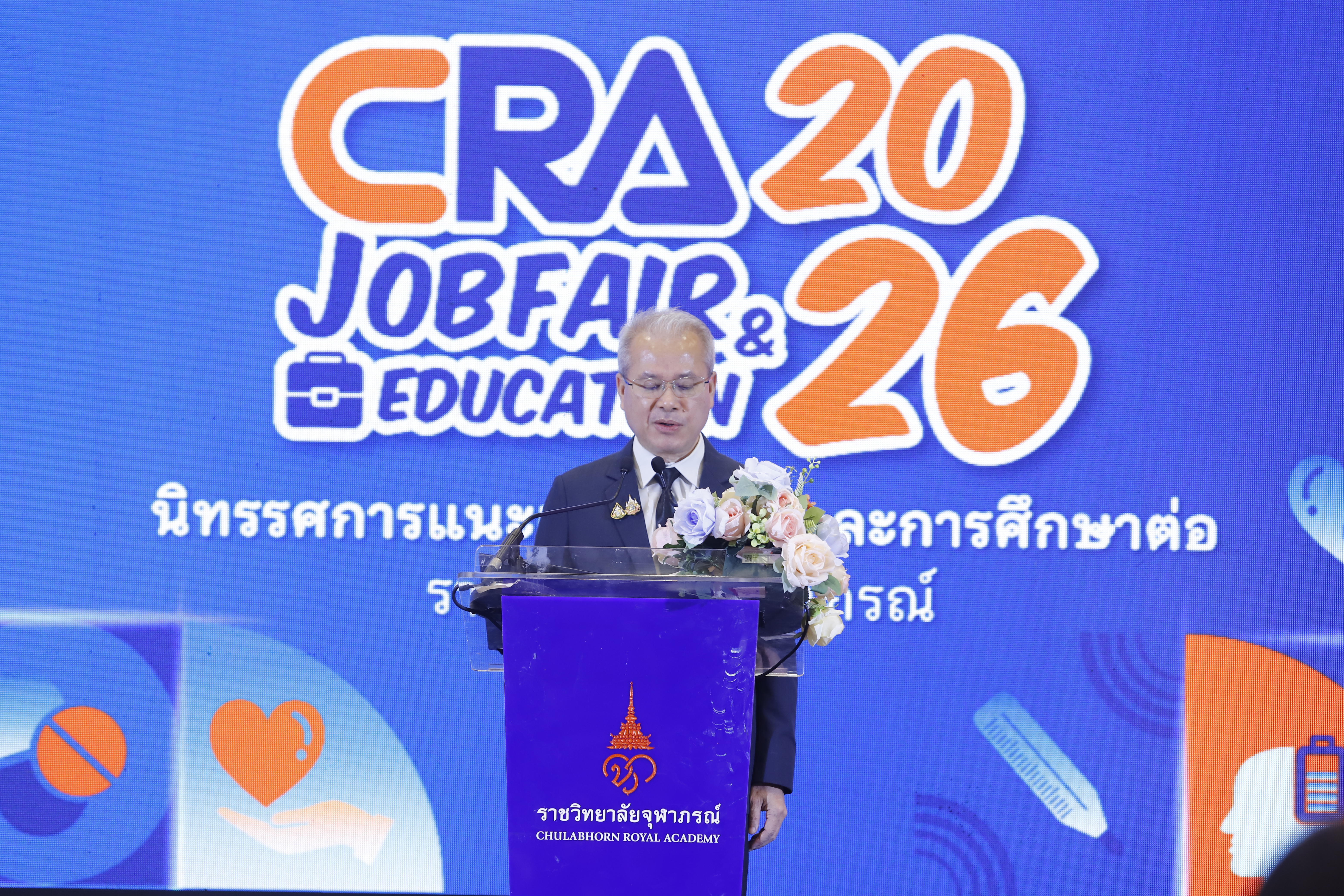 🎉วันที่ 12 กุมภาพันธ์ 2569 ดร.วัชระ ฉัตรวิริยะ รักษาการรองเลขาธิการราชวิทยาลัยจุฬาภรณ์ พร้อมผู้บริหารและคณาจารย์ร่วมเปิดงาน CRA Job Fair & Education 2026 นิทรรศการแนะแนวอาชีพและการศึกษาราชวิทยาลัยจุฬาภรณ์ ซึ่งเป็นมหกรรมการแลกเปลี่ยนตำแหน่งงานในสายวิทยาศาสตร์การแพทย์และสายสุขภาพยุคดิจิทัลครั้งยิ่งใหญ่ประจำปีต่อเนื่องเป็นปีที่ 2 เพื่อเป็นสื่อกลางในการพบปะและสมัครงานกับบริษัทชั้นนำทั้งภาครัฐและเอกชน ประกอบด้วยโรงพยาบาลจากภาครัฐและเอกชนชั้นนำ สถานพยาบาลเฮลท์แคร์เวลเนส บริษัทนำเข้าเครื่องมือแพทย์ บริษัทด้านไอที-ดาต้าเซอร์วิส ผู้ประกอบการด้านวิศวกรรม เป็นต้น ในงานจัดโซนเปิดกว้างสู่โลกแห่งการศึกษาด้วยการเสริมทักษะแห่งอนาคตเปิดโอกาสศึกษาต่อในหลักสูตรปริญญาโท หลักสูตรระยะสั้นทั้งในและต่างประเทศ รวมทั้ง พบกับไฮไลต์พิเศษ Presentation Contest นักศึกษาราชวิทยาลัยจุฬาภรณ์ โชว์ศักยภาพเยาวชนรุ่นใหม่ ในหัวข้อ “CRA New Gen: Leadership in Health Professionals” ผู้นำรุ่นใหม่สายวิทยาศาสตร์สุขภาพ สู่ความเป็นเลิศอย่างยั่งยืน โดยเป็นการนำเสนอหลักสูตรและผลงานของนักศึกษาสายวิทยาศาสตร์สุขภาพ โดยทีมนักศึกษาที่ได้รางวัล