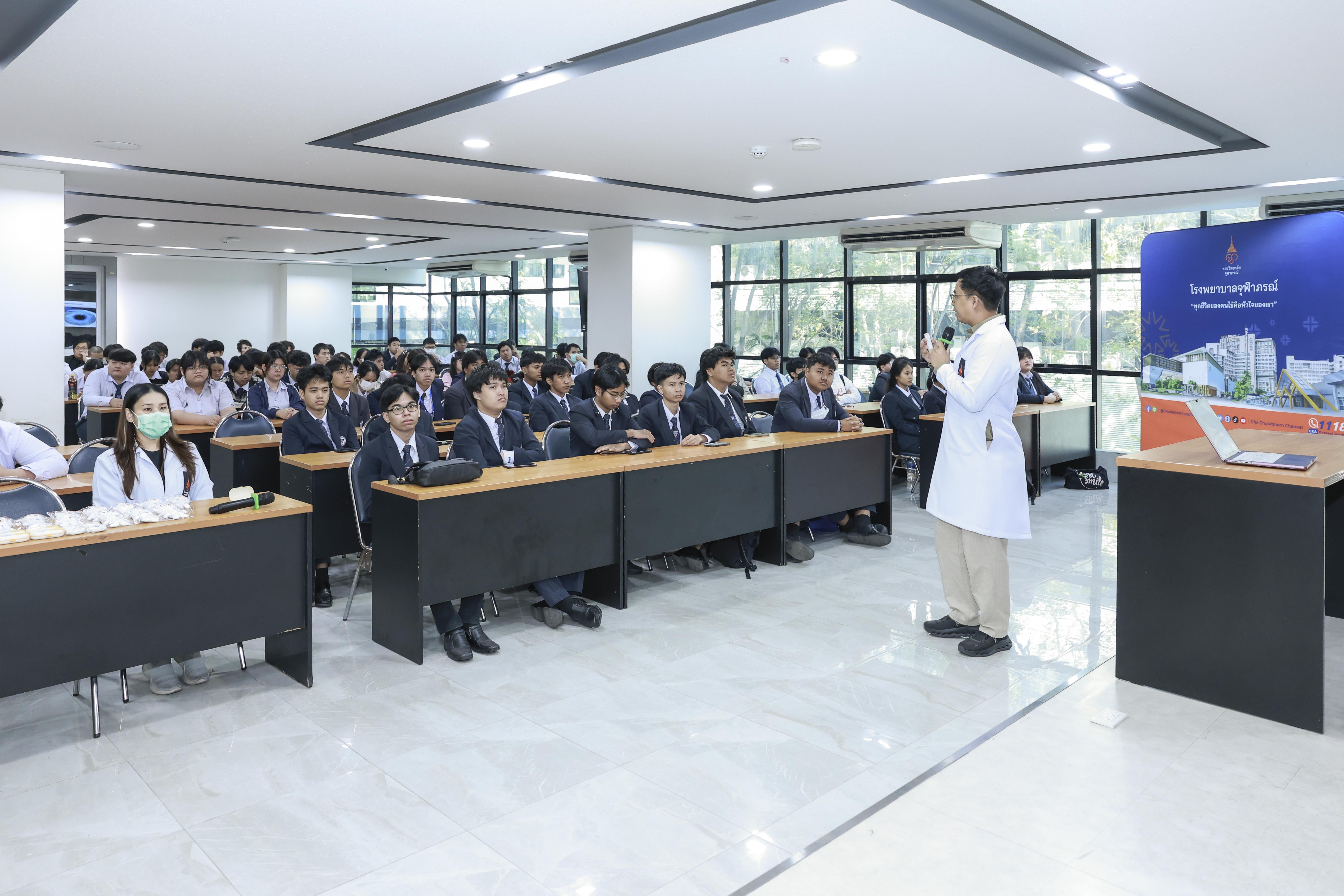 เมื่อวันที่ 11 กุมภาพันธ์ 2569 โรงพยาบาลจุฬาภรณ์ ราชวิทยาลัยจุฬาภรณ์ นำโดย นพ.ปัณณ์ธนารัช กะสีวัฒน์ แพทย์เฉพาะทางด้านจักษุวิทยา อนุสาขาจอประสาทตาและวุ้นตา โรงพยาบาลจุฬาภรณ์ พร้อมด้วยนักทัศนมาตรและเจ้าหน้าที่ฝ่ายสื่อสารองค์กร ออกหน่วยจัดกิจกรรมบรรยายให้ความรู้แก่น้องๆ นักศึกษาในหัวข้อ “การดูแลสุขภาพสายตาและการผ่าตัดแก้ไขภาวะสายตาผิดปกติด้วยเลเซอร์” ณ วิทยาลัยเทคโนโลยีสยามบริหารธุรกิจ (SBAC) สาขาสะพานใหม่ กรุงเทพมหานคร