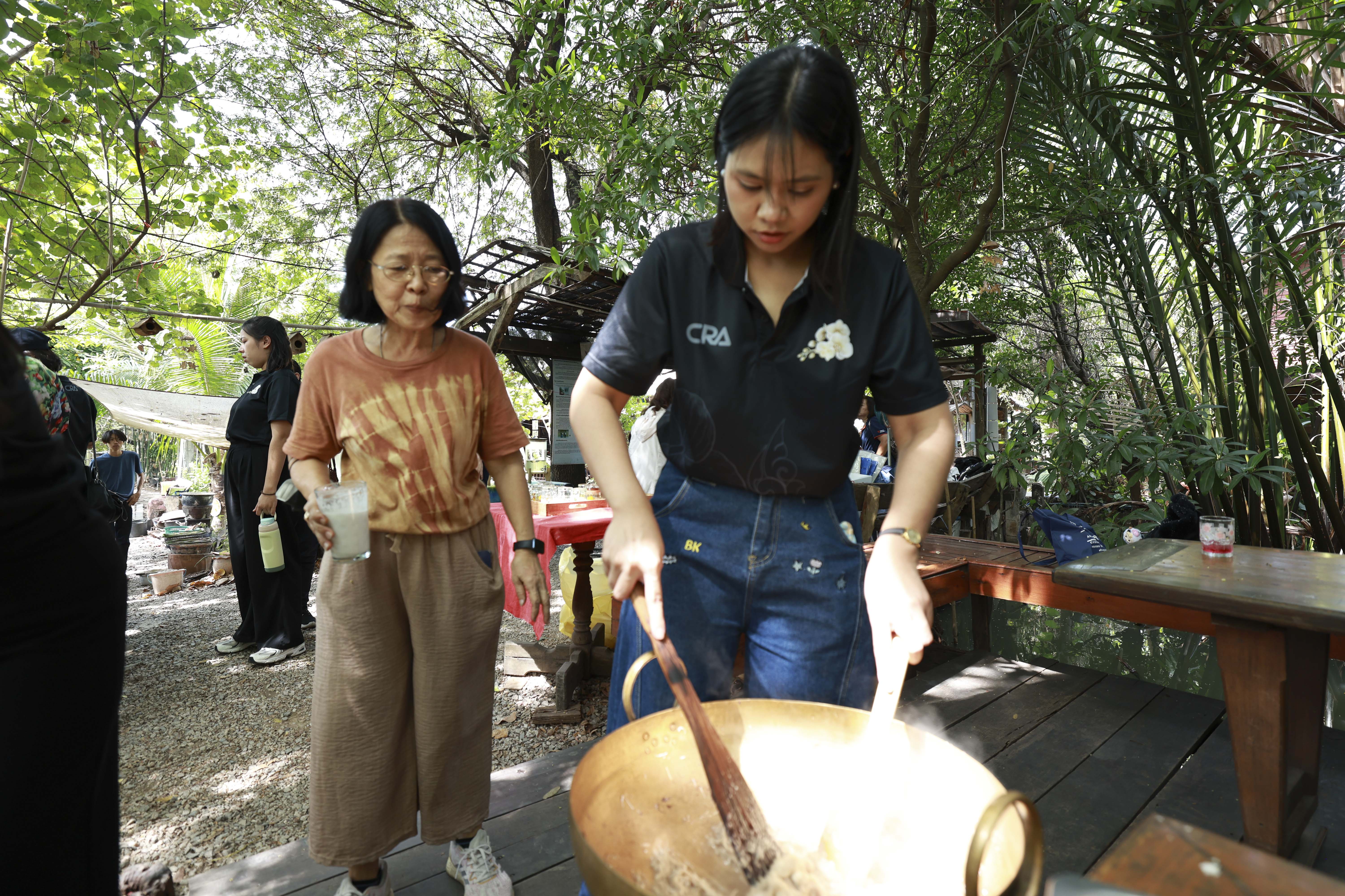 กิจกรรมในวันนี้ จัดขึ้นเพื่อให้บุคลากรและนักศึกษาราชวิทยาลัยจุฬาภรณ์ ได้ร่วมทำกิจกรรมด้วยกัน อัยเป็นการส่งเสริมให้เกิดความรักความสามัคคีและความผูกพันในองค์กร อีกทั้งเป็นการสร้างโอกาสให้นักศึกษาและบุคลากรราชวิทยาลัยจุฬาภรณ์ ได้สัมผัสวิถีชีวิตของผู้คนในชุมชนบางกระสอบ เกิดความตระหนักและรักษ์ในวัฒนธรรมท้องถิ่นและขนบธรรมเนียมประเพณีที่เป็นเอกลักษณ์เฉพาะตัวของชุมชนบนพื้นที่ศูนย์การเรียนรู้บางกระสอบ และถือเป็นฟันเฟืองสำคัญ ในการส่งเสริมพันธกิจหลักของราชวิทยาลัยจุฬาภรณ์ ด้านการสืบสานและทำนุบำรุงศิลปวัฒนธรรม ศาสนา ศีลธรรมและภูมิปัญญาท้องถิ่น ซึ่งเป็นรากฐานสำคัญของการพัฒนาทรัพยากรมนุษย์ให้มีความสมบูรณ์ ทั้งด้านสติปัญญาและจิตใจ โดยผู้เข้าร่วมกิจกรรมได้ทำกิจกรรมต่างๆ ร่วมกัน อาทิ การทำผ้ามัดย้อมโดยใช้สีธะรมชาติจากเปลือกลูกจาก การทำยาหม่องสมุนไพรจากพืชสมุนไพรท้องถิ่น การสานภาชนะใส่อาหารด้วยใบจาก(ยอดอ่อนย้อนอดีต) การทำขนมไทยใบจากที่ได้รสชาติหอมหวานจากมะพร้าวและห่อด้วยใบจากวัตถุดิบในชุมชน ฝึกสมาธิผ่อนคลายร่างกายและจิตใจด้วยพลังคลื่นเสียง “ขันธิเบต” และปิดท้ายด้วยกิจกรรมภาคบ่าย ด้วยการล่องเรือคายัคเยี่ยมชมคลองที่รายล้อมด้วยสวนป่าจากในพื้นที่ชุมชนบางกระสอบ สมุทรปราการ ทั้งนี้ สร้างความประทับใจและเป็นแรงบันดาลใจให้ผู้เข้าร่วมกิจกรรมเกิดความรักความภาคภูมิใจในเอกลักษณ์ความเป็นไทย และร่วมใจกันอนุรักษ์สืบสานมรดกทางวัฒนธรรมอันดีงามของชาติบ้านเมืองให้คงอยู่สืบไป