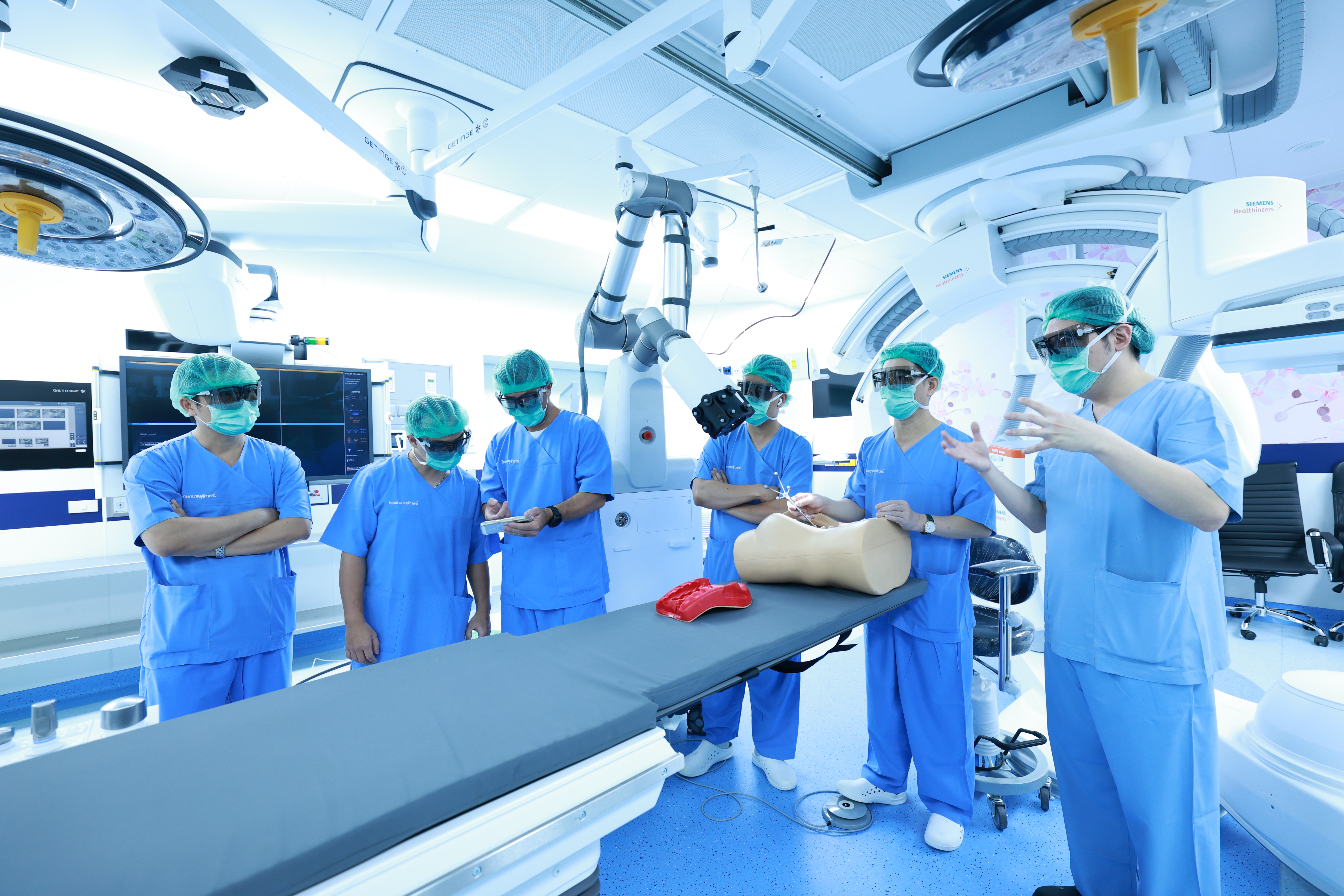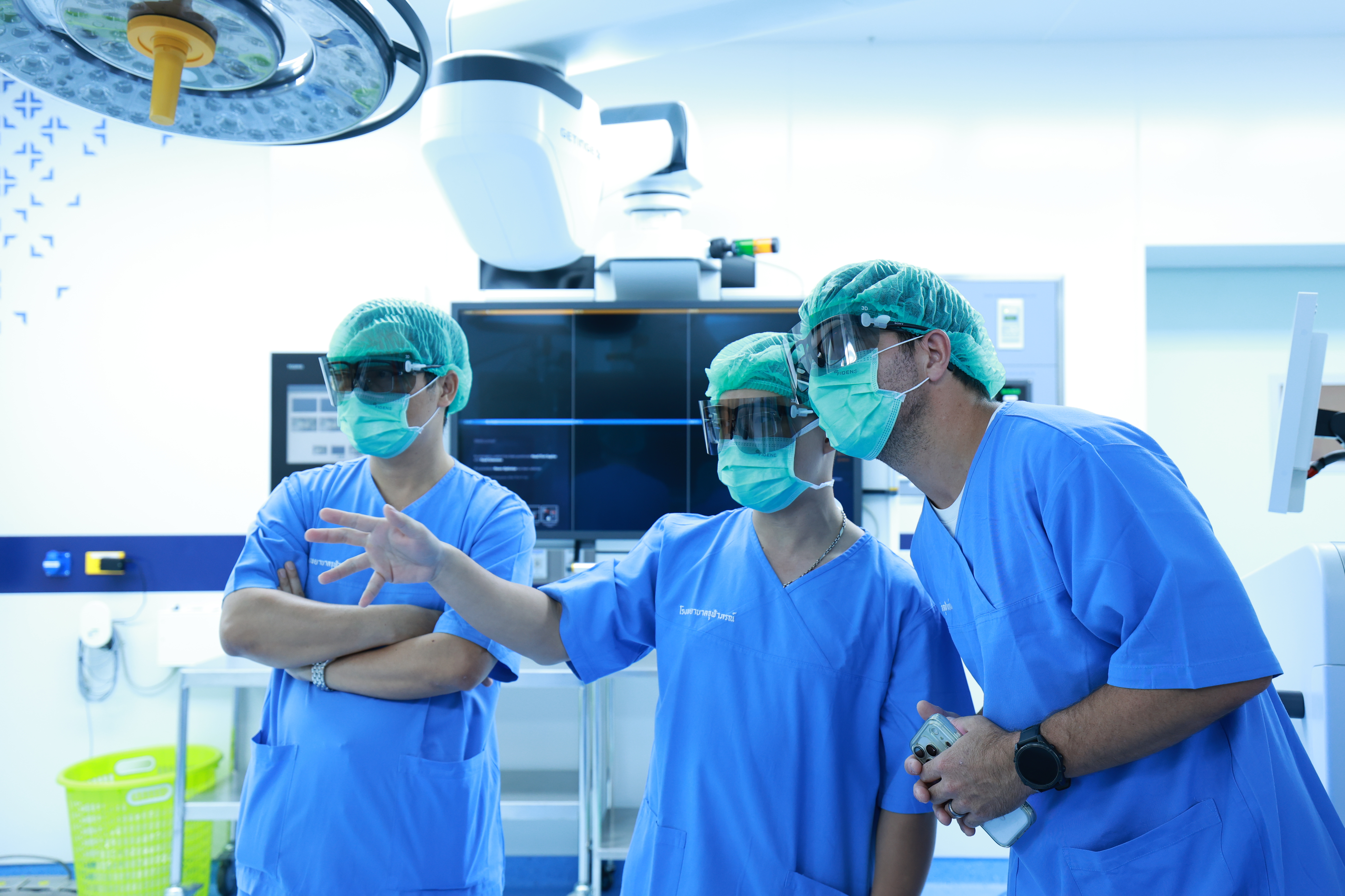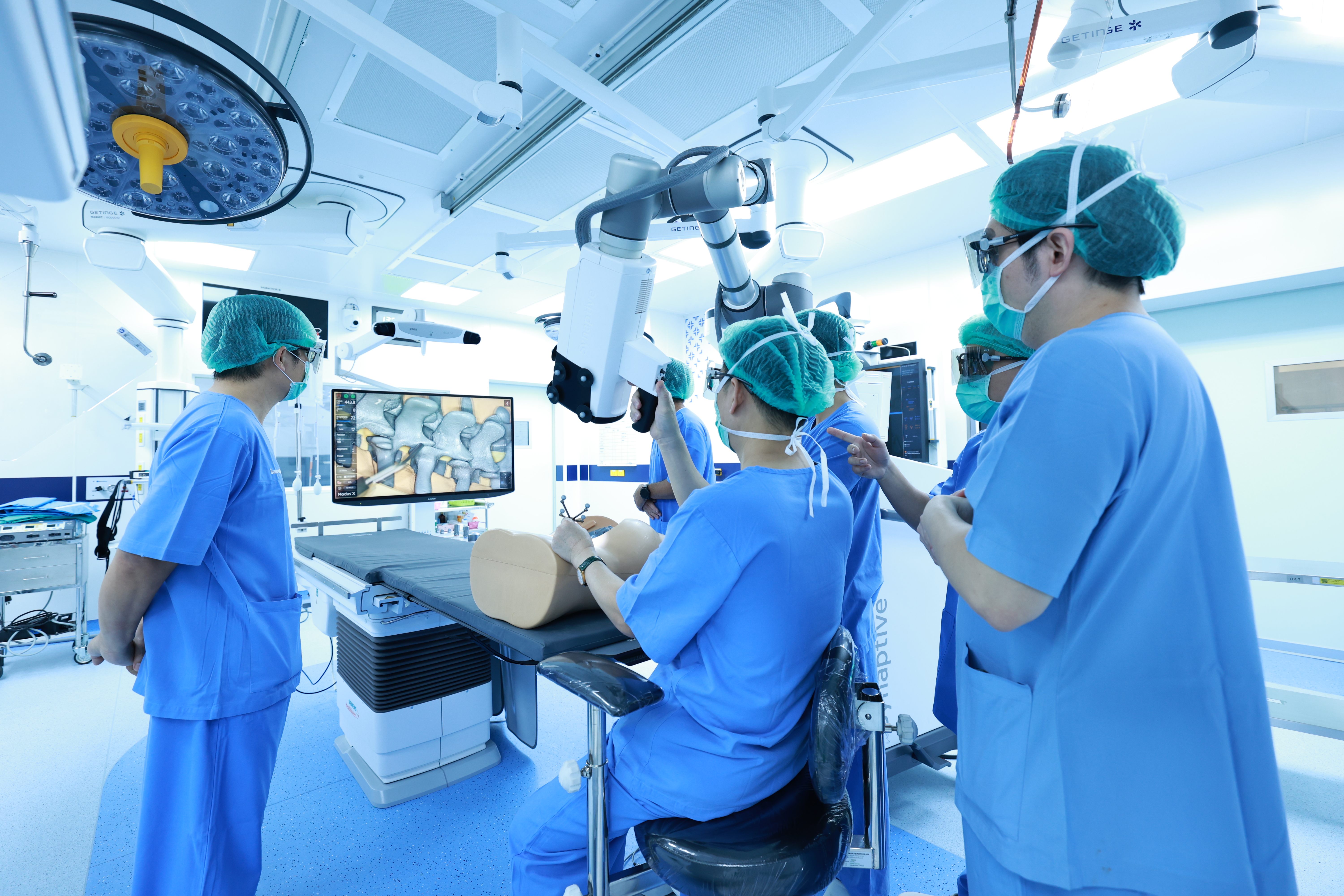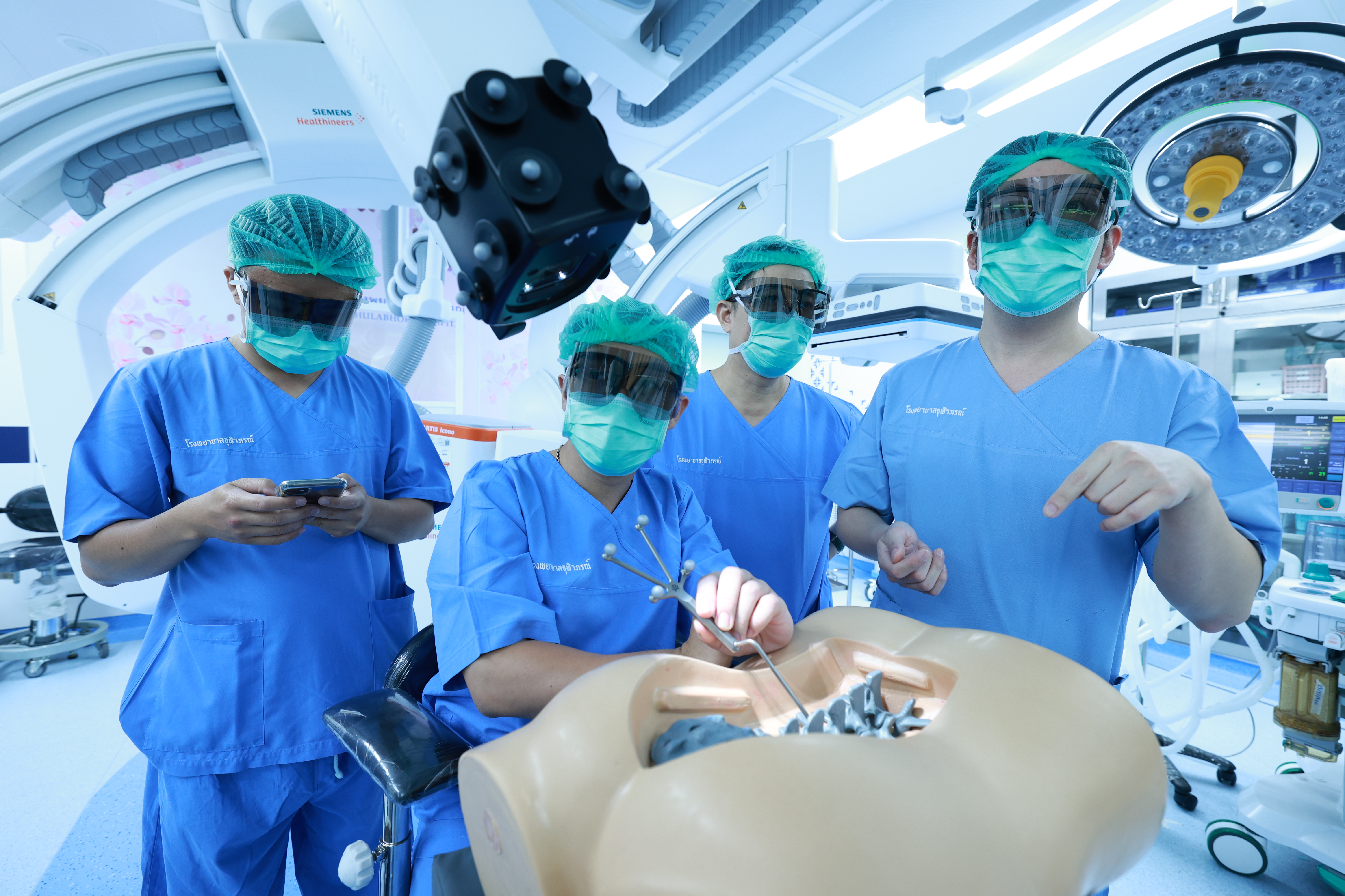 24 กุมภาพันธ์ 2569 ผศ.ป.นพ.ปโยธร เดชะรินทร์ หัวหน้างานศัลยกรรมทั่วไป และแพทย์เฉพาะทางด้านศัลยกรรมระบบประสาทและรังสีร่วมรักษาระบบประสาท พร้อมด้วย นพ.กิตติพศ เตชศรีศักดิ์สกุล แพทย์เฉพาะทางด้านศัลยกรรมระบบประสาท เปิดห้องผ่าตัดไฮบริดต้อนรับคณะศัลยแพทย์ระบบประสาท จาก University Medical Center HCMC ประเทศเวียดนาม นำทีมโดย DR Truong Thanh Tinh – Head of Neuro department of UMC Dr Dang Cao Son Dr Le Gia Quoc Bao ในโอกาสเข้าเยี่ยมชมและแลกเปลี่ยนองค์ความรู้ด้านเทคโนโลยีทางการแพทย์สมัยใหม่