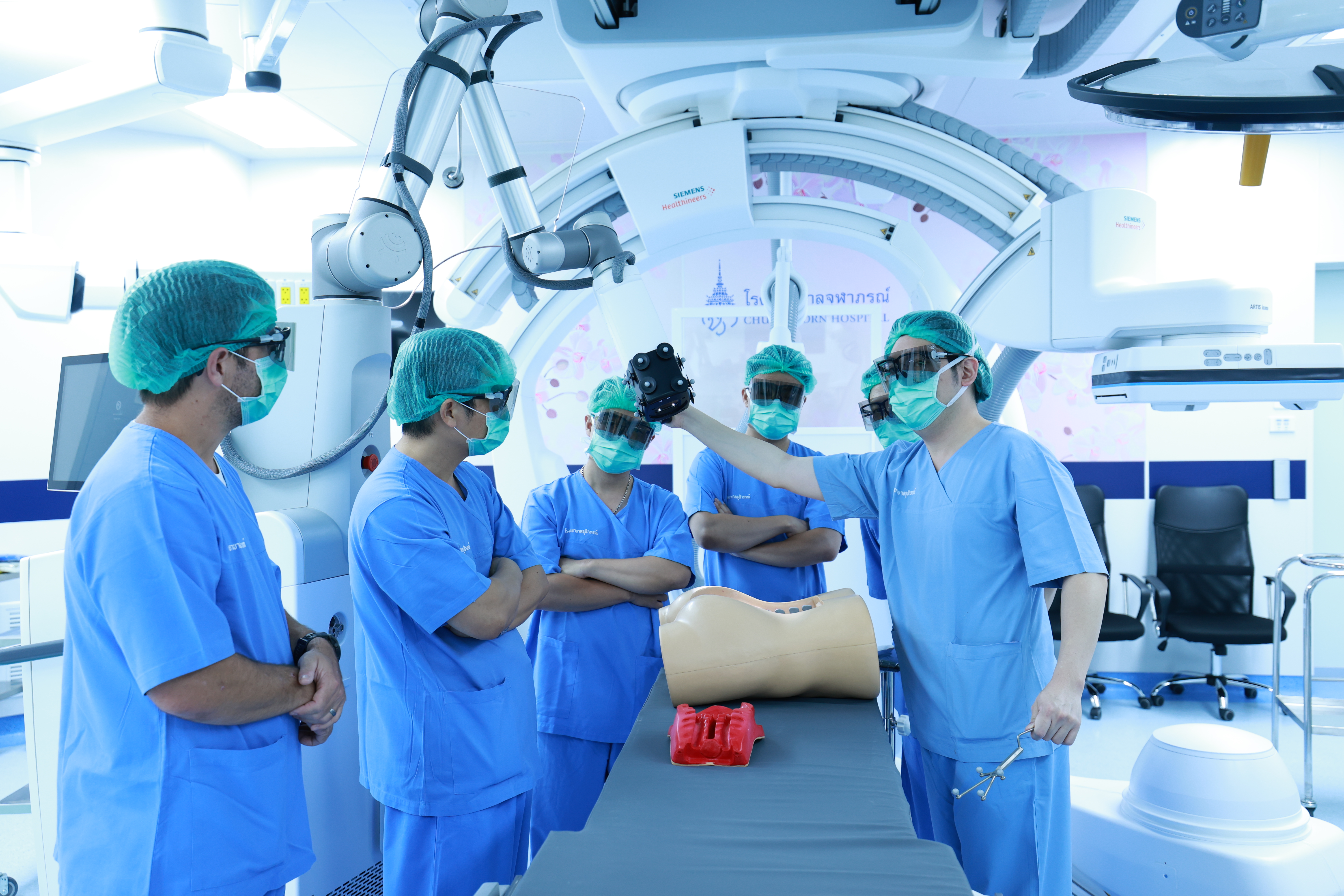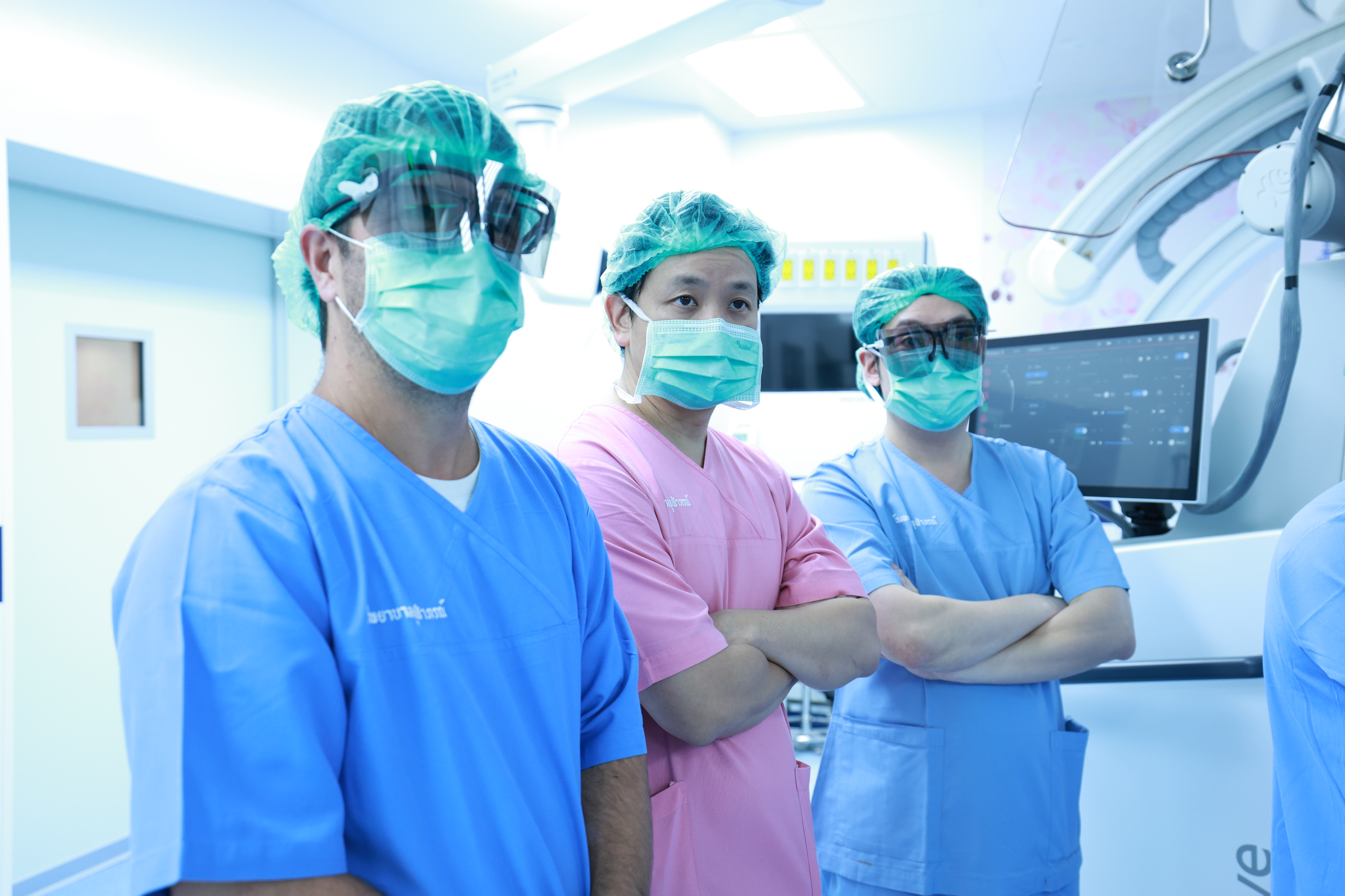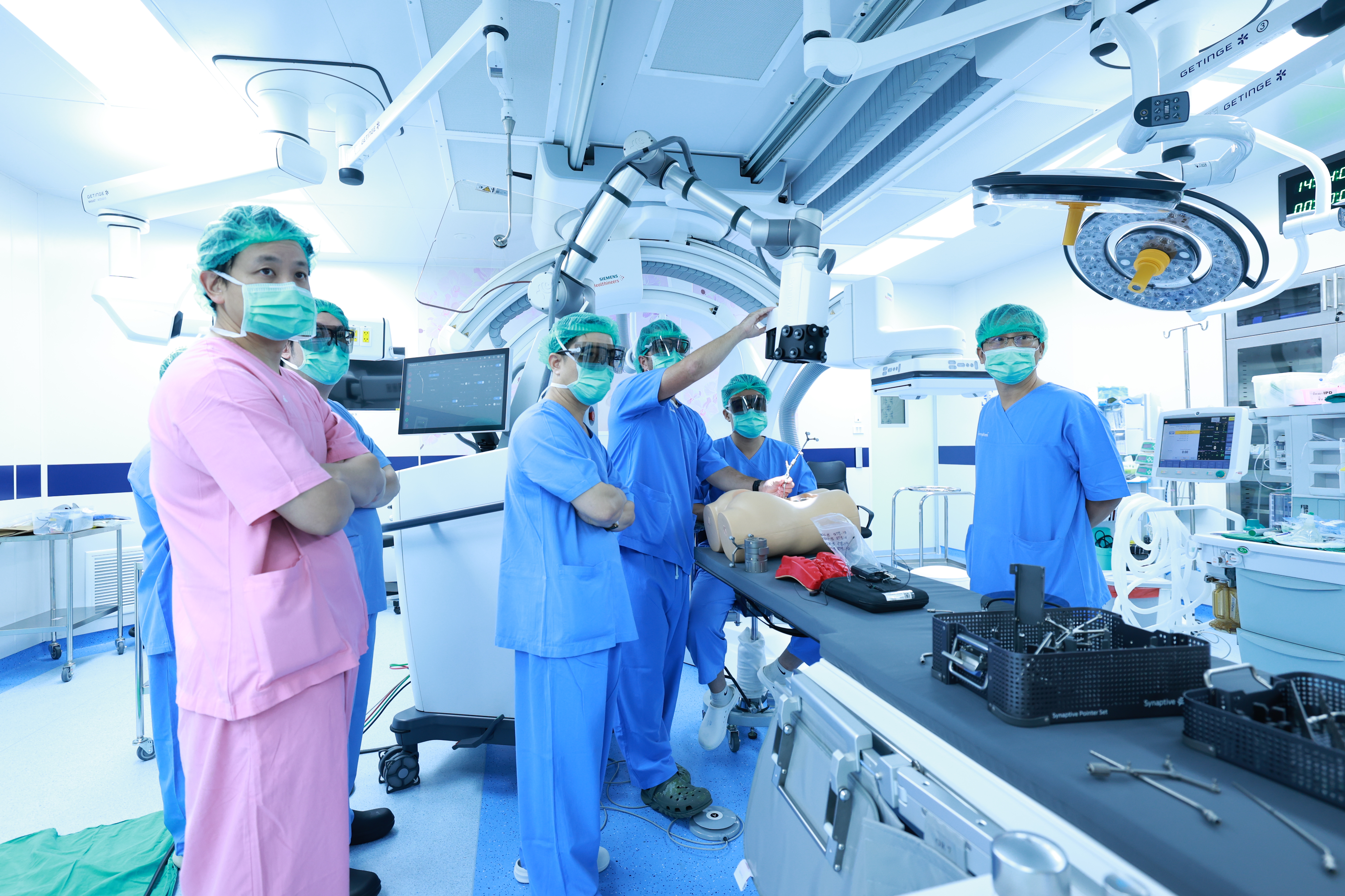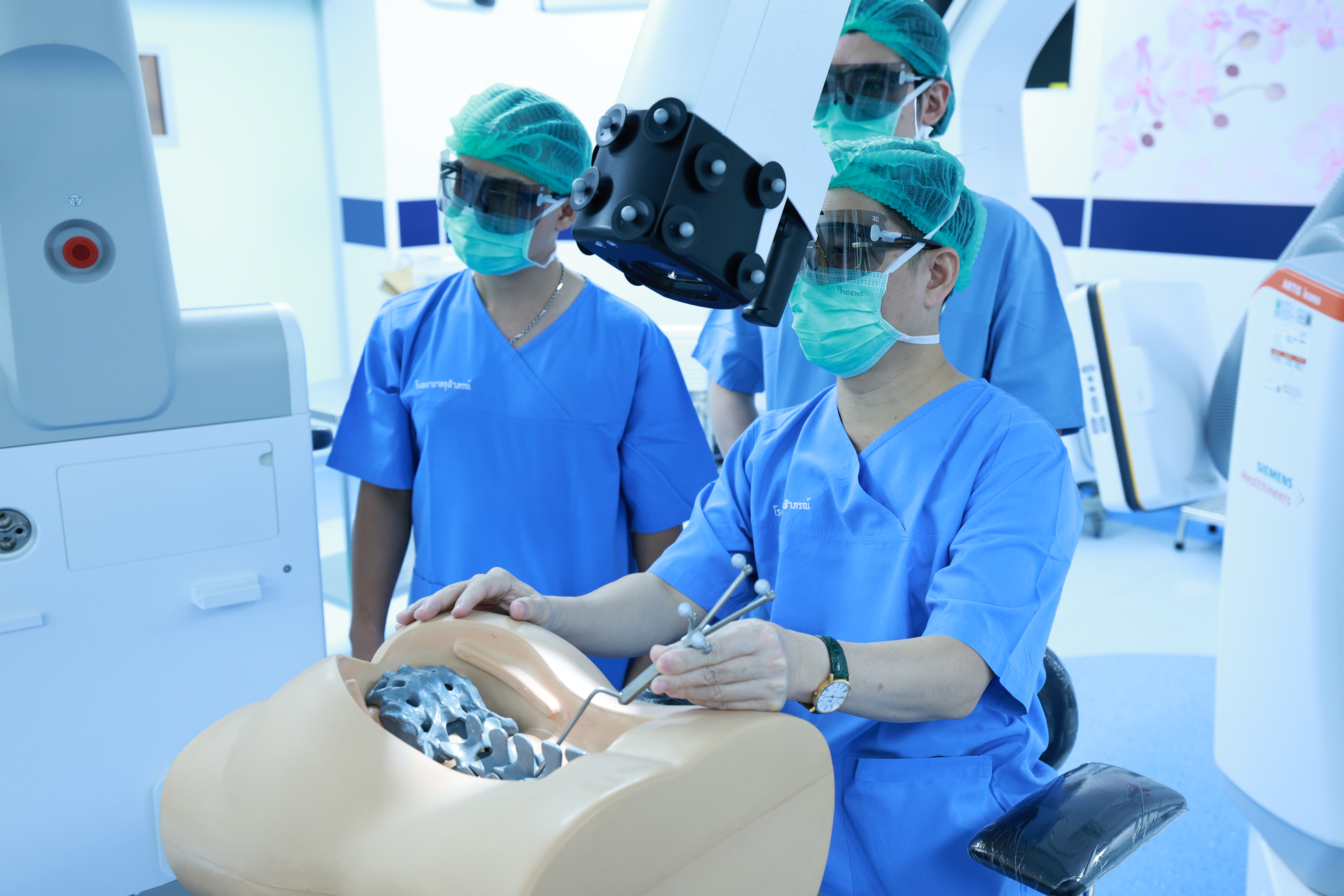 24 กุมภาพันธ์ 2569 ผศ.ป.นพ.ปโยธร เดชะรินทร์ หัวหน้างานศัลยกรรมทั่วไป และแพทย์เฉพาะทางด้านศัลยกรรมระบบประสาทและรังสีร่วมรักษาระบบประสาท พร้อมด้วย นพ.กิตติพศ เตชศรีศักดิ์สกุล แพทย์เฉพาะทางด้านศัลยกรรมระบบประสาท เปิดห้องผ่าตัดไฮบริดต้อนรับคณะศัลยแพทย์ระบบประสาท จาก University Medical Center HCMC ประเทศเวียดนาม นำทีมโดย DR Truong Thanh Tinh – Head of Neuro department of UMC Dr Dang Cao Son Dr Le Gia Quoc Bao ในโอกาสเข้าเยี่ยมชมและแลกเปลี่ยนองค์ความรู้ด้านเทคโนโลยีทางการแพทย์สมัยใหม่