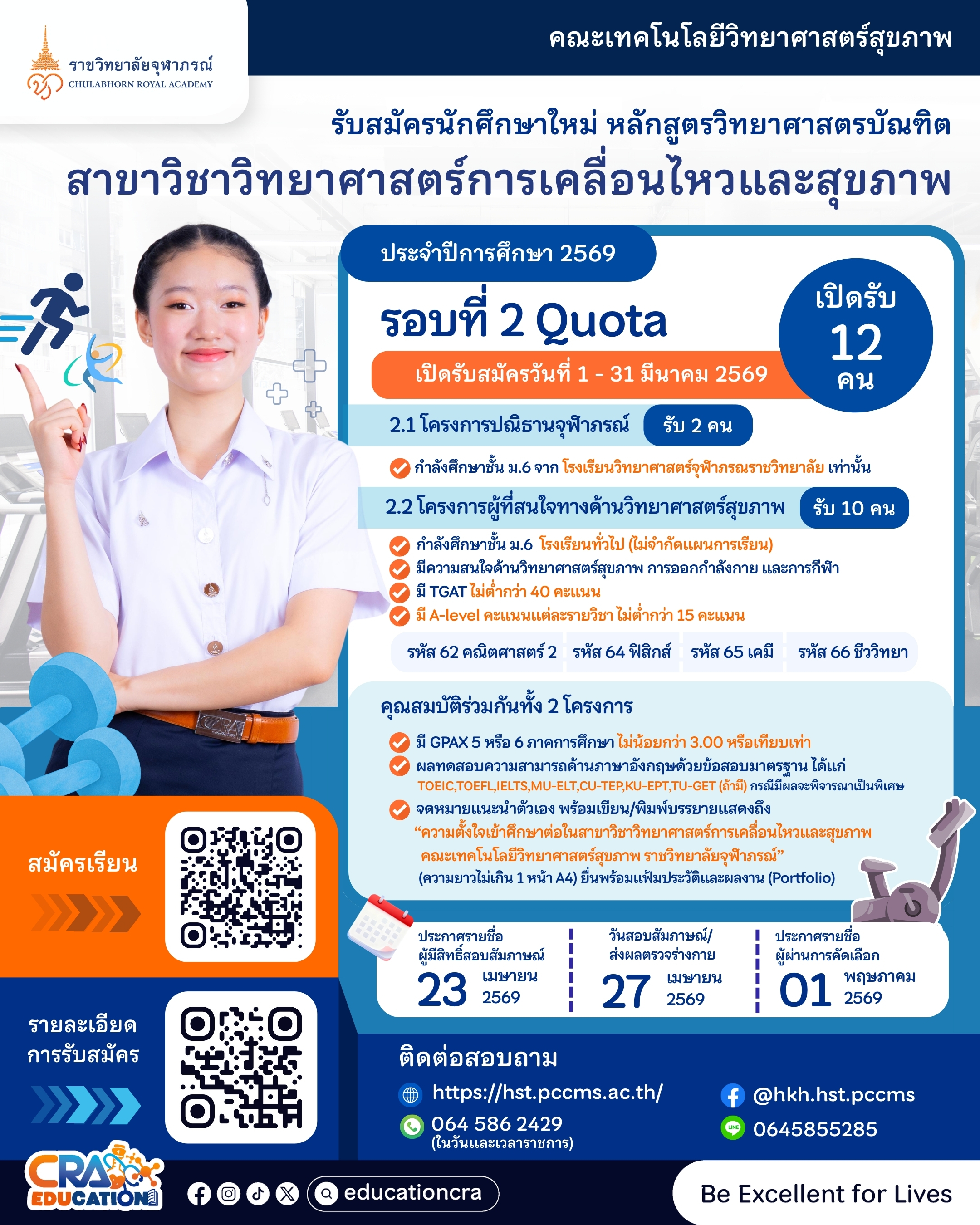 ?คณะเทคโนโลยีวิทยาศาสตร์สุขภาพ ราชวิทยาลัยจุฬาภรณ์ เปิดรับสมัครบุคคลเข้าศึกษา หลักสูตรวิทยาศาสตรบัณฑิต สาขาวิชาวิทยาศาสตร์การเคลื่อนไหวและสุขภาพ ??♀️??