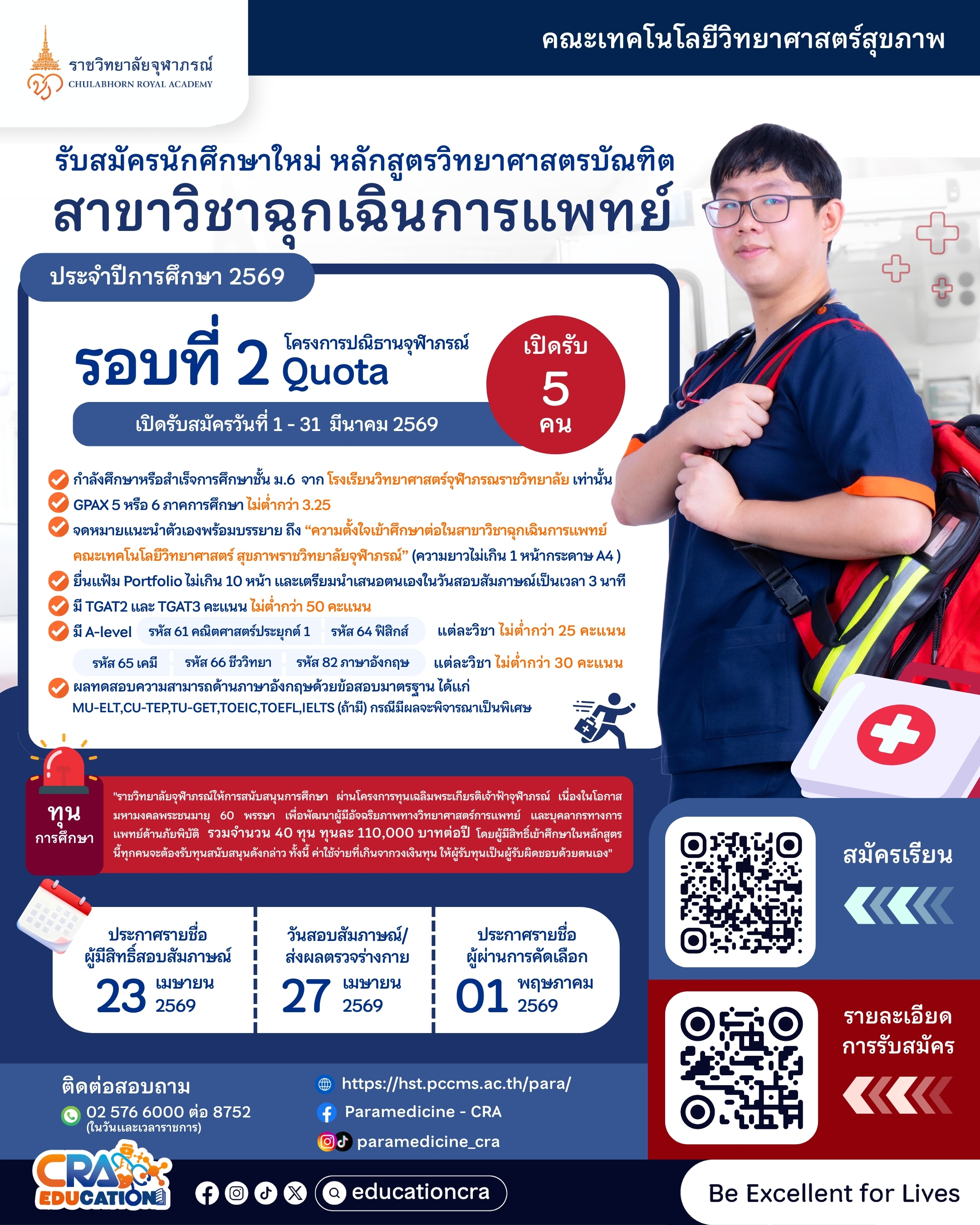 âĻāļŠāļĄāļąāļāļĢāļāđāļēāļ: https://reg.cra.ac.th/cra_erp_edu/admission