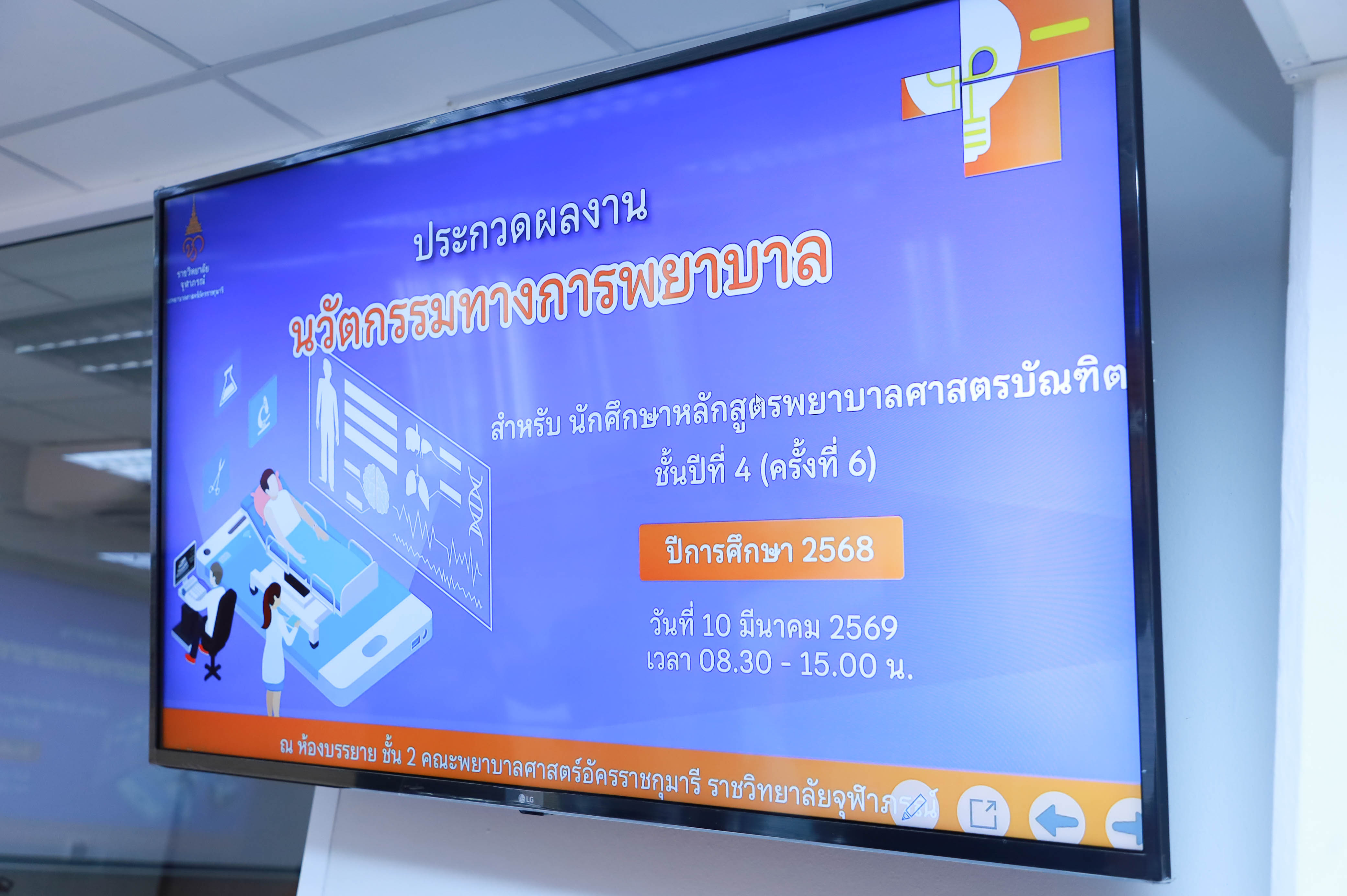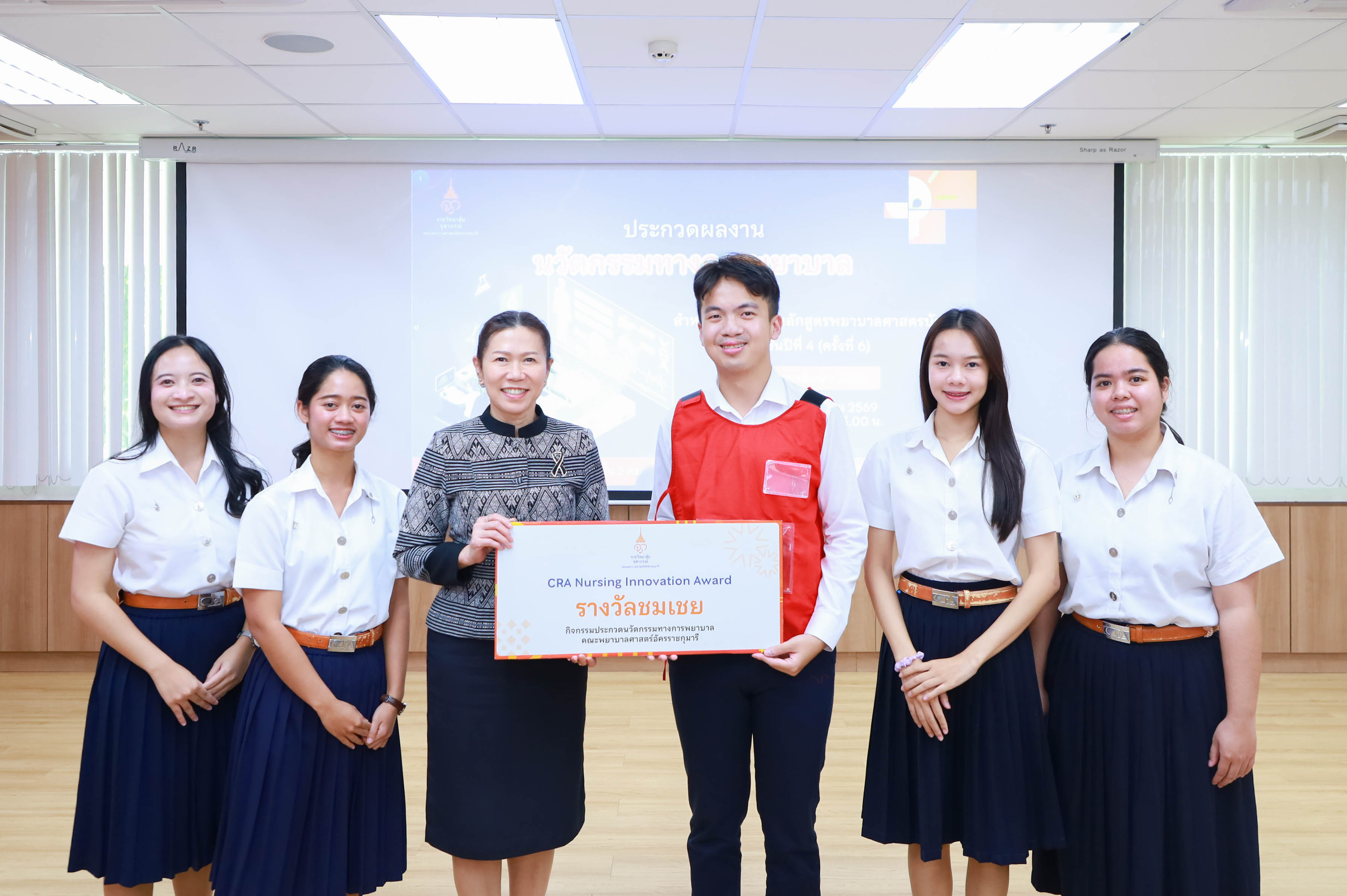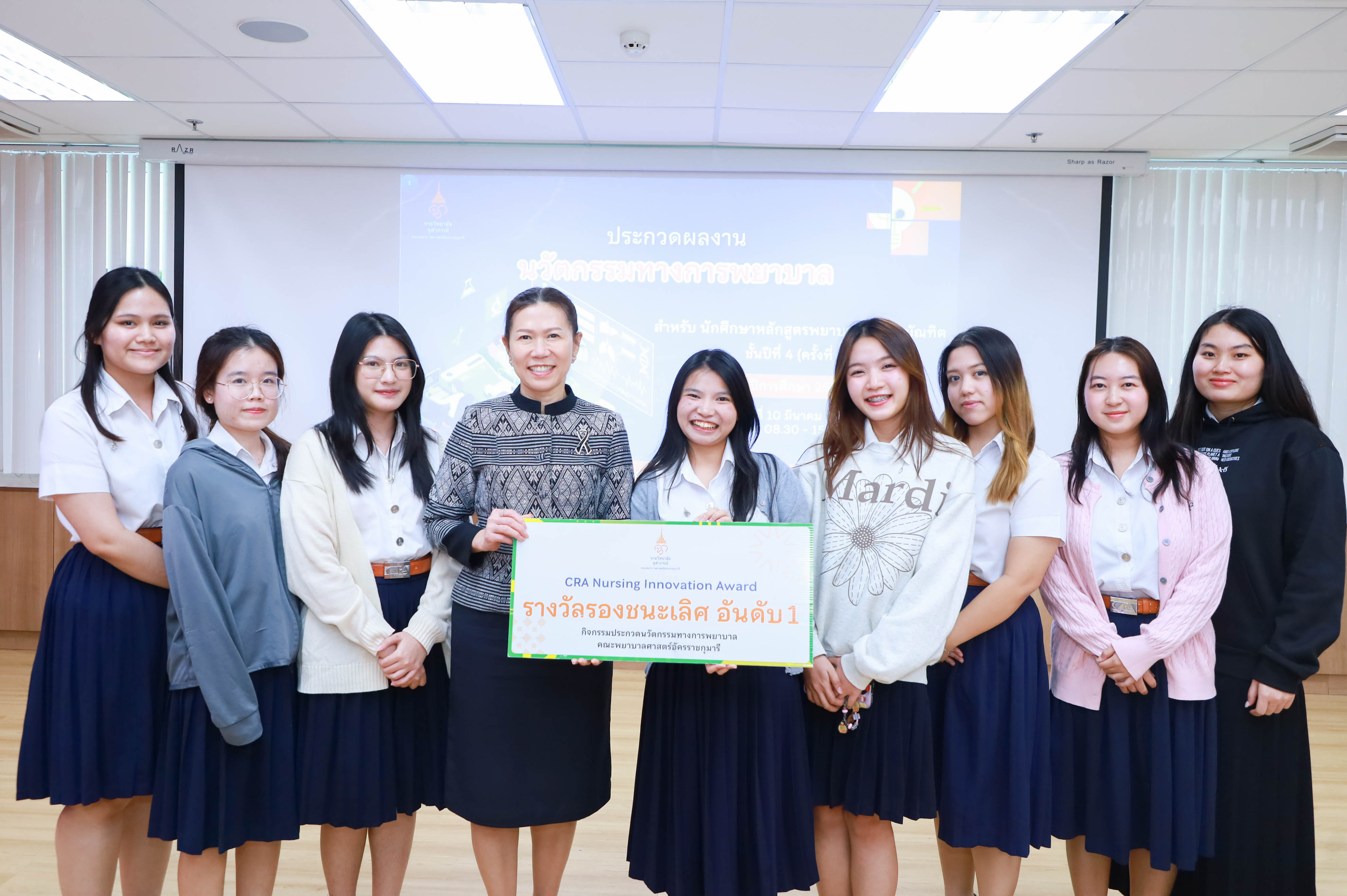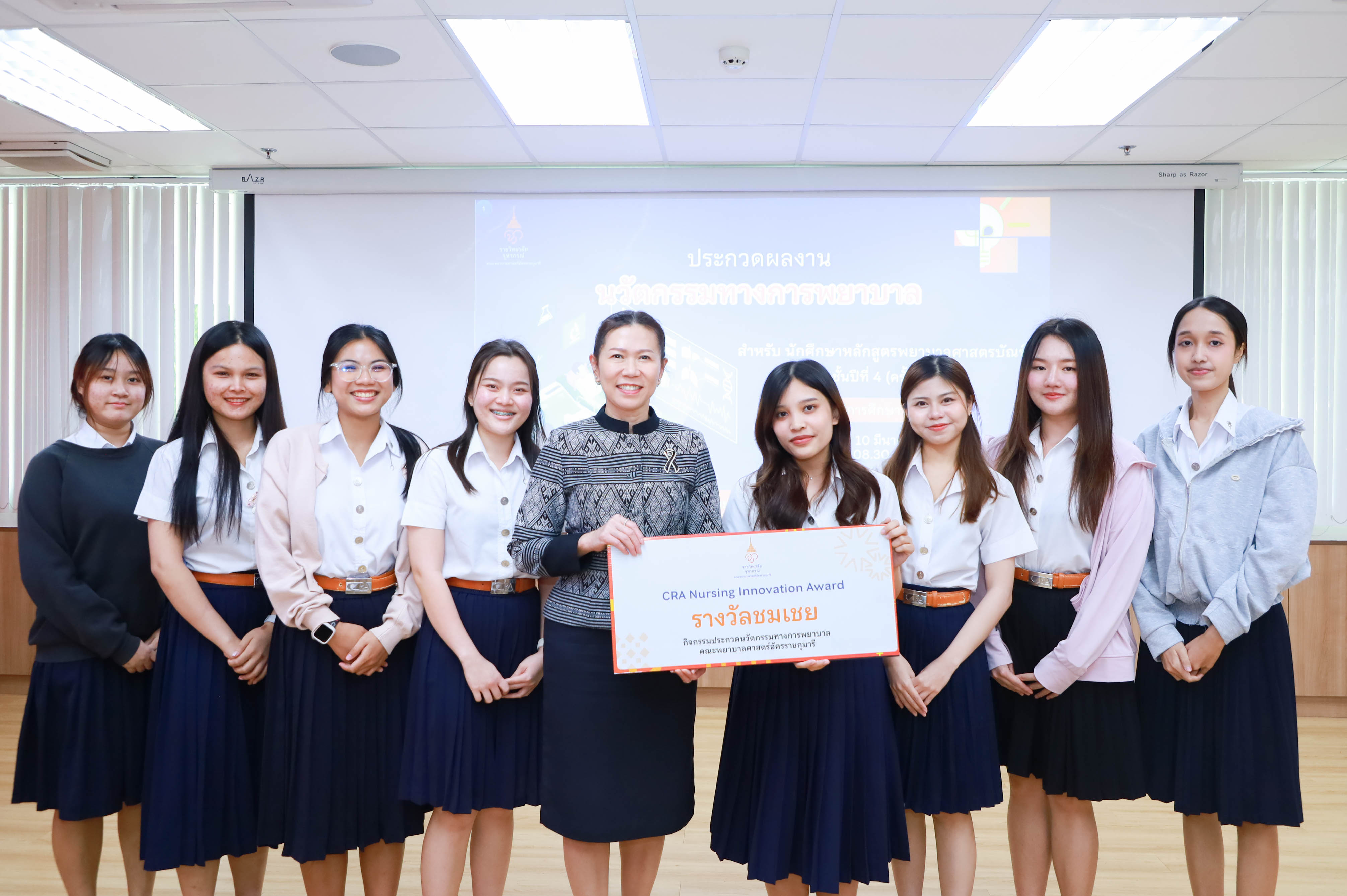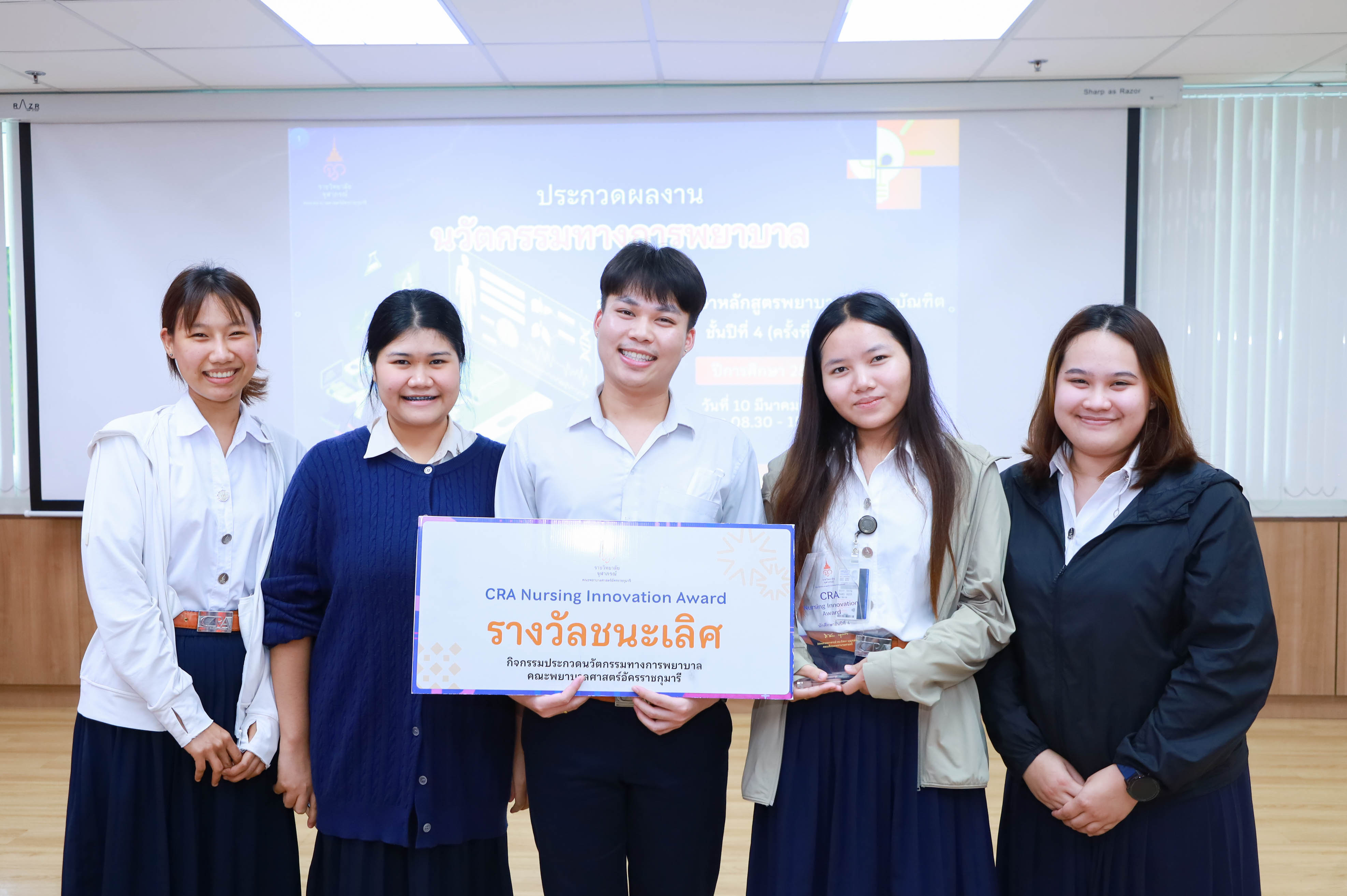 คณะพยาบาลศาสตร์อัครราชกุมารี ราชวิทยาลัยจุฬาภรณ์ จัดโครงการประกวดผลงานนวัตกรรมทางการพยาบาลของนักศึกษาหลักสูตรพยาบาลศาสตรบัณฑิต ชั้นปีที่ 4 ครั้งที่ 6 ประจำปีการศึกษา 2568 ภายใต้โครงการ “InnovateNurse: Building Research and Innovation Skills for the Future” กิจกรรม Research and Innovation Day เมื่อวันอังคารที่ 10 มีนาคม 2569 ณ ห้องบรรยาย คณะพยาบาลศาสตร์อัครราชกุมารี โดย ผู้ช่วยศาสตราจารย์ทัศนีย์วรรณ พฤกษาเมธานันท์ รองคณบดีฝ่ายพัฒนานักศึกษา เป็นประธานเปิดงาน