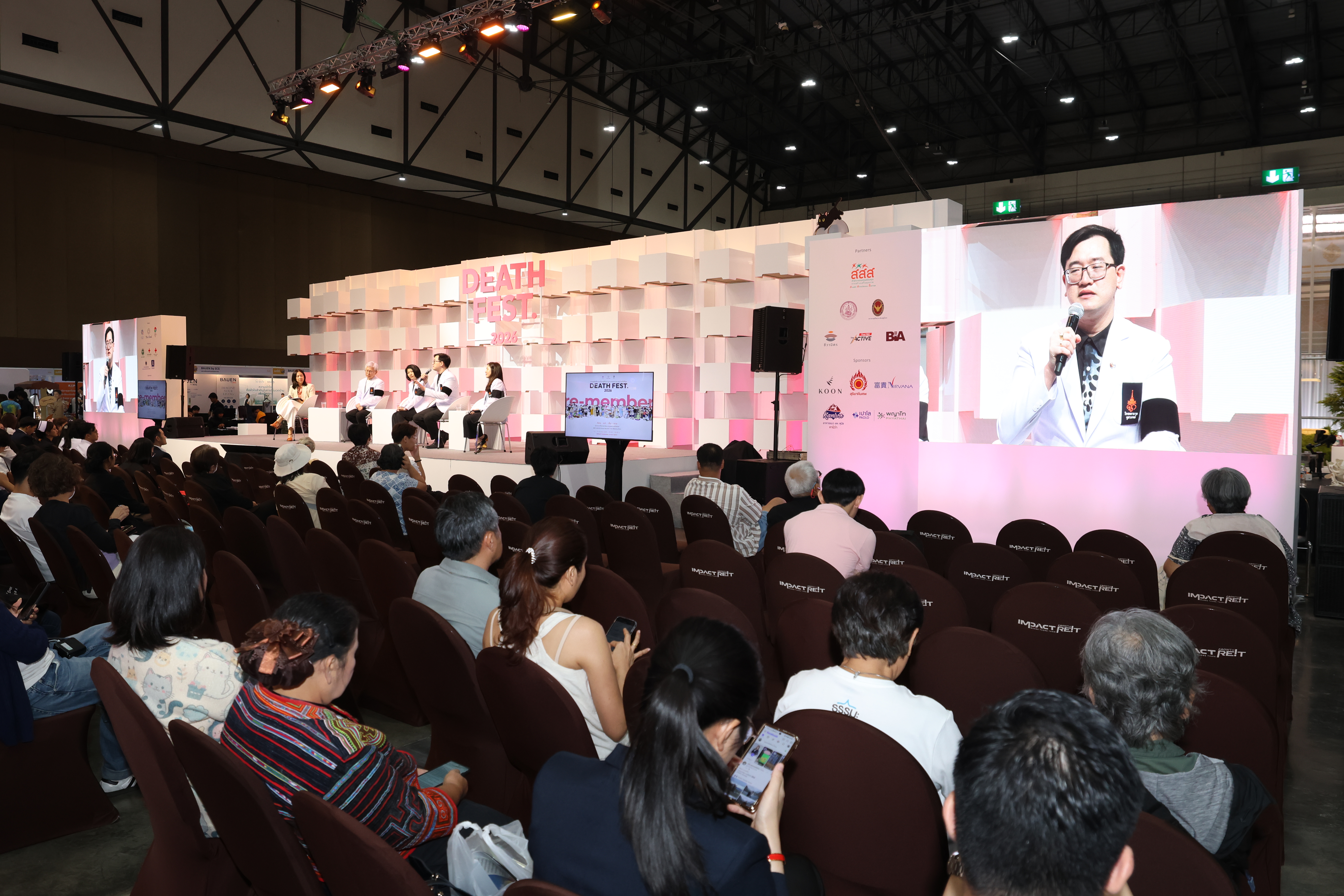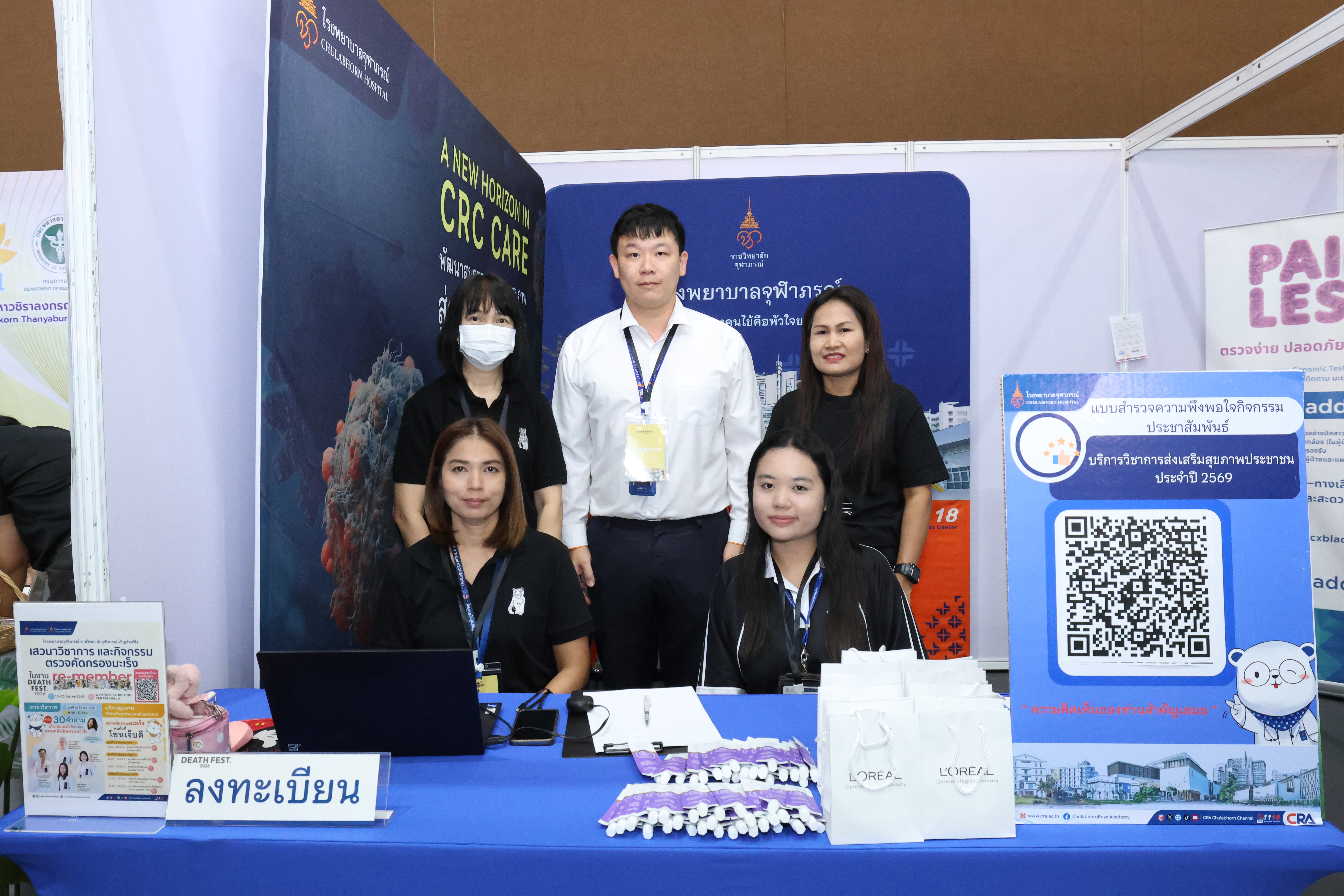 13 มีนาคม 2569: โรงพยาบาลจุฬาภรณ์ ราชวิทยาลัยจุฬาภรณ์ ร่วมกับ The Cloud จัดเสวนาและออกบูธบริการตรวจคัดกรองมะเร็งในงาน Death Fest 2026 ชวนใช้ชีวิตอย่างมีความหมายและเตรียมตัวสำหรับวาระสุดท้ายอย่างเข้าใจ โดยในวันแรกได้ร่วมเสวนาให้ความรู้ในหัวข้อ “20 คำถามเกี่ยวกับมะเร็งที่จะเปลี่ยนความกลัวเป็นความเข้าใจ” นำโดย รศ.นพ.สุรศักดิ์ ลีลาอุดมลิปิ รักษาการผู้อำนวยการโรงพยาบาลจุฬาภรณ์ พร้อมด้วย พญ.จอมธนา ศิริไพบูลย์ ผอ.ศูนย์มะเร็งวิทยา นพ.วรวัฒน์ แสงวิภาสนภาพร หัวหน้างานอายุรกรรมทางเดินอาหารและตับ และพญ.พิมชนก พัฒนยินดี แพทย์เฉพาะทางโรคระบบหายใจและเวชบำบัดวิกฤต โรงพยาบาลจุฬาภรณ์ พร้อมตอบทุกข้อสงสัยเกี่ยวกับมะเร็งแบบตรงไปตรงมาเข้าใจง่ายแก่ผู้เข้าร่วมงาน ณ เวทีกลาง Exhibition Hall 6 อิมแพคเมืองทองธานี นนทบุรี