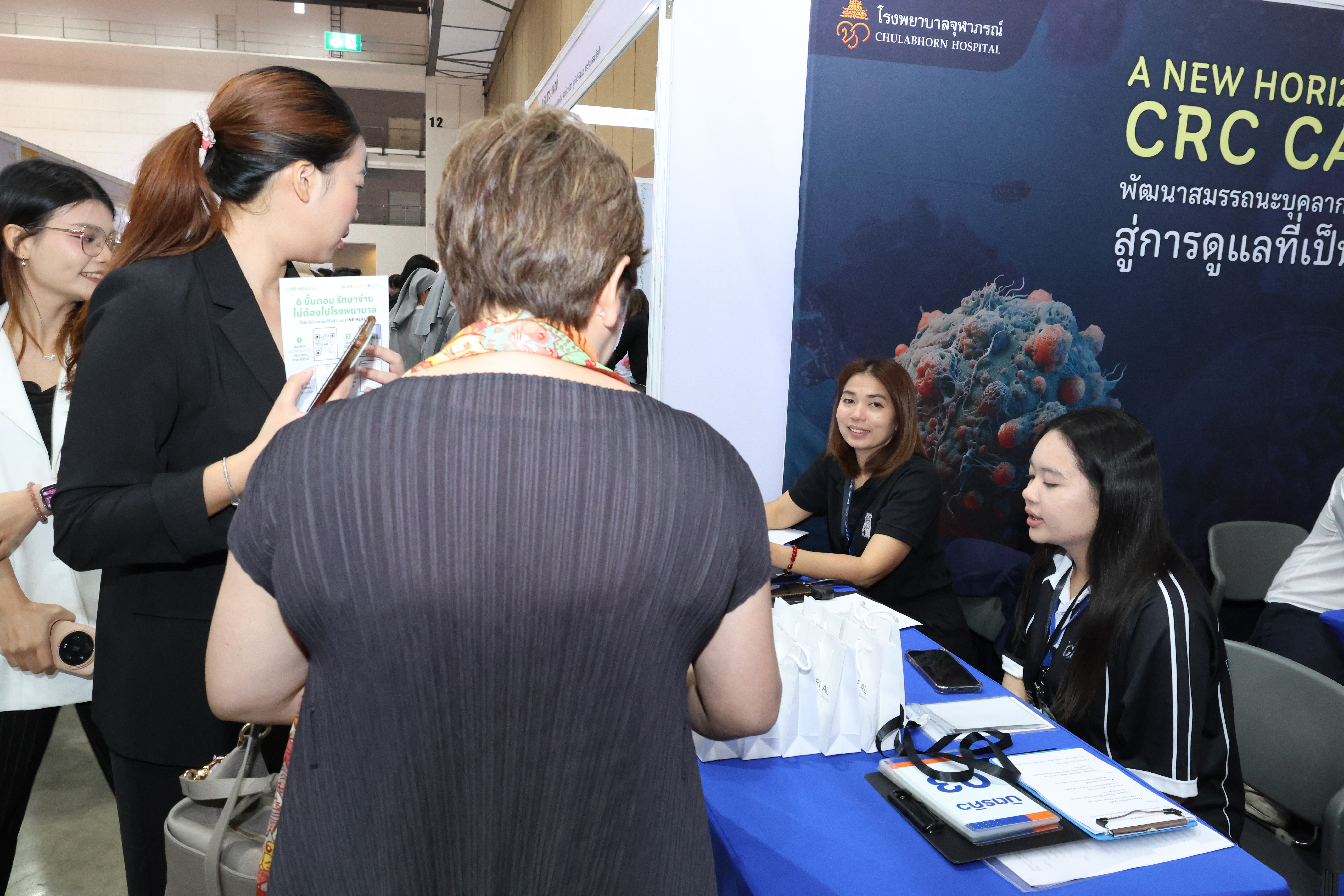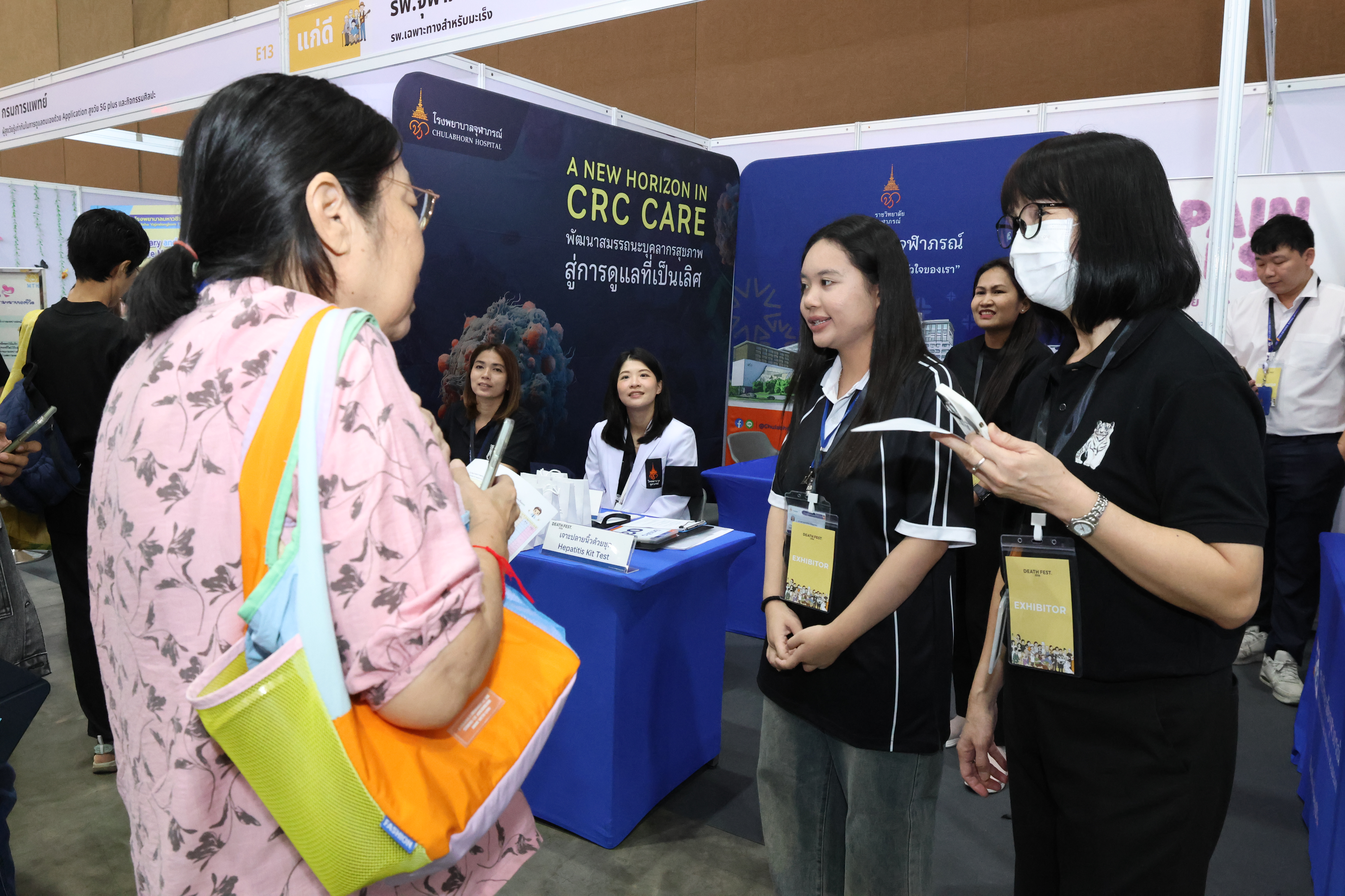 นอกจากนี้ นอกจากสาระความรู้บนเวที โรงพยาบาลจุฬาภรณ์ยังเปิดบูธบริการตรวจคัดกรองมะเร็งในโซน “แก่ดี” (บูธ E14) โดยกิจกรรมไฮไลต์วันแรกคือ การบริการตรวจไวรัสตับอักเสบ B และ C เพื่อประเมินความเสี่ยงมะเร็งตับ โดยไม่มีค่าใช้จ่าย โดยมีทีมแพทย์เฉพาะทางคอยให้คำปรึกษาอย่างใกล้ชิด นำโดย พญ.ชัณษา บางยี่ขัน, นพ.จตุพร ผู้พัฒน์ แพทย์เฉพาะทางศัลยศาสตร์ตับ ตับอ่อนและทางเดินน้ำดี และ พญ.อัญญา เกียรติวีระศักดิ์ แพทย์เฉพาะทางด้านอายุรศาสตร์โรคระบบทางเดินอาหารและตับ ซึ่งบรรยากาศภายในบูธเป็นไปอย่างคึกคักและได้รับเสียงตอบรับเป็นอย่างดี