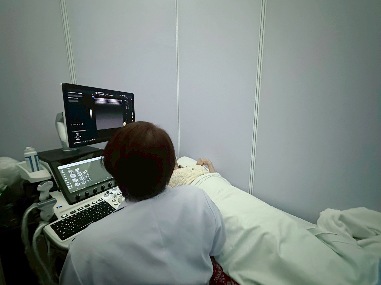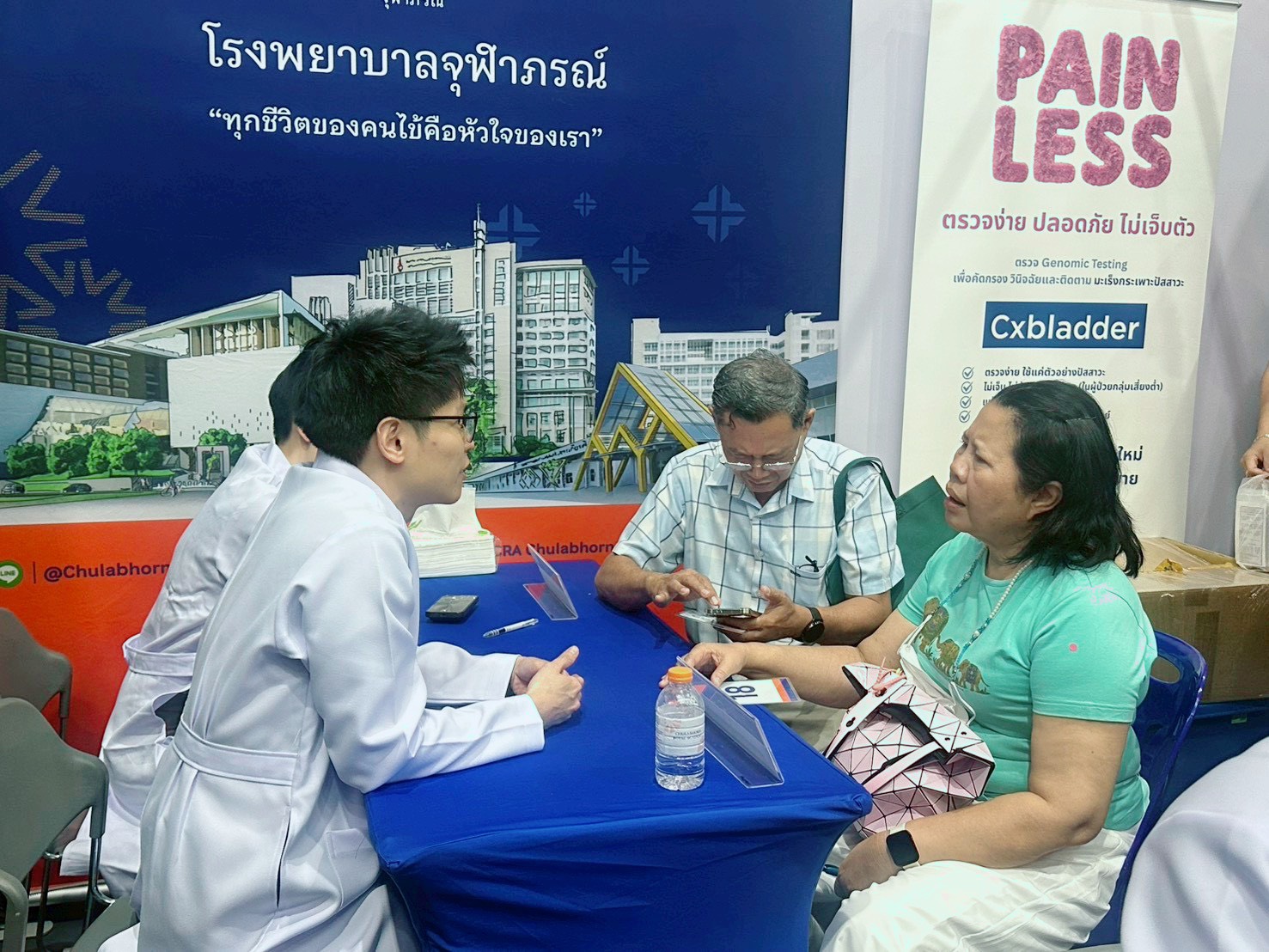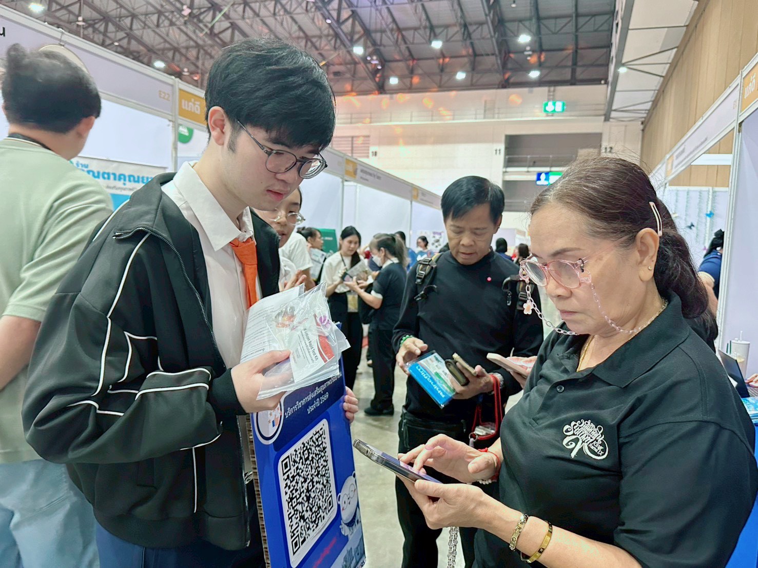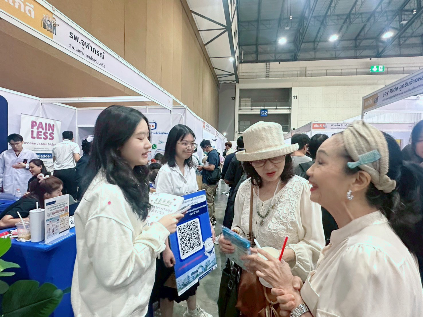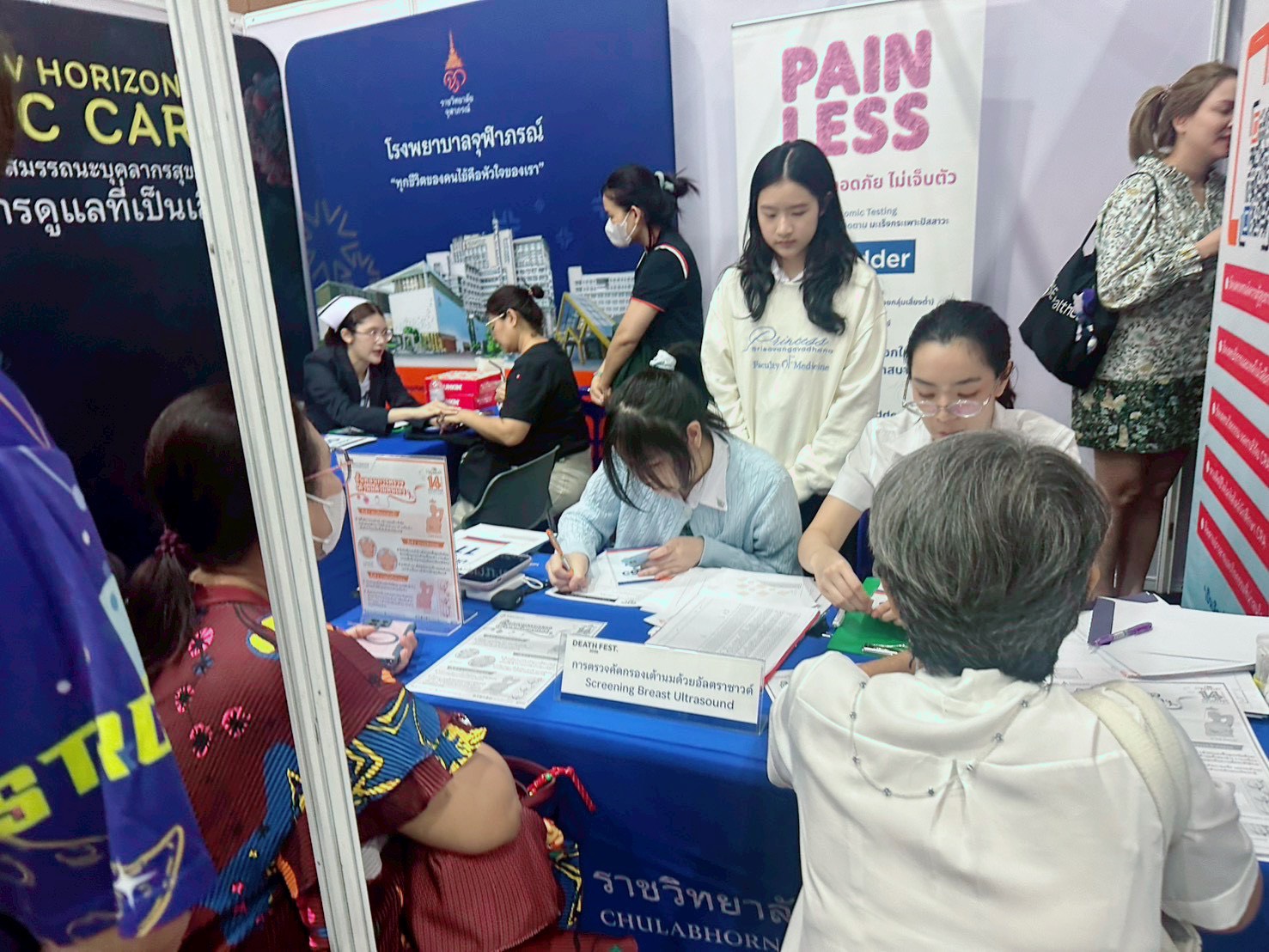 ช่วงบ่าย: บริการตรวจคัดกรอง “มะเร็งเต้านม” ด้วยเครื่องอัลตราซาวด์ พร้อมให้คำปรึกษาโดยทีมศัลยแพทย์เฉพาะทางด้านเต้านม นำโดย พญ.ภัทรา ทาสี และ พญ.ฐิติพร วรรณศรี นอกจากทีมแพทย์และพยาบาลผู้เชี่ยวชาญแล้ว ในวันนี้ยังมีนักศึกษาแพทย์ชั้นปีที่ 1 จากคณะแพทยศาสตร์ศรีสวางควัฒน ราชวิทยาลัยจุฬาภรณ์ ร่วมลงพื้นที่เรียนรู้และให้บริการตรวจสุขภาพเบื้องต้นแก่ประชาชน สร้างบรรยากาศการเรียนรู้ระหว่างวัยในโซน “แก่ดี”