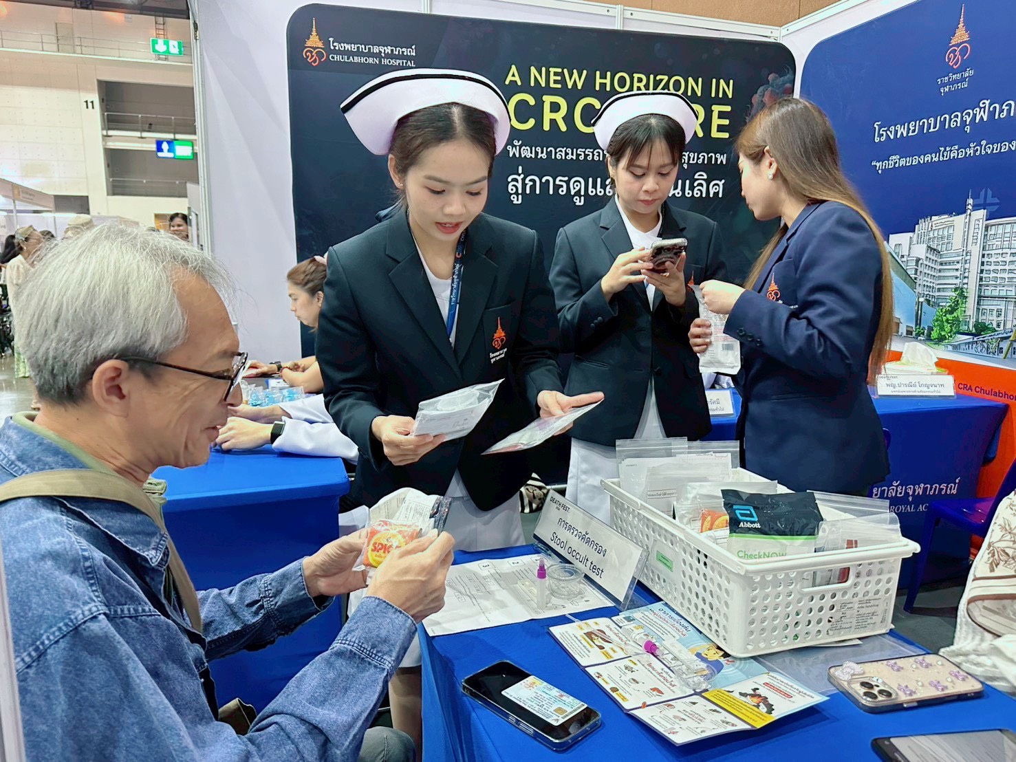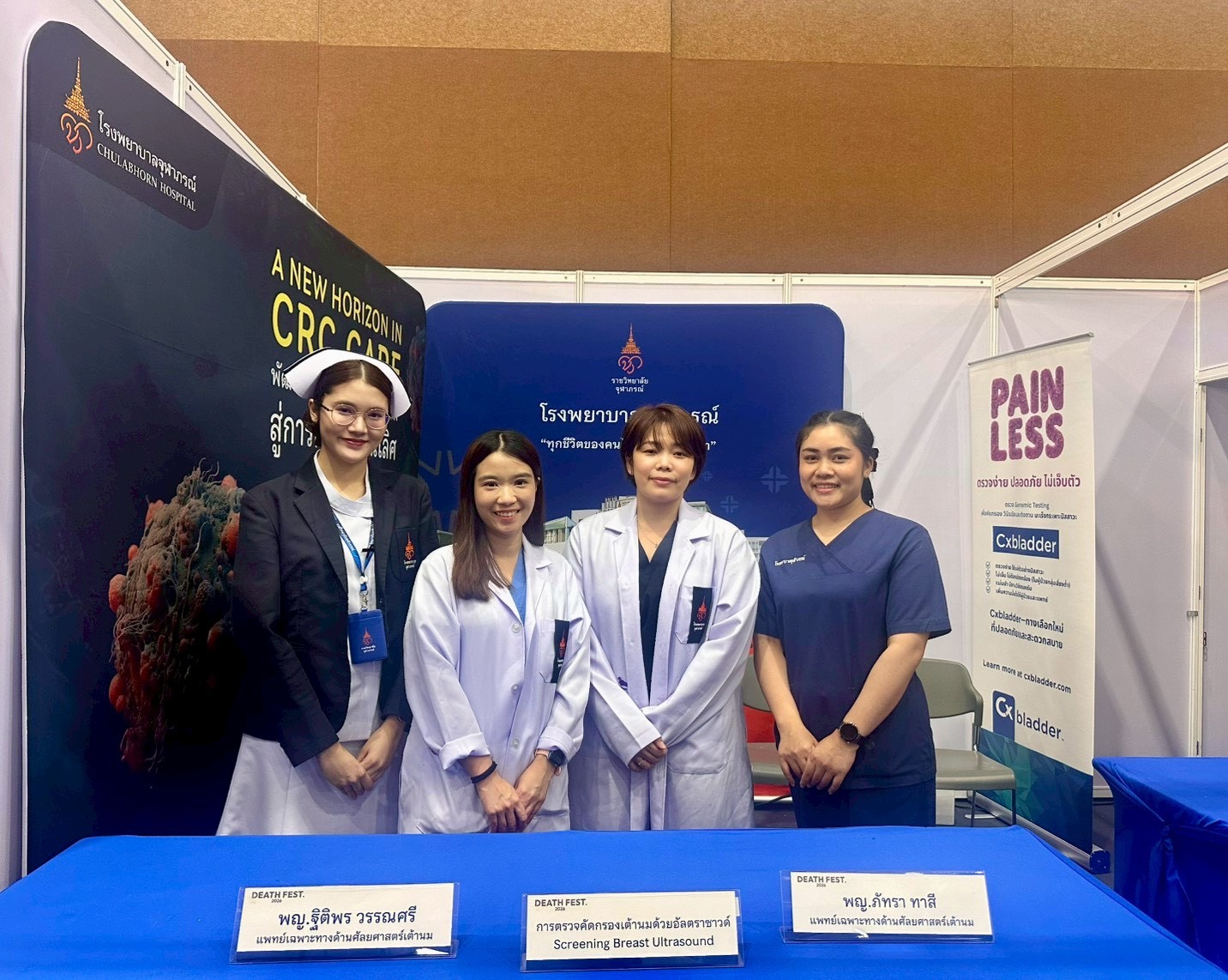 14 มีนาคม 2569 – โรงพยาบาลจุฬาภรณ์ ราชวิทยาลัยจุฬาภรณ์ ให้บริการตรวจคัดกรองมะเร็งเชิงรุกต่อเนื่องเป็นวันที่สอง ในงาน Death Fest 2026: re-member ก่อน-แก่-เจ็บ-ตาย ณ อิมแพ็ค เอ็กซิบิชั่น ฮอลล์ 6 เมืองทองธานี โดยมุ่งเน้นการคัดกรองโรคมะเร็งเพื่อวางแผนดูแลสุขภาพตั้งแต่วันที่ยังแข็งแรง โดยกิจกรรมช่วงเช้า: บริการตรวจคัดกรองและให้คำปรึกษาด้าน “มะเร็งลำไส้” โดยทีมแพทย์ผู้เชี่ยวชาญด้านอายุรศาสตร์โรคระบบทางเดินอาหารและตับ และศัลยกรรมทั่วไป นำโดย นพ.สพล วิวัฒน์พัฒนกุล, นพ.สิริชาญ บุศยารัศมี และ พญ.ปารณีย์ โกญจนาท