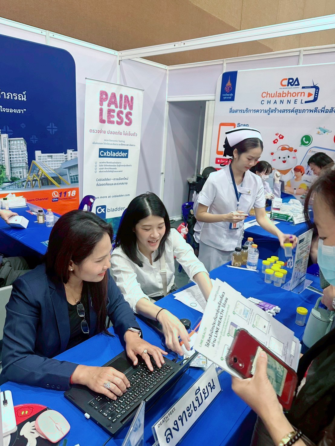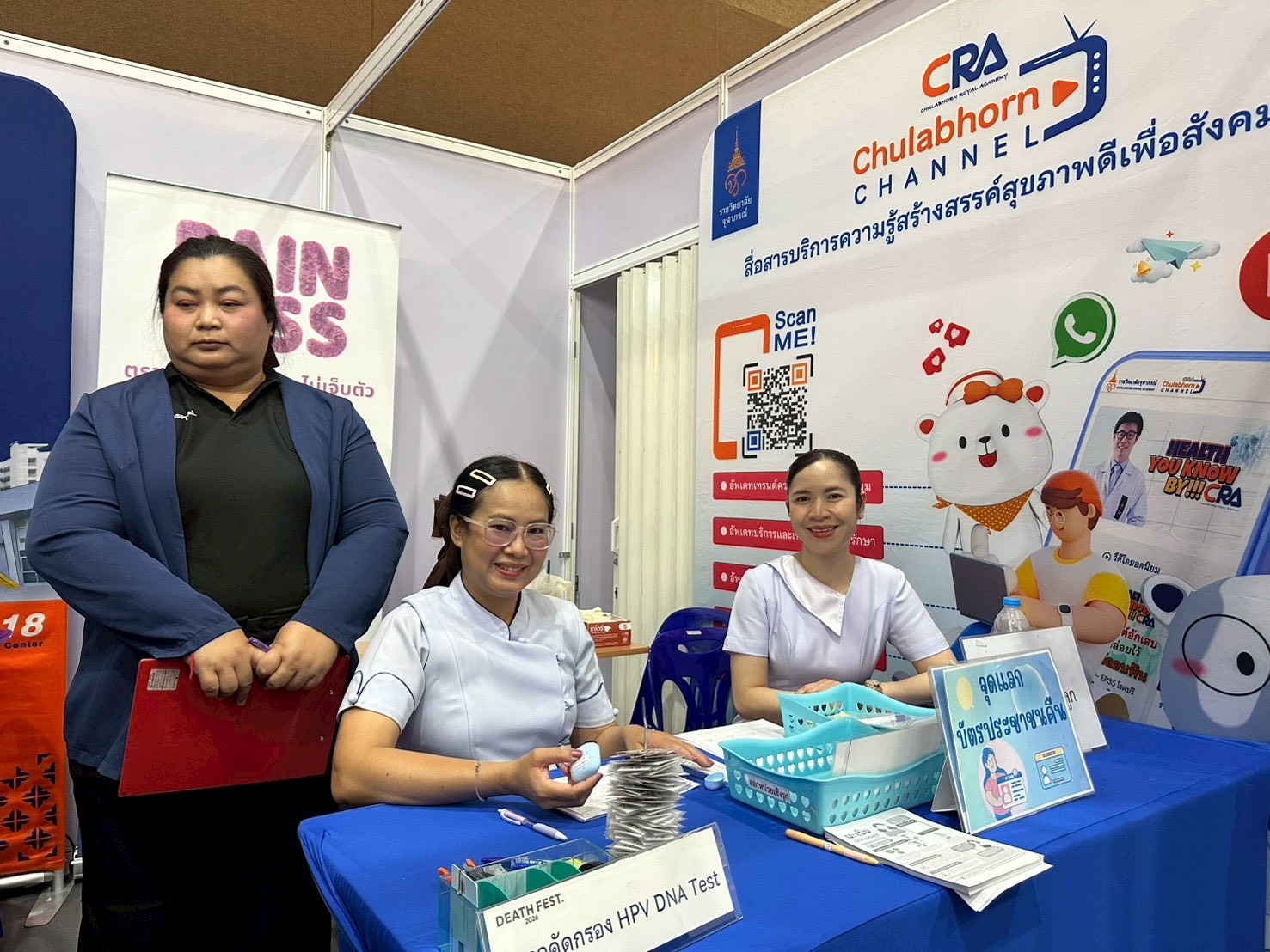 15 มีนาคม 2569 – โรงพยาบาลจุฬาภรณ์ ราชวิทยาลัยจุฬาภรณ์ จัดเต็มส่งท้ายกิจกรรมวันสุดท้ายในงาน Death Fest 2026 : re-member ก่อน-แก่-เจ็บ-ตาย ณ อิมแพ็ค เอ็กซิบิชั่น ฮอลล์ 6 เมืองทองธานี โดยส่งทีมแพทย์เฉพาะทางและบุคลากรทางการแพทย์ให้บริการตรวจคัดกรองมะเร็งเชิงรุกแก่ประชาชนอย่างต่อเนื่อง เพื่อตอกย้ำความสำคัญของการตรวจเช็กสุขภาพเพื่อการวางแผนชีวิตที่มีคุณภาพ โดยไฮไลต์กิจกรรมวันสุดท้าย ณ โซน “แก่ดี” (บูธ E14) ช่วงเช้าจัดให้บริการตรวจคัดกรองและให้คำปรึกษาเพื่อป้องกัน “มะเร็งปากมดลูก” ด้วยวิธี HPV DNA Test โดยมีทีมสูตินรีแพทย์ผู้เชี่ยวชาญ นำโดย นพ.ธีรภัทร สุวรรณศิริสุข และ พญ.เฌอมินทร์ ฐิติภัทร์เลิศเดช คอยให้คำแนะนำอย่างใกล้ชิด และในช่วงบ่าย บริการตรวจคัดกรอง “ระบบทางเดินปัสสาวะ” พร้อมให้คำปรึกษาโดยทีมศัลยแพทย์เฉพาะทางด้านระบบทางเดินปัสสาวะ นำโดย นพ.วิชญะ ปริพัฒนานนท์ ผู้ช่วยผู้อำนวยการโรงพยาบาลจุฬาภรณ์ และ นพ.นุพัชร ยอดคุณธรรม พร้อมด้วย พญ.ชัณษา บางยี่ขัน แพทย์เฉพาะทางศัลยศาสตร์ตับ ตับอ่อนและทางเดินน้ำดี ทีมพยาบาลและบุคลากรผู้เชี่ยวชาญที่มาร่วมดูแลสุขภาพเบื้องต้นให้กับผู้เข้าชมงาน