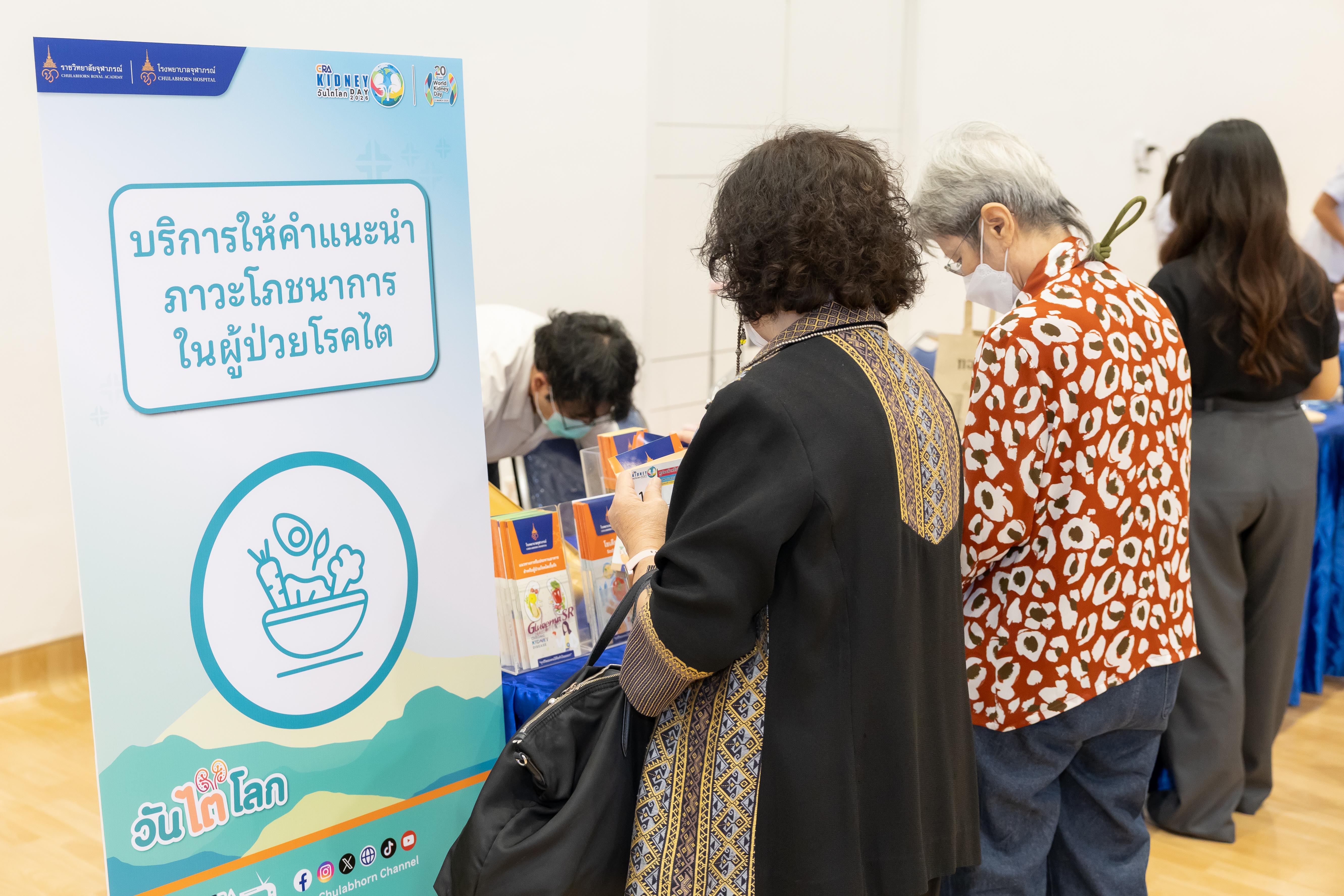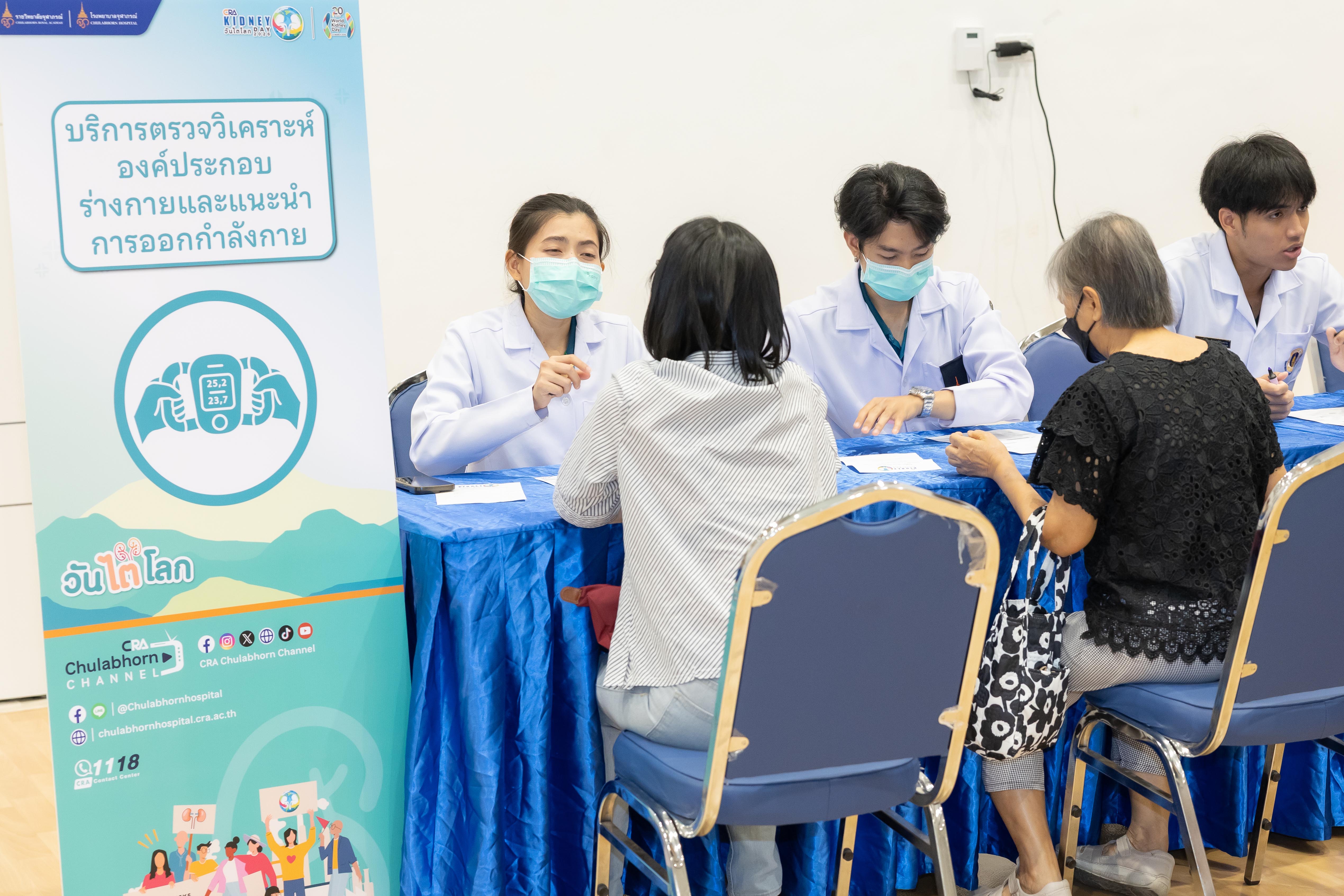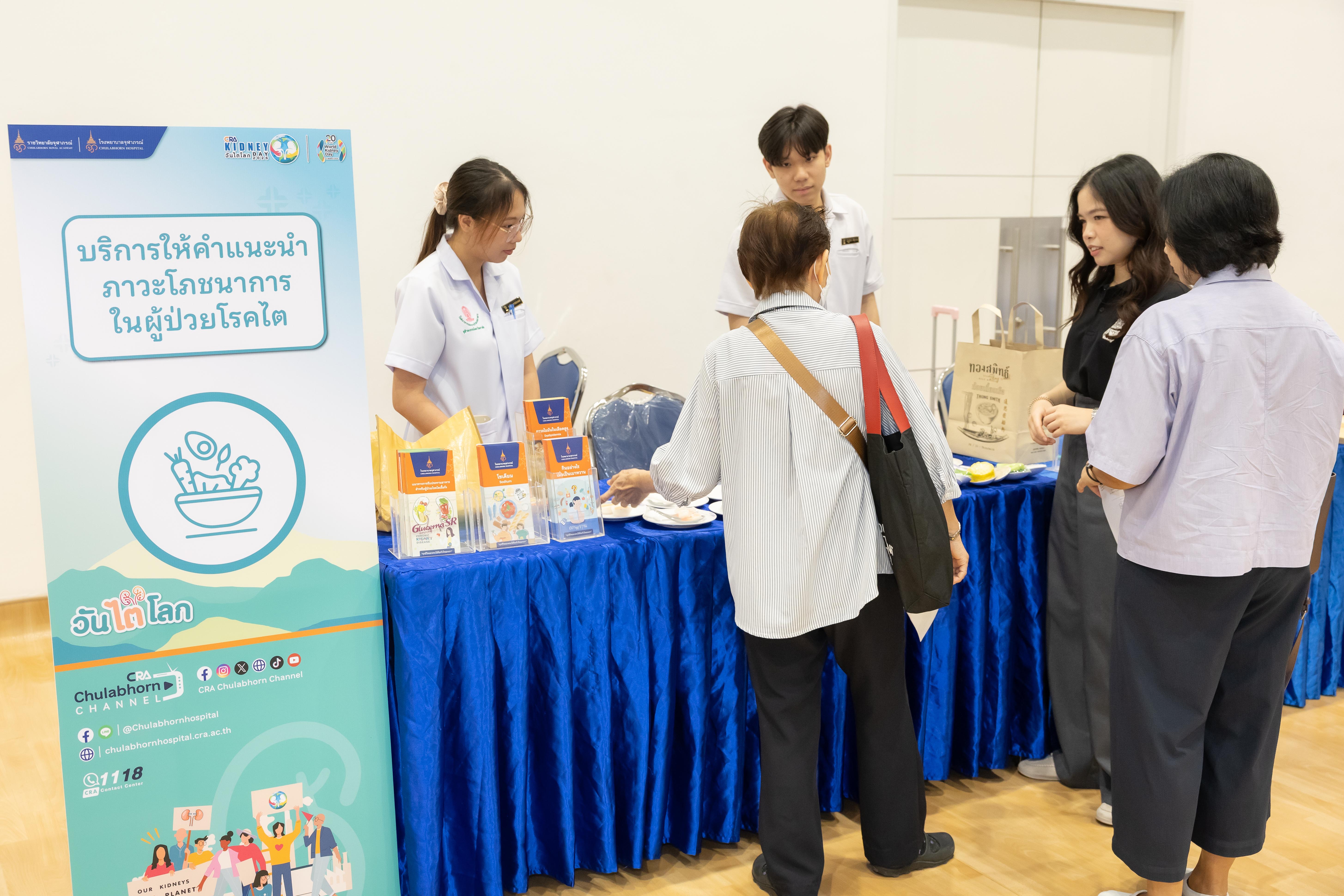 ด้าน นายแพทย์วุฒิพงศ์ ตรีวัฒนา เผยว่ากลุ่มเสี่ยงหลักคือผู้ป่วยเบาหวาน ความดันโลหิตสูง และผู้ที่มีประวัติครอบครัวเป็นโรคไต รวมถึงพฤติกรรมการใช้ยาแก้ปวดกลุ่ม NSAIDs (เช่น ไดโคลฟีแนค) เป็นเวลานาน หากดำเนินโรคไปถึงระยะสุดท้าย พร้อมแนะแนวทางการบำบัดทดแทนไต 4 วิธีหลัก ได้แก่ 1. การปลูกถ่ายไต เป็นวิธีที่มีประสิทธิภาพสูงสุด 2. การฟอกเลือด 3. การล้างไตทางช่องท้อง และ 4. การรักษาแบบประคับประคอง ปิดท้ายด้วย นายแพทย์ปิยพันธ์ ประพันธ์วัฒนะ เน้นย้ำพฤติกรรมเสี่ยง…เปลี่ยน “ไตดี” เป็น “ไตเสื่อม” อย่างการละเลยการตรวจสุขภาพประจำปี เพราะหากรอให้ร่างกายแสดงอาการบวมหรือหอบเหนื่อย มักหมายถึงไตเข้าสู่ระยะท้ายแล้ว การตรวจสุขภาพจะช่วยให้พบสัญญาณเตือนของเบาหวาน ความดัน หรือนิ่วในไต ได้ตั้งแต่เนิ่นๆ การรักษาแบบ “ตามใจตัวเอง” ในกลุ่มผู้ป่วยที่มีโรคประจำตัว (เบาหวาน/ความดัน) มักพบพฤติกรรมการทานยาไม่ต่อเนื่อง เช่น ทานยาความดันเฉพาะตอนปวดหัว หรือยังทานเค็ม-หวานจัดเหมือนเดิม ซึ่งเป็นการซ้ำเติมให้ไตเสื่อมสภาพเร็วขึ้นหลายเท่าตัว และการซื้อ “ยาสมุนไพรและอาหารเสริม” การเลือกซื้อยาแก้ปวดกลุ่ม NSAIDs มาทานเองเป็นประจำ หรือการหลงเชื่อโฆษณาอาหารเสริมและสมุนไพรที่อ้างสรรพคุณเกินจริง อาจส่งผลให้เกิดภาวะไตอักเสบเฉียบพลันโดยไม่รู้ตัว นอกจากนี้ ยังมีการให้ความรู้ด้านโภชนาการในหัวข้อ “ครัวรักษ์ไต เรารักษ์โลก” โดยนักกำหนดอาหารวิชาชีพ และการแนะนำการออกกำลังกาย “ขยับกาย ขยายใจ” โดยทีมนักวิทยาศาสตร์การกีฬา พร้อมเปิดให้บริการตรวจสุขภาพเบื้องต้นแก่ประชาชนภายในงานโดยไม่เสียค่าใช้จ่าย เพื่อคัดกรองความเสี่ยงและส่งเสริมสุขภาพเชิงป้องกัน ประกอบด้วย บริการตรวจคัดกรองโปรตีนในปัสสาวะ, วัดความดันโลหิต และวิเคราะห์องค์ประกอบร่างกาย การให้คำปรึกษาเจาะลึกด้านสุขภาพไตโดยทีมแพทย์เฉพาะทาง พร้อมบูธให้ความรู้ด้านโภชนาการและการออกกำลังกายที่ออกแบบมาเพื่อผู้ป่วยโรคไตโดยเฉพาะ และบูธบริจาคอวัยวะ: โดยศูนย์ปลูกถ่ายอวัยวะและเนื้อเยื่อฯ เพื่อสร้างความตระหนักรู้และเชิญชวนประชาชนร่วม “ส่งต่อชีวิต” ให้แก่ผู้ป่วยโรคไตระยะสุดท้ายที่รอคอยการปลูกถ่ายไต กิจกรรมในครั้งนี้ไม่เพียงแต่เป็นการให้ความรู้ แต่ยังสะท้อนถึงความมุ่งมั่นของโรงพยาบาลจุฬาภรณ์ในการดูแลสุขภาพประชาชนอย่าง “ครบวงจร” ตั้งแต่การป้องกันไปจนถึงการรักษาขั้นสูง เพื่อสร้างคุณภาพชีวิตที่ดีและยั่งยืนให้แก่สังคมไทย