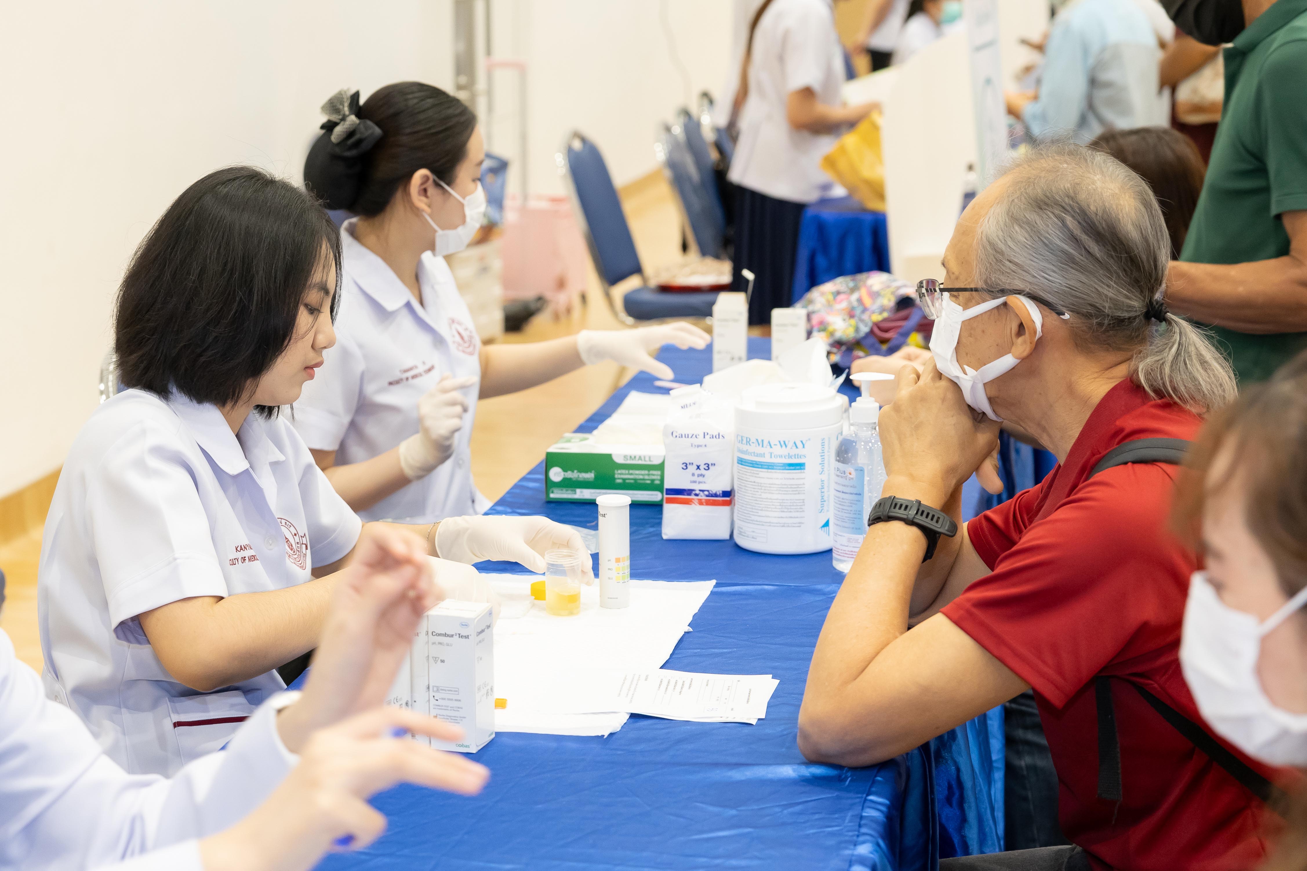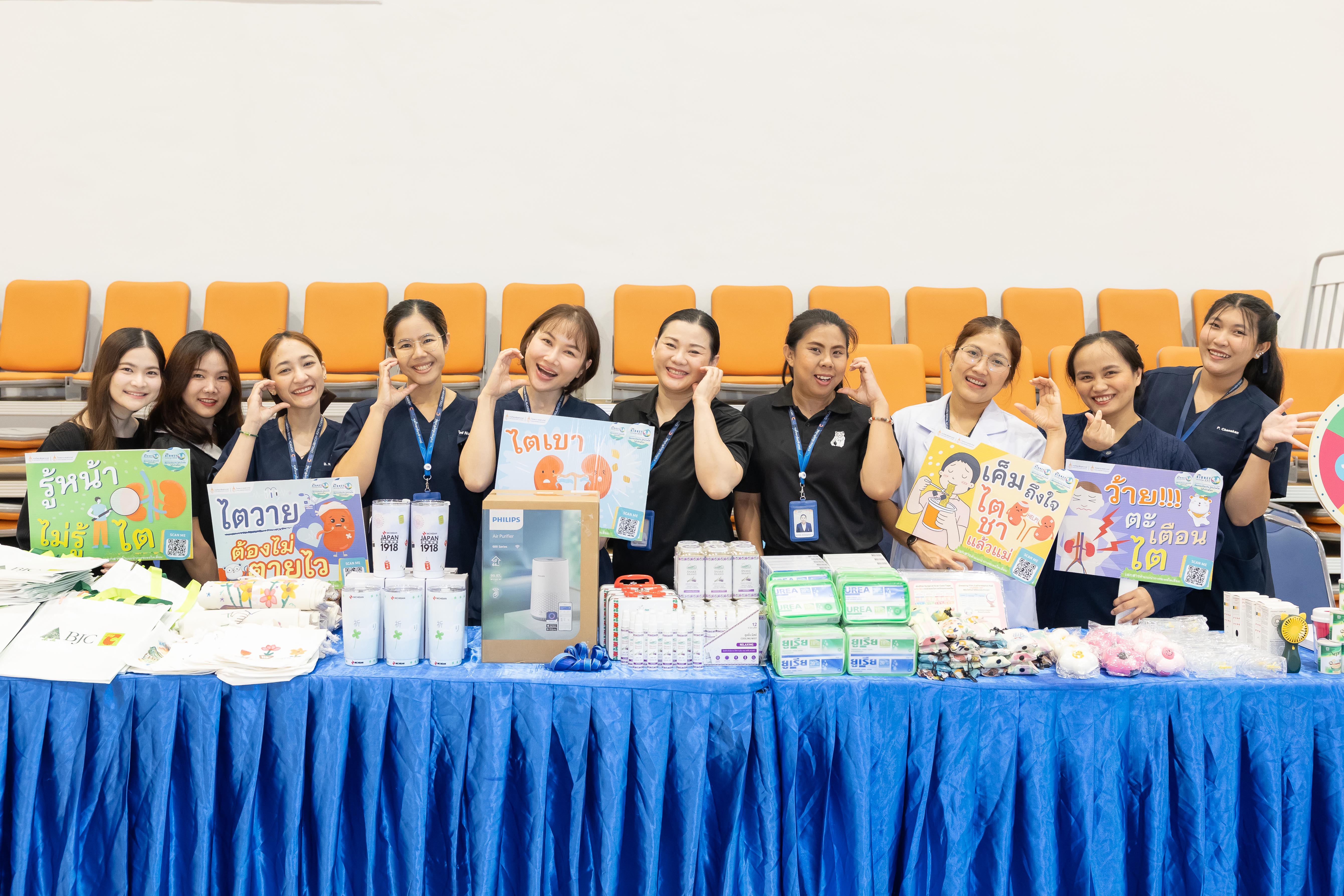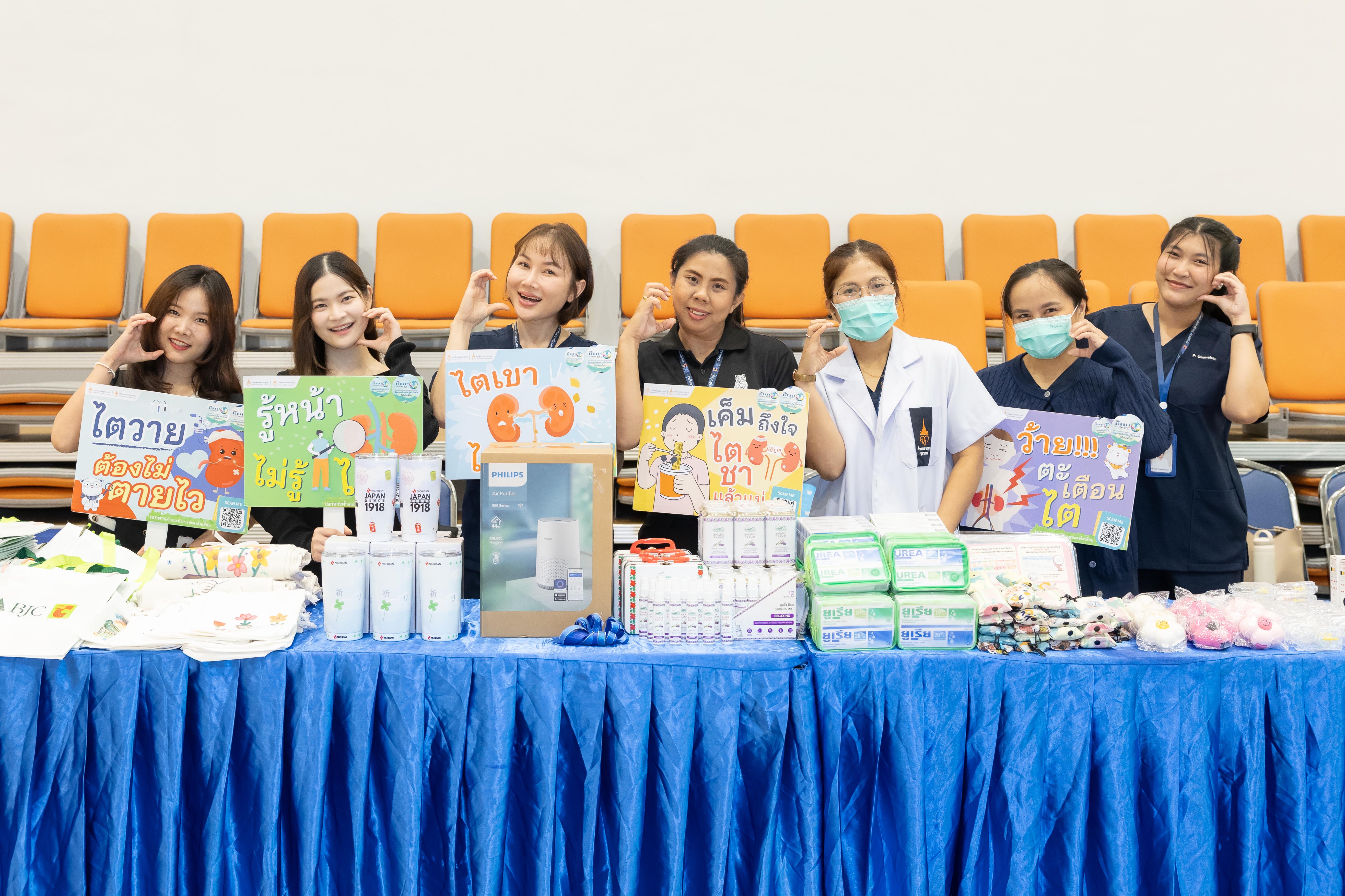 ด้าน นายแพทย์วุฒิพงศ์ ตรีวัฒนา เผยว่ากลุ่มเสี่ยงหลักคือผู้ป่วยเบาหวาน ความดันโลหิตสูง และผู้ที่มีประวัติครอบครัวเป็นโรคไต รวมถึงพฤติกรรมการใช้ยาแก้ปวดกลุ่ม NSAIDs (เช่น ไดโคลฟีแนค) เป็นเวลานาน หากดำเนินโรคไปถึงระยะสุดท้าย พร้อมแนะแนวทางการบำบัดทดแทนไต 4 วิธีหลัก ได้แก่ 1. การปลูกถ่ายไต เป็นวิธีที่มีประสิทธิภาพสูงสุด 2. การฟอกเลือด 3. การล้างไตทางช่องท้อง และ 4. การรักษาแบบประคับประคอง ปิดท้ายด้วย นายแพทย์ปิยพันธ์ ประพันธ์วัฒนะ เน้นย้ำพฤติกรรมเสี่ยง…เปลี่ยน “ไตดี” เป็น “ไตเสื่อม” อย่างการละเลยการตรวจสุขภาพประจำปี เพราะหากรอให้ร่างกายแสดงอาการบวมหรือหอบเหนื่อย มักหมายถึงไตเข้าสู่ระยะท้ายแล้ว การตรวจสุขภาพจะช่วยให้พบสัญญาณเตือนของเบาหวาน ความดัน หรือนิ่วในไต ได้ตั้งแต่เนิ่นๆ การรักษาแบบ “ตามใจตัวเอง” ในกลุ่มผู้ป่วยที่มีโรคประจำตัว (เบาหวาน/ความดัน) มักพบพฤติกรรมการทานยาไม่ต่อเนื่อง เช่น ทานยาความดันเฉพาะตอนปวดหัว หรือยังทานเค็ม-หวานจัดเหมือนเดิม ซึ่งเป็นการซ้ำเติมให้ไตเสื่อมสภาพเร็วขึ้นหลายเท่าตัว และการซื้อ “ยาสมุนไพรและอาหารเสริม” การเลือกซื้อยาแก้ปวดกลุ่ม NSAIDs มาทานเองเป็นประจำ หรือการหลงเชื่อโฆษณาอาหารเสริมและสมุนไพรที่อ้างสรรพคุณเกินจริง อาจส่งผลให้เกิดภาวะไตอักเสบเฉียบพลันโดยไม่รู้ตัว นอกจากนี้ ยังมีการให้ความรู้ด้านโภชนาการในหัวข้อ “ครัวรักษ์ไต เรารักษ์โลก” โดยนักกำหนดอาหารวิชาชีพ และการแนะนำการออกกำลังกาย “ขยับกาย ขยายใจ” โดยทีมนักวิทยาศาสตร์การกีฬา พร้อมเปิดให้บริการตรวจสุขภาพเบื้องต้นแก่ประชาชนภายในงานโดยไม่เสียค่าใช้จ่าย เพื่อคัดกรองความเสี่ยงและส่งเสริมสุขภาพเชิงป้องกัน ประกอบด้วย บริการตรวจคัดกรองโปรตีนในปัสสาวะ, วัดความดันโลหิต และวิเคราะห์องค์ประกอบร่างกาย การให้คำปรึกษาเจาะลึกด้านสุขภาพไตโดยทีมแพทย์เฉพาะทาง พร้อมบูธให้ความรู้ด้านโภชนาการและการออกกำลังกายที่ออกแบบมาเพื่อผู้ป่วยโรคไตโดยเฉพาะ และบูธบริจาคอวัยวะ: โดยศูนย์ปลูกถ่ายอวัยวะและเนื้อเยื่อฯ เพื่อสร้างความตระหนักรู้และเชิญชวนประชาชนร่วม “ส่งต่อชีวิต” ให้แก่ผู้ป่วยโรคไตระยะสุดท้ายที่รอคอยการปลูกถ่ายไต กิจกรรมในครั้งนี้ไม่เพียงแต่เป็นการให้ความรู้ แต่ยังสะท้อนถึงความมุ่งมั่นของโรงพยาบาลจุฬาภรณ์ในการดูแลสุขภาพประชาชนอย่าง “ครบวงจร” ตั้งแต่การป้องกันไปจนถึงการรักษาขั้นสูง เพื่อสร้างคุณภาพชีวิตที่ดีและยั่งยืนให้แก่สังคมไทย