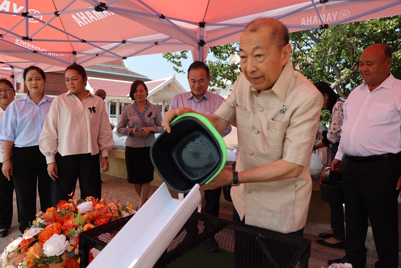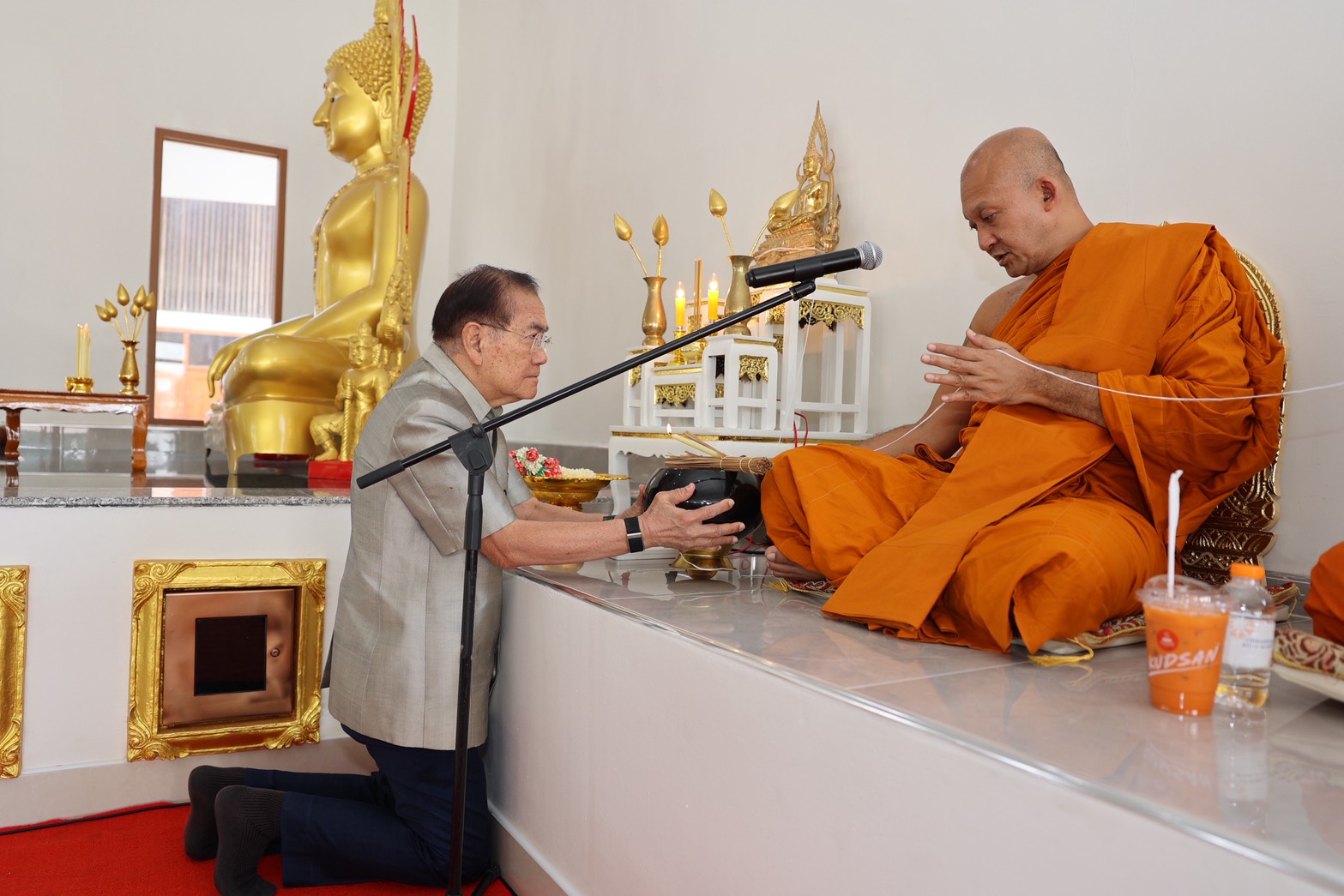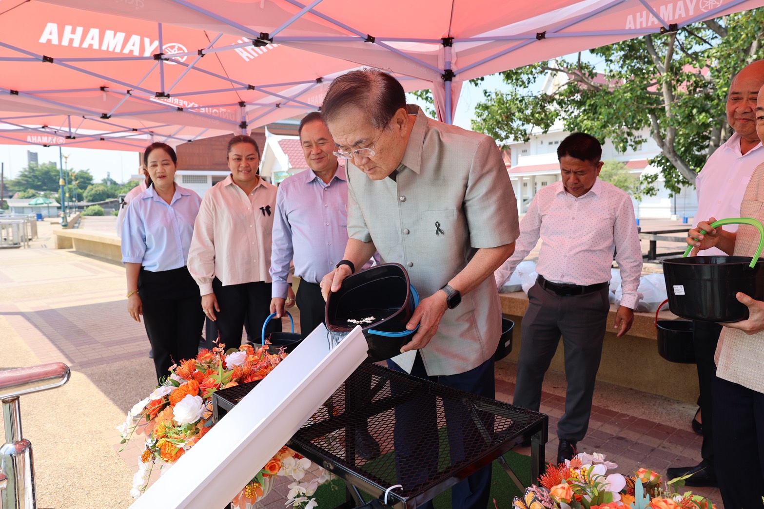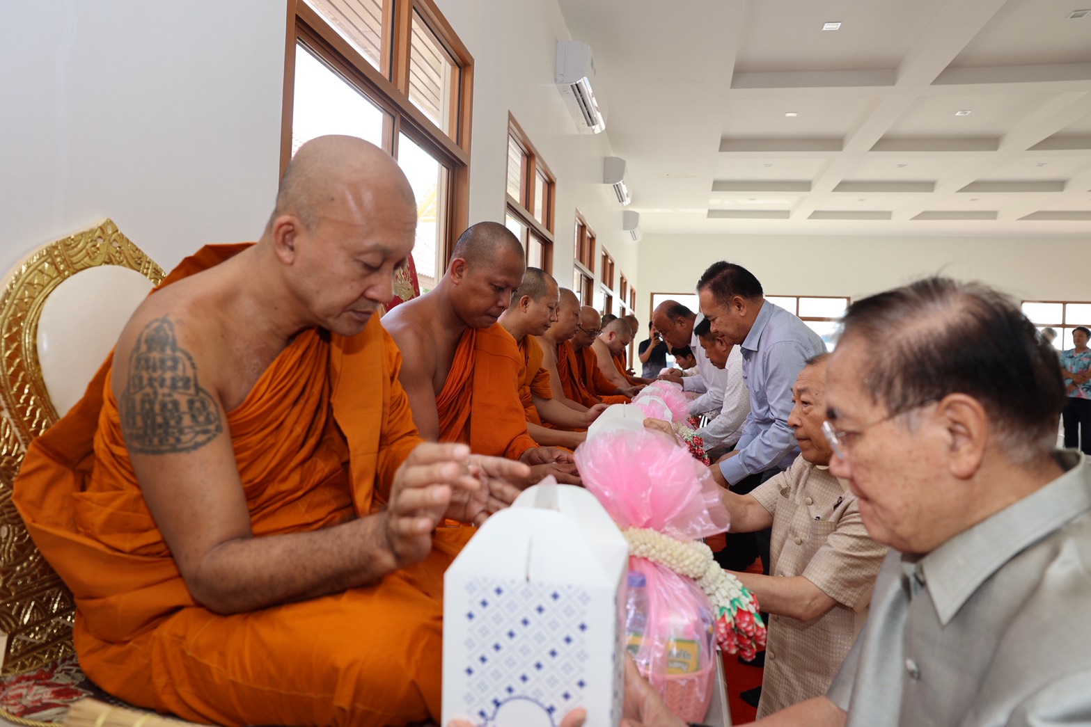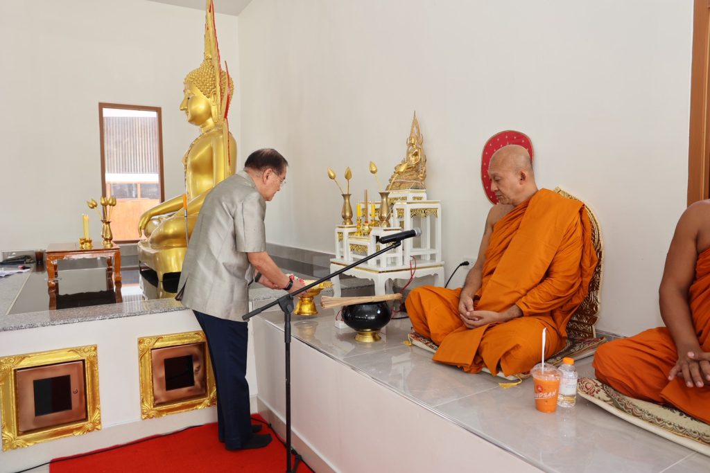 การนี้ประธานในพิธีจุดธูปเทียนบูชาพระรัตนตรัย อาราธนาศีล พระภิกษุสงฆ์จำนวน ๙ รูป จากวัดชินวราราม เจ้าหน้าที่กล่าวคำถวายสังฆทาน พระสงฆ์อนุโมทนา ผู้เข้าร่วมพิธีเจริญจิตตภาวนา กรวดน้ำและรับพร จากนั้น ผู้เข้าร่วมพิธีได้ร่วมทำบุญปล่อยปลา เพื่อความเป็นสิริมงคลในโอกาสก้าวเข้าสู่ศักราชใหม่ไทย ณ วัดชินวราราม อำเภอเมืองปทุมธานี จังหวัดปทุมธานี