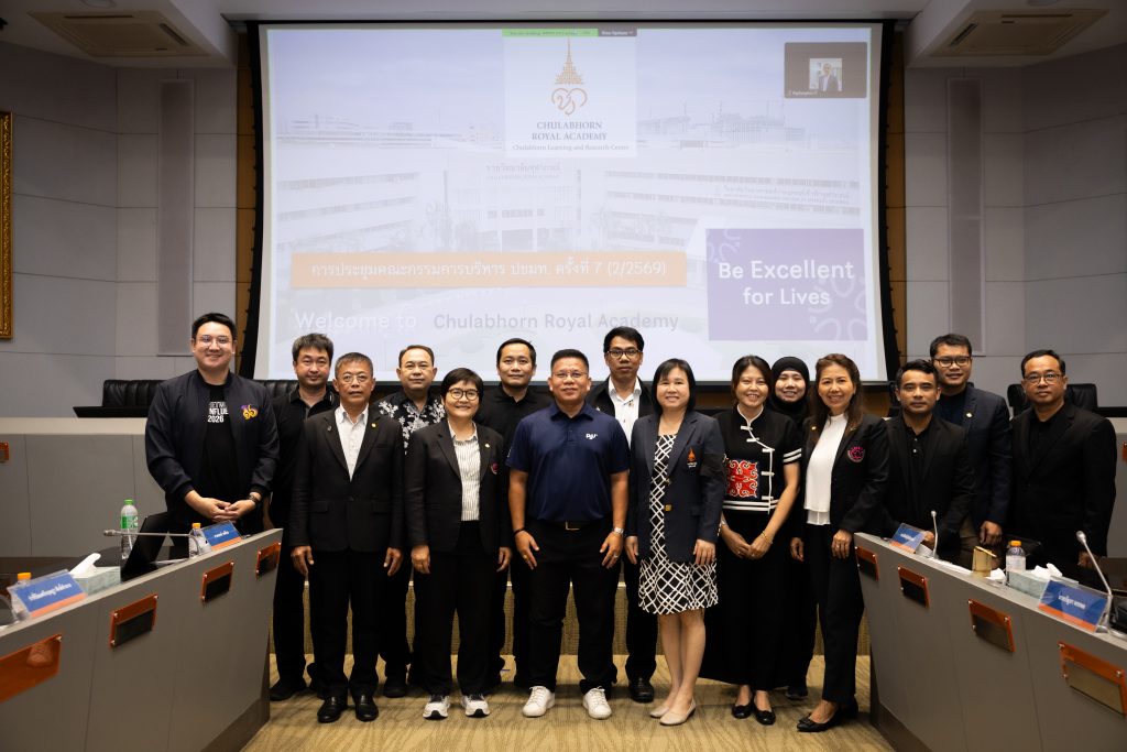 ราชวิทยาลัยจุฬาภรณ์ เป็นเจ้าภาพจัดการประชุมคณะกรรมการบริหารที่ประชุมสภาข้าราชการ พนักงาน และลูกจ้างมหาวิทยาลัยแห่งประเทศไทย (ปขมท.) ชุดที่ 23 ครั้งที่ 7 (2/2569) เมื่อวันศุกร์ที่ 24 เมษายน 2569 โดยมีคณะกรรมการบริหารเข้าร่วมจำนวน 18 ท่าน โดยการประชุมมุ่งขับเคลื่อนการดำเนินงานภายใต้ความร่วมมือของคณะกรรมการและเครือข่ายทั่วประเทศ เพื่อพัฒนางานวิชาการ เสริมสร้างองค์ความรู้ และยกระดับมาตรฐานการปฏิบัติงานของบุคลากรสายสนับสนุนให้สอดคล้องกับการเปลี่ยนแปลงในยุคปัจจุบัน พร้อมกันนี้ในวันเสาร์ที่ 25 เมษายน 2569 ราชวิทยาลัยจุฬาภรณ์ เป็นเจ้าภาพจัดการประชุมที่ประชุมสภาข้าราชการ พนักงาน และลูกจ้างมหาวิทยาลัยแห่งประเทศไทย (ปขมท.) สมัยสามัญ ครั้งที่ 122 (2/2569) ณ ราชวิทยาลัยจุฬาภรณ์ กรุงเทพมหานคร และผ่านระบบออนไลน์ Zoom Application โดยมีคณะกรรมการ ปขมท. จากสถาบันอุดมศึกษา 33 มหาวิทยาลัยทั่วประเทศเข้าร่วมประชุมอย่างพร้อมเพรียงกัน โดยมีนางจริยา ปัญญา รักษาการผู้ช่วยเลขาธิการราชวิทยาลัยจุฬาภรณ์ และกรรมการผู้ทรงคุณวุฒิ ปขมท. ได้กล่าวต้อนรับผู้เข้าร่วมการประชุมอย่างเป็นทางการ พร้อมทั้งกล่าวถึงบทบาทและบริบทของราชวิทยาลัยจุฬาภรณ์ในการเป็นสถาบันการศึกษาชั้นนำที่มุ่งขับเคลื่อนงานด้านการแพทย์เพื่อประโยชน์ของประชาชน โดยเน้นการพัฒนาองค์ความรู้ งานวิจัย และนวัตกรรมทางการแพทย์ที่ทันสมัย ควบคู่กับการจัดการเรียนการสอนในหลักสูตรต่าง ๆ ที่ตอบสนองต่อความต้องการของประเทศ ทั้งในระดับบุคลากรทางการแพทย์และสหสาขาวิชาชีพ เพื่อยกระดับคุณภาพชีวิตของประชาชนอย่างยั่งยืน พร้อมทั้งแสดงความยินดีที่ได้เป็นเจ้าภาพในการจัดการประชุมครั้งนี้ และหวังเป็นอย่างยิ่งว่าการประชุมจะเป็นเวทีสำคัญในการแลกเปลี่ยนความคิดเห็นและพัฒนาความร่วมมือระหว่างเครือข่ายมหาวิทยาลัยทั่วประเทศต่อไป จากนั้น นายเรวัต รัตนกาญจน์ ประธานที่ประชุมสภาข้าราชการ พนักงาน และลูกจ้างมหาวิทยาลัยแห่งประเทศไทย (ปขมท.) ได้กล่าวถึงวัตถุประสงค์และภารกิจสำคัญของ ปขมท. ในการทำหน้าที่เป็นศูนย์กลางในการประสานความร่วมมือระหว่างเครือข่ายมหาวิทยาลัยทั่วประเทศ เพื่อเสริมสร้างความเข้มแข็งให้กับบุคลากรสายสนับสนุนวิชาการอย่างเป็นระบบ พร้อมทั้งส่งเสริมและพัฒนาศักยภาพบุคลากรให้มีความรู้ ความสามารถ และทักษะที่สอดคล้องกับบริบทของการเปลี่ยนแปลงในยุคปัจจุบัน