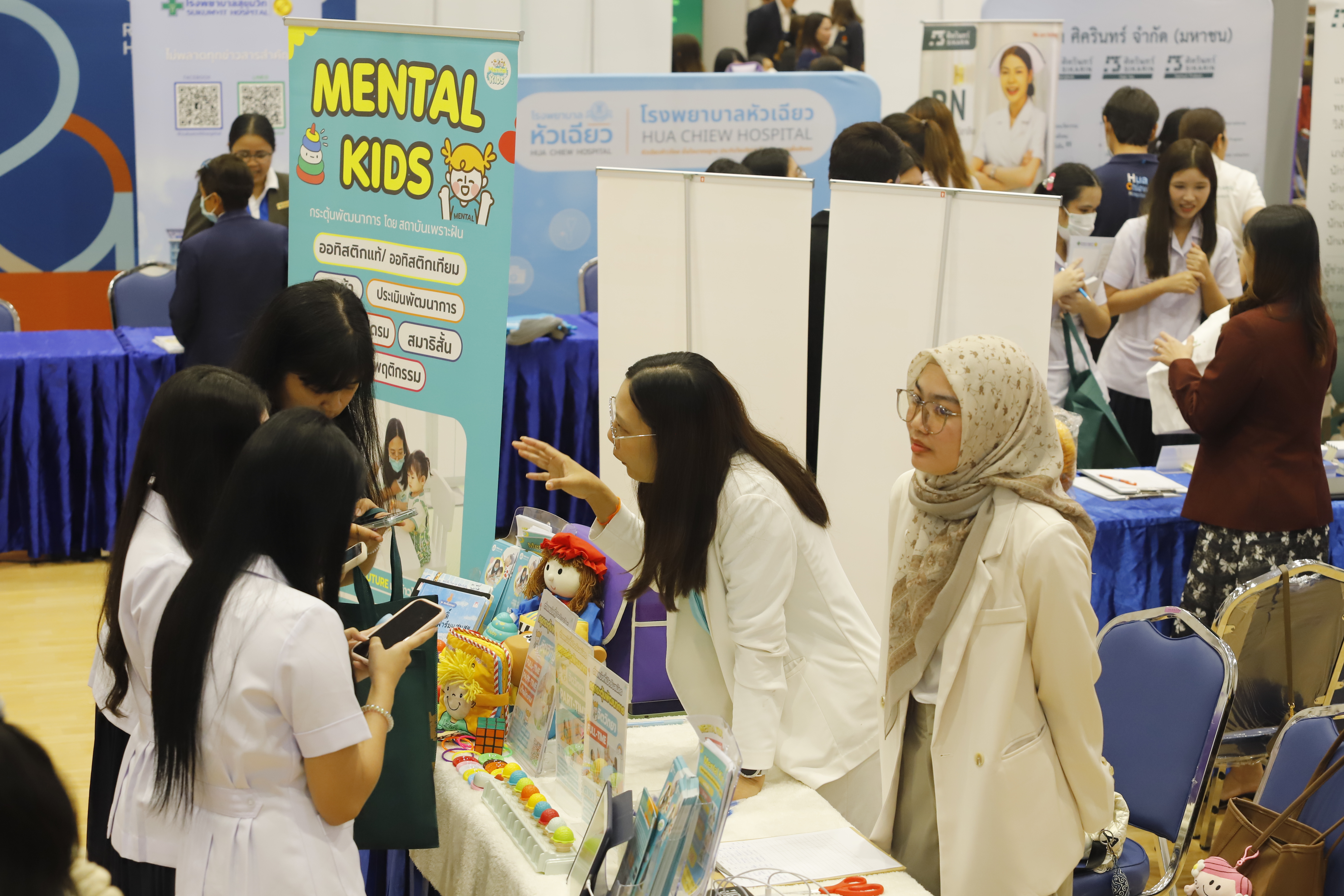 ช่วงไฮไลท์พบกับ กิจกรรมเสวนาแลกเปลี่ยนด้านเทรนด์นวัตกรรมใหม่ และการเตรียมพร้อมสู่ First Jobber 5.0 โดย ดร.พิเชษฐ ฤกษ์ปรีชา ประธานเจ้าหน้าที่บริหาร (CEO) บริษัท ไลน์ คอมพานี (ประเทศไทย) จำกัด มาให้ความรู้เกี่ยวกับการใช้เทคโนโลยี AI ที่ยกระดับการทำงานในปัจจุบัน รวมถึงเทรนด์เทคโนโลยีใหม่ในการขับเคลื่อนองค์กรและสังคมยุคดิจิทัล โดยมี บ็อบ-ณัฐธีร์ โกศลพิศิษฐ์ ผู้ประกาศข่าวชื่อดังรับหน้าที่พิธีกร พร้อมแนะนำหลักสูตรใหม่ราชวิทยาลัยจุฬาภรณ์ มุ่งผลิตบุคลากรตอบโจทย์ความต้องการของตลาดแรงงาน “วิศวกรรมชีวการแพทย์” และ “เทคโนโลยีอาหารทางการแพทย์และสุขภาพ” โดย อาจารย์ไตรศักดิ์ แย้มสะอาด อาจารย์ประจำหลักสูตรวิศวกรรมศาสตรบัณฑิต สาขาวิชาวิศวกรรมชีวการแพทย์ และ อาจารย์อัฐ เข็มทอง อาจารย์ประจำหลักสูตรวิทยาศาสตรบัณฑิต สาขาวิชาเทคโนโลยีอาหารทางการแพทย์และสุขภาพ ทังนี้ ยังมีนักศึกษารุ่นพี่จากราชวิทยาลัยจุฬาภรณ์ที่มาร่วมแบ่งปันประสบการณ์ชีวิตในความแตกต่างระหว่างการเรียนและการทำงาน พร้อมทั้งการเตรียมตัวสู่เส้นทางสายอาชีพ เพื่อพัฒนาศักยภาพและสร้างแรงบันดาลใจในการประกอบวิชาชีพ เป็นงานนิทรรศการโชว์ศักยภาพของของเยาวชนรุ่นใหม่ที่ตอบโจทย์ตลาดแรงงานในยุคดิจิทัลอย่างแท้จริง