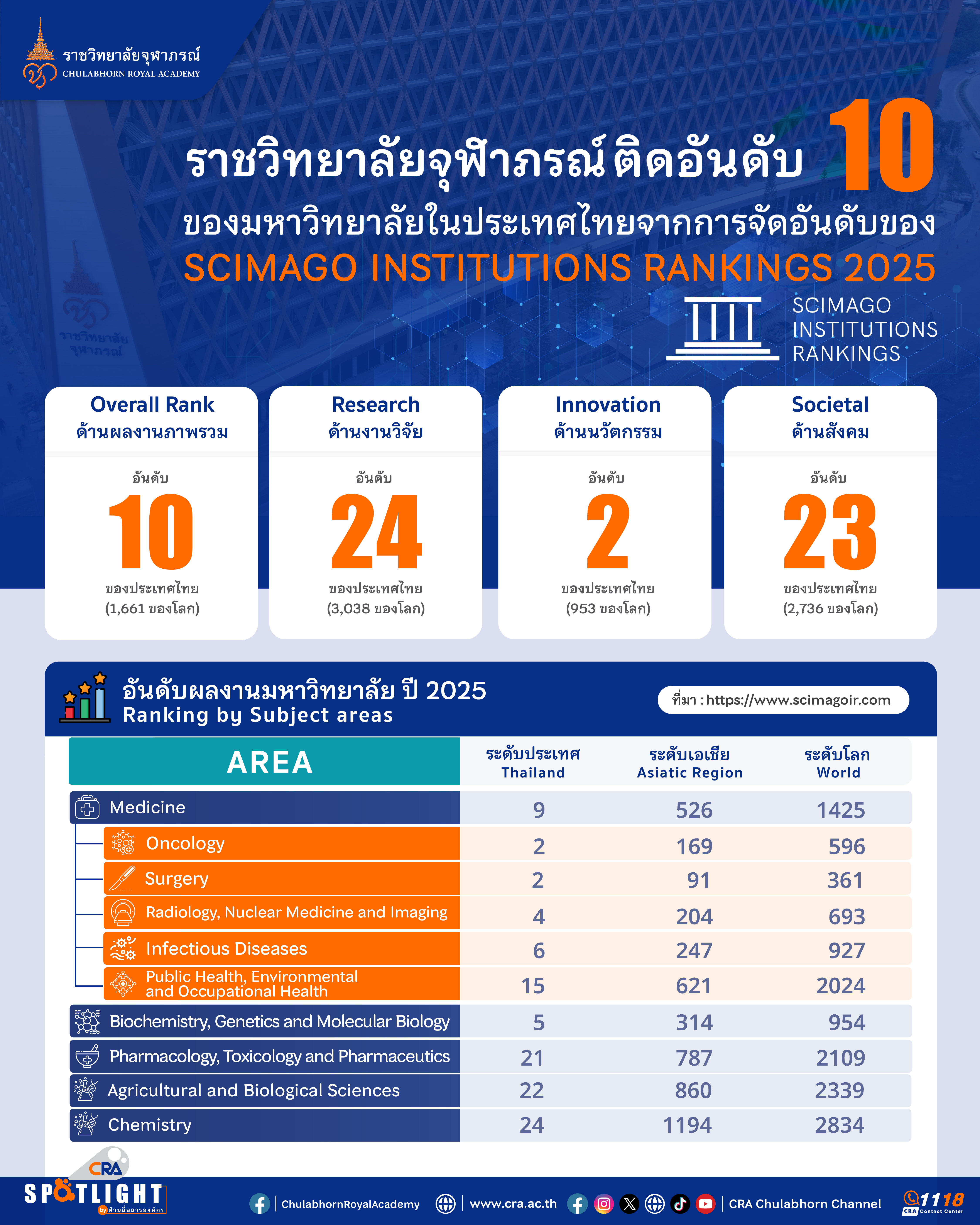 จากการจัดอันดับโดย SCIMAGO INSTITUTIONS RANKINGS (SIR) 2025