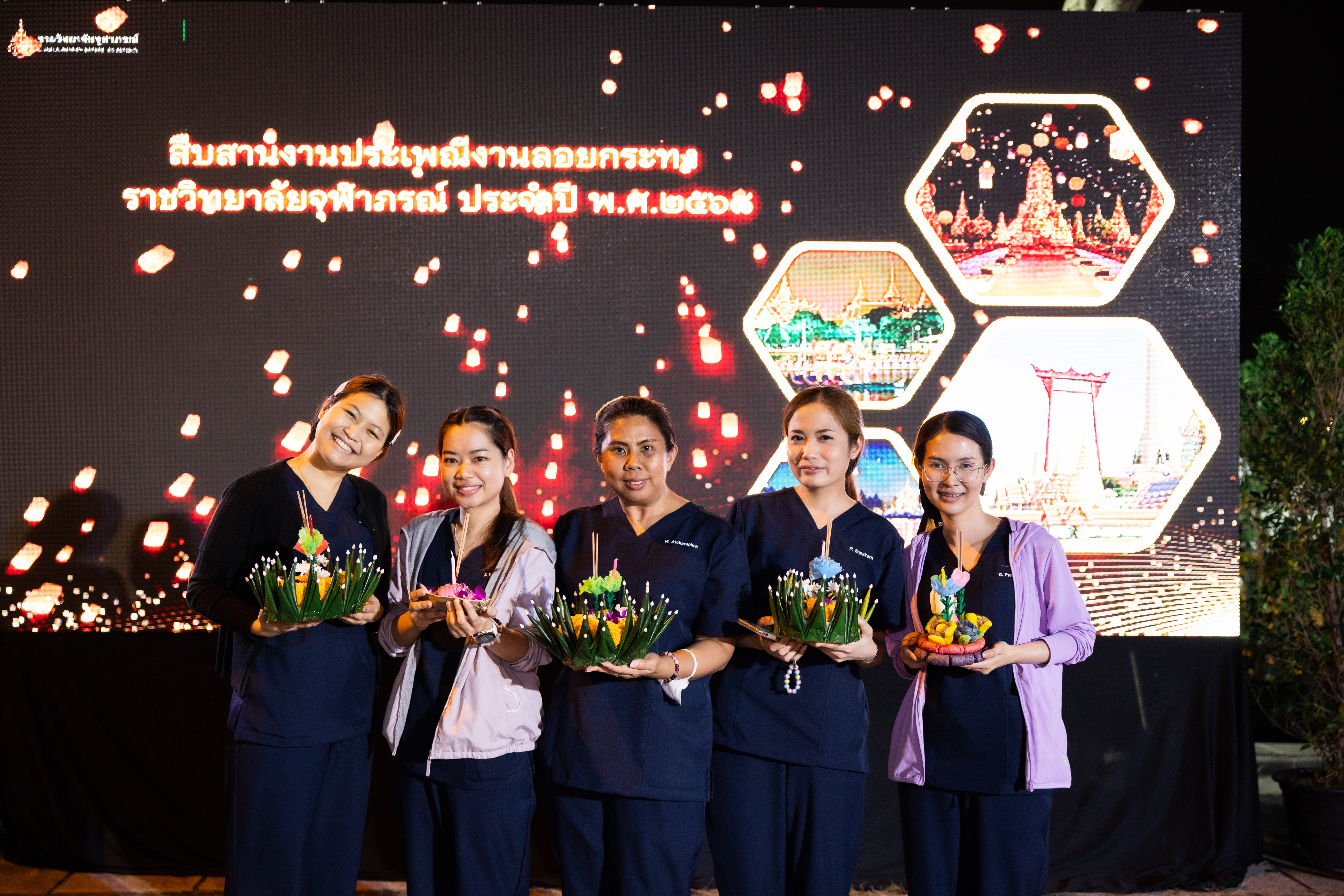 วันที่ ๕ พฤศจิกายน ๒๕๖๘ ราชวิทยาลัยจุฬาภรณ์ ร่วมสืบสานประเพณีไทย จัดงาน “สืบสานประเพณีลอยกระทงราชวิทยาลัยจุฬาภรณ์ ประจำปี ๒๕๖๘ ขึ้น ในบรรยากาศที่งดงามและสงบเรียบร้อย เพื่อน้อมรำลึกในพระมหากรุณาธิคุณของสมเด็จพระนางเจ้าสิริกิติ์ พระบรมราชินีนาถ พระบรมราชชนนีพันปีหลวง ผู้ทรงอนุรักษ์และส่งเสริมศิลปวัฒนธรรมไทยให้คงอยู่มาจนถึงปัจจุบัน โดยมี ศาสตราจารย์เกียรติคุณ นายแพทย์รัชตะ รัชตะนาวิน รักษาการรองเลขาธิการราชวิทยาลัยจุฬาภรณ์ เป็นประธานในพิธี พร้อมคณะผู้บริหาร คณาจารย์ บุคลากรและนักศึกษาราชวิทยาลัยจุฬาภรณ์ ร่วมพิธีอย่างพร้อมเพรียงกัน ณ บริเวณสระน้ำและลานกิจกรรมเวทีด้านหน้าองค์พระพุทธโสธร อาคารสำนักงานราชวิทยาลัยจุฬาภรณ์ เขตหลักสี่ กรุงเทพมหานคร พร้อมกันนี้ได้จัดให้มีกิจกรรมการประดิษฐ์กระทงจากวัสดุธรรมชาติ ณ CRA Hall ราชวิทยาลัยจุฬาภรณ์ เขตหลักสี่ กรุงเทพมหานคร