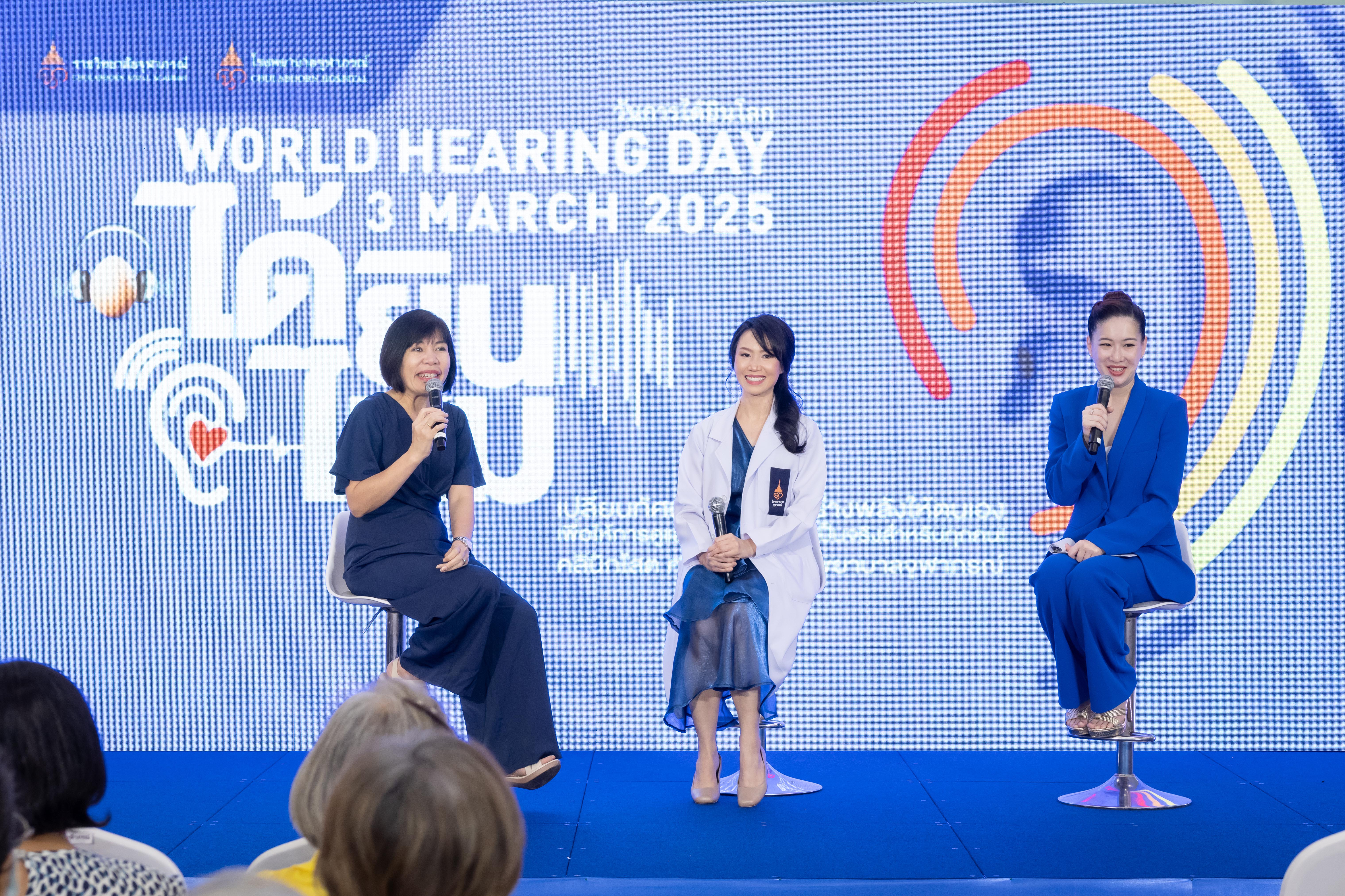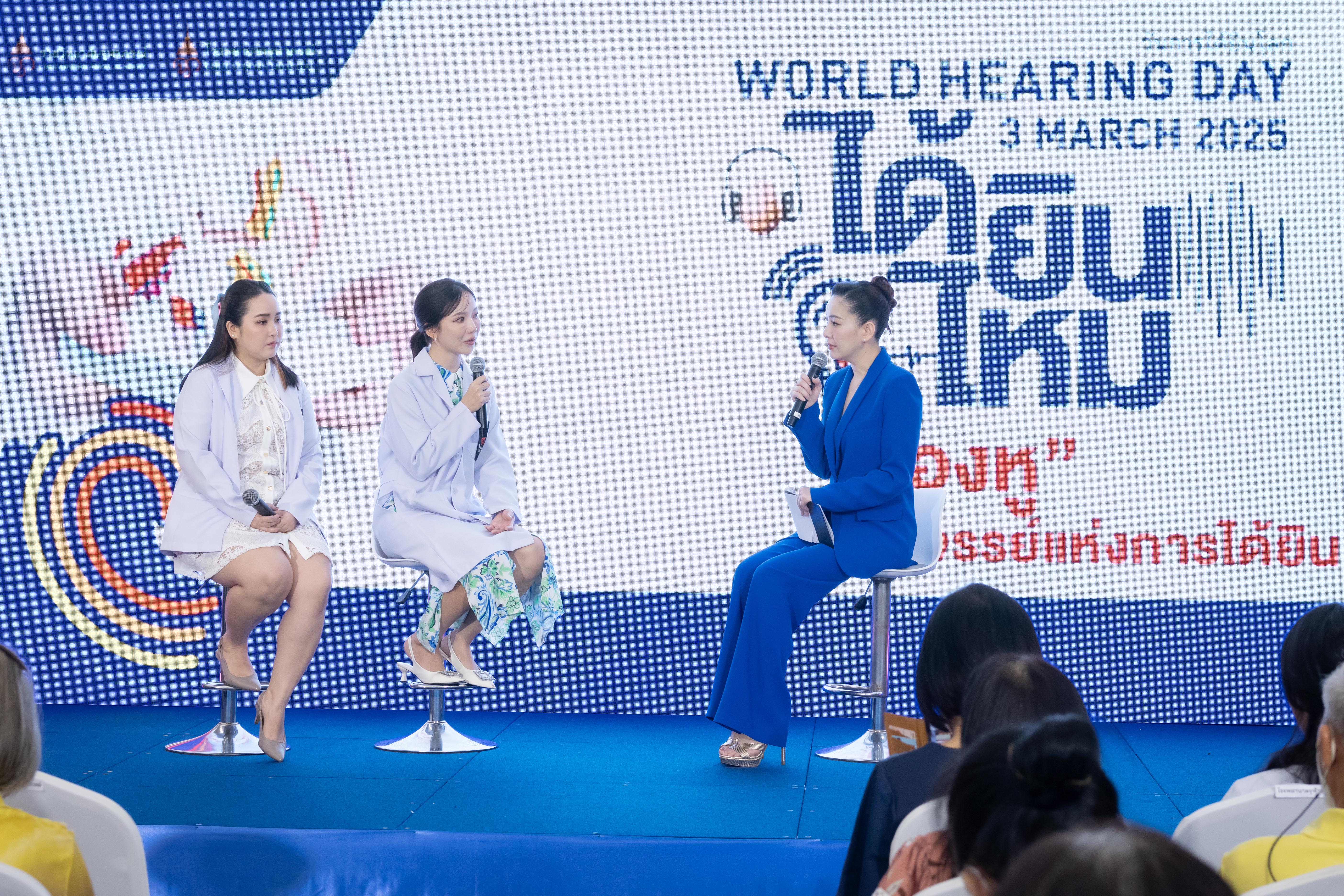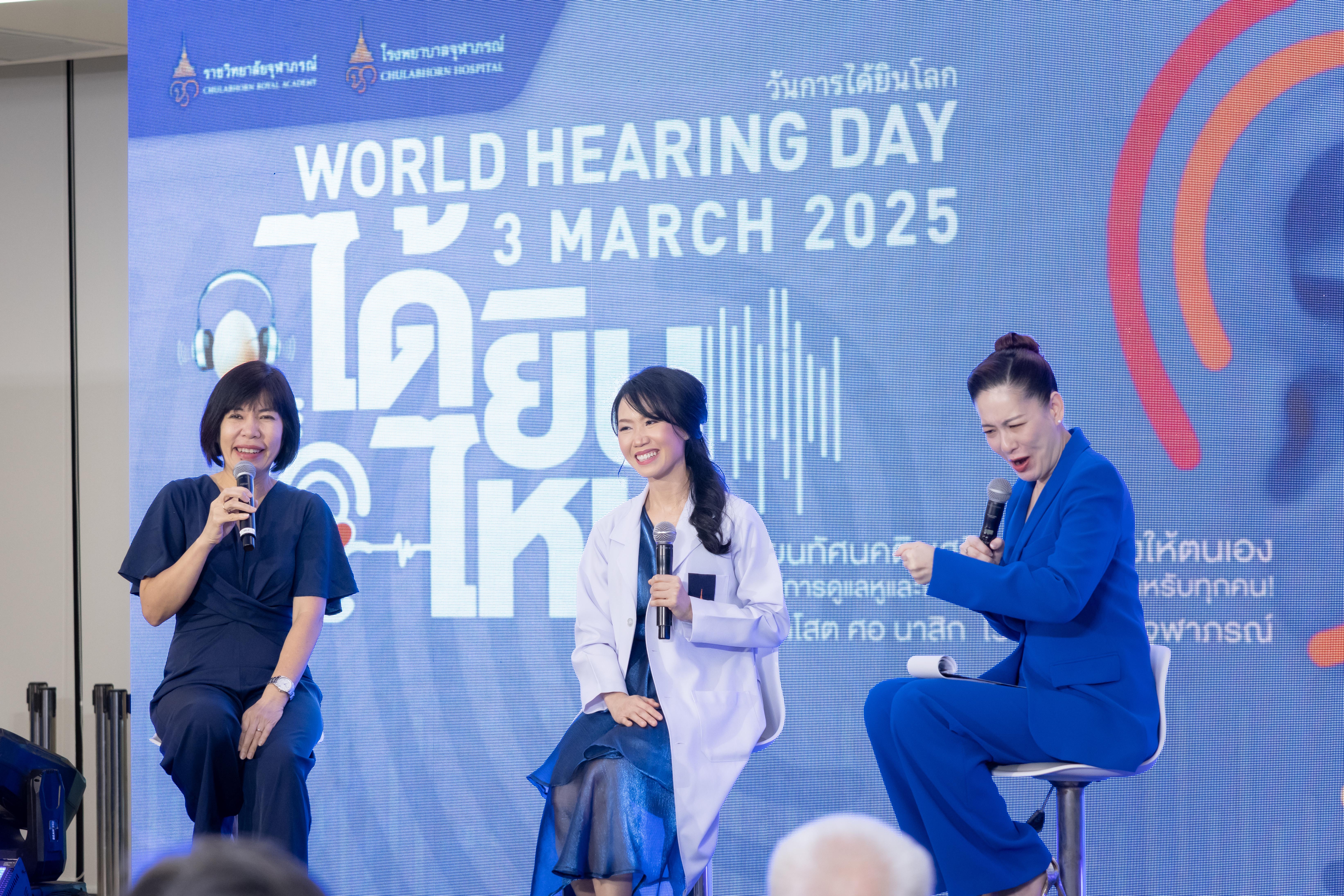 3 มีนาคม 2568 : โรงพยาบาลจุฬาภรณ์ ราชวิทยาลัยจุฬาภรณ์ จัดกิจกรรมรณรงค์สร้างความตระหนักรู้ส่งเสริมการดูแลสุขภาพหู เนื่องในวันการได้ยินโลก World Hearing Day 2025 ภายใต้ธีม Changing Mindsets : Empower Yourself Make ear and hearing care a reality for all “ เปลี่ยนทัศนคติ ร่วมสร้างพลังให้ตนเองเพื่อให้การดูแลหูและการได้ยินเป็นจริงสำหรับทุกคน ” โดยทีมแพทย์เฉพาะทางโสต ศอ นาสิก โรงพยาบาลจุฬาภรณ์และนักเวชศาสตร์การสื่อความหมาย ร่วมเสวนาให้ความรู้ด้านการดูแลสุขภาพหูและการได้ยิน ในหัวข้อ เพราะการได้ยินมีความสำคัญต่อการดำเนินชีวิตในทุกช่วงวัย “รักษ์หู….ใส่ใจการได้ยิน” นำโดย พญ.พิลาสลักษณ์ นำชัยชนะกิจ หัวหน้างานโสต ศอ นาสิก โรงพยาบาลจุฬาภรณ์ พญ.วิชชุดา เทียมพยุหา แพทย์เฉพาะทางด้านโสตประสาทการได้ยินและการทรงตัว พร้อมด้วยคุณพิมพิมล สีแสงหน่อม นักเวชศาสตร์การสื่อความหมาย ร่วมเวทีเสวนาและเติมพลังบวกพร้อมแง่คิดดี ๆ กับและแขกรับเชิญพิเศษ “ดีเจพี่อ้อย นภาพร ไตรวิทย์วารีกุล” ผู้ดูแลหัวใจของสังคมแห่ง Club Friday กับช่วงเสวนา Changing Mindsets เปิดใจรับฟัง “เข้าใจ….ต่างวัย” นอกจากนี้ ยังมีบูธกิจกรรมจากทางโรงพยาบาลจุฬาภรณ์มาให้บริการ อาทิ บริการให้คำปรึกษาโดยทีมแพทย์เฉพาะทางด้านมะเร็งศีรษะและลำคอ โรงพยาบาลจุฬาภรณ์ นำโดย นพ.สิรวิชญ์ ศิริรัตน์ พญ.ชญานิน เรือนแป้น และ พญ.ธณิอร ศุภนิตย์ บริการนัดหมายสำหรับผู้ที่มีความประสงค์จะเข้ารับการตรวจรักษา ชมนิทรรศการ “น้องหู” ชวนทำความรู้จักกับกายวิภาคหู สรีรวิทยาของหู และบูธกิจกรรมตอบคำถามชิงรางวัลภายในงาน โดยมี รศ.พญ.ชนิสา โชติพานิช รองผู้อำนวยการโรงพยาบาลจุฬาภรณ์ เป็นประธานเปิดงาน ดำเนินรายการโดยคุณได๋ ไดอาน่า จงจินตนาการ ณ ชั้น 1 อาคารโรงพยาบาลจุฬาภรณ์ ขนาด 400 เตียง เขตหลักสี่ กรุงเทพมหานคร