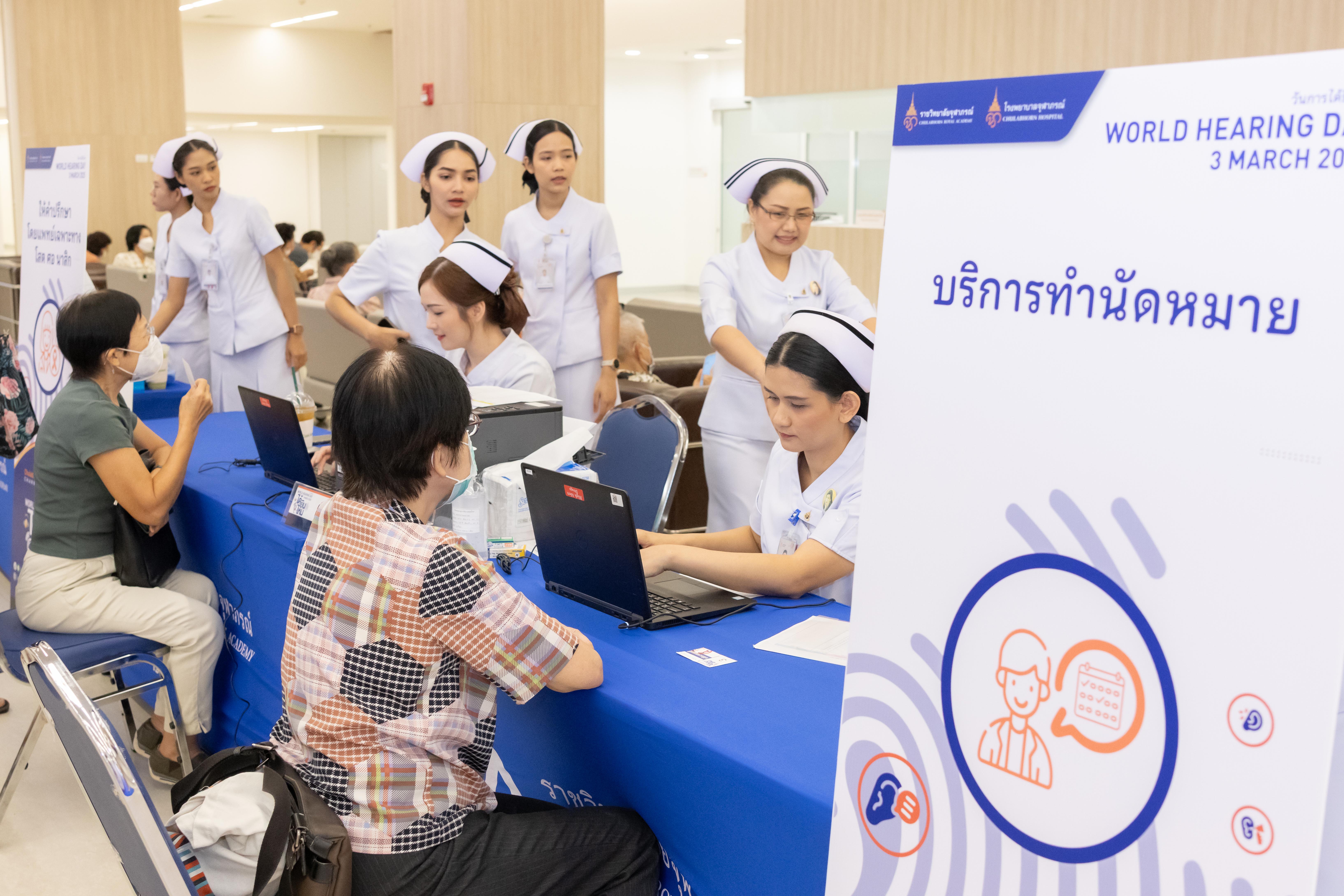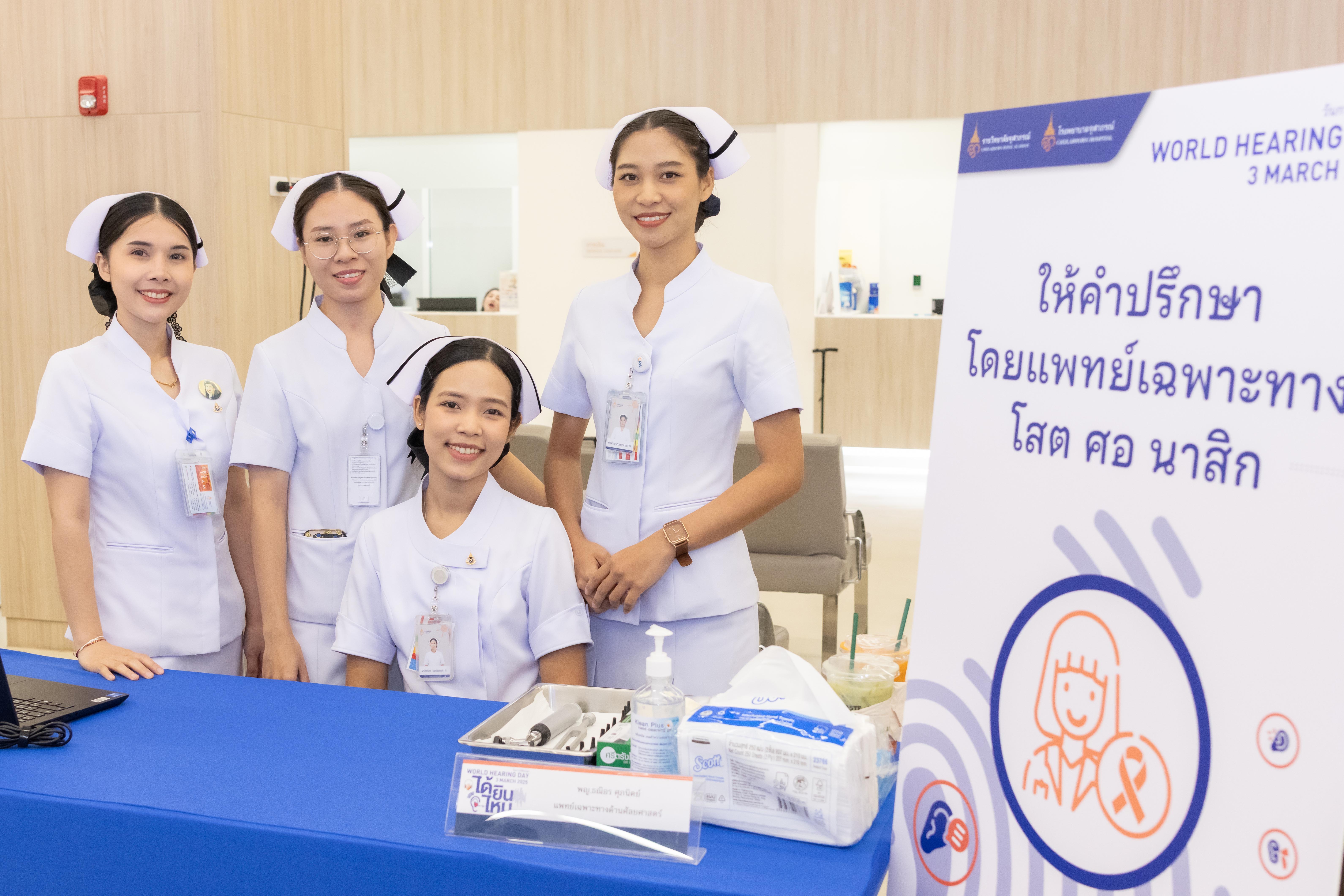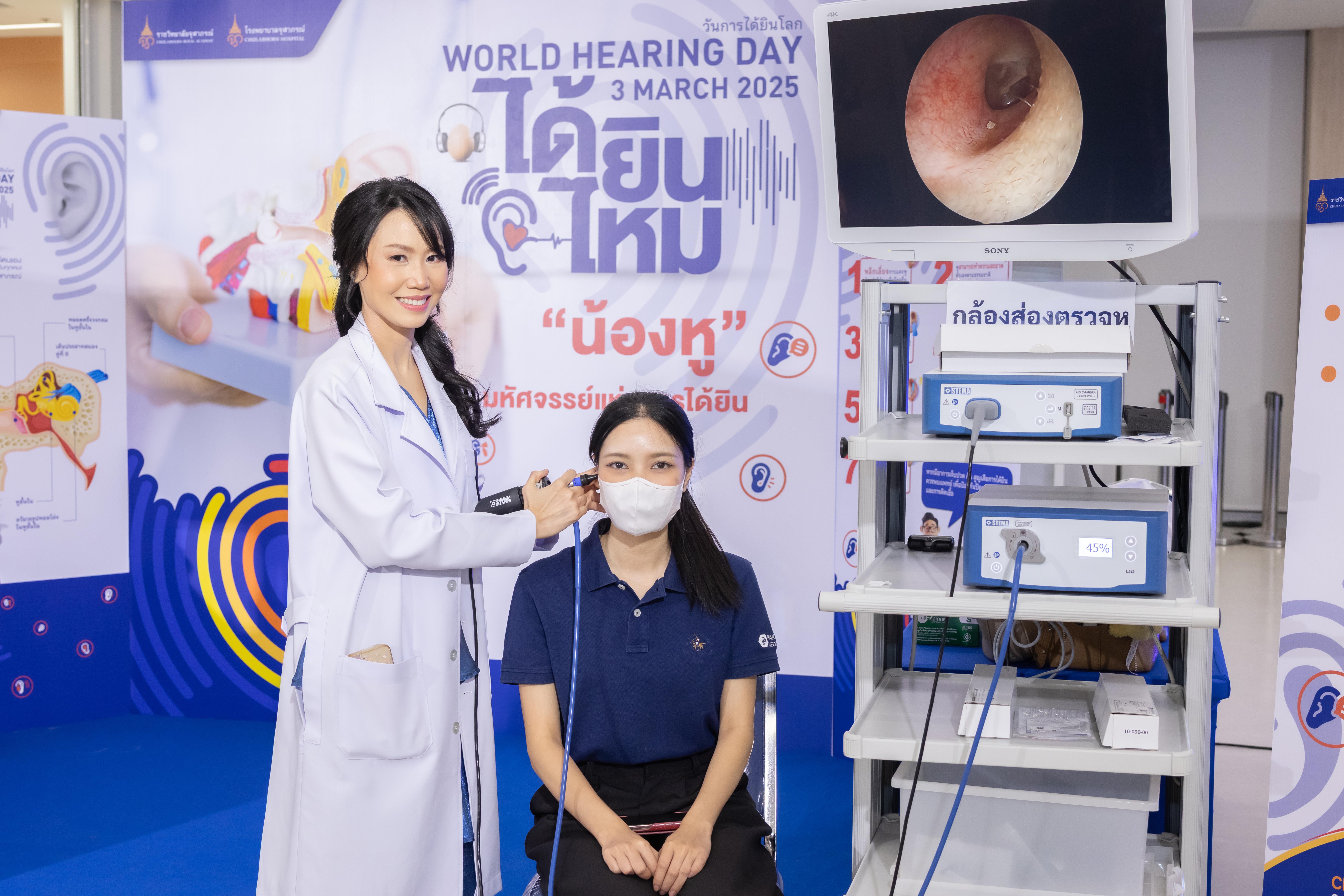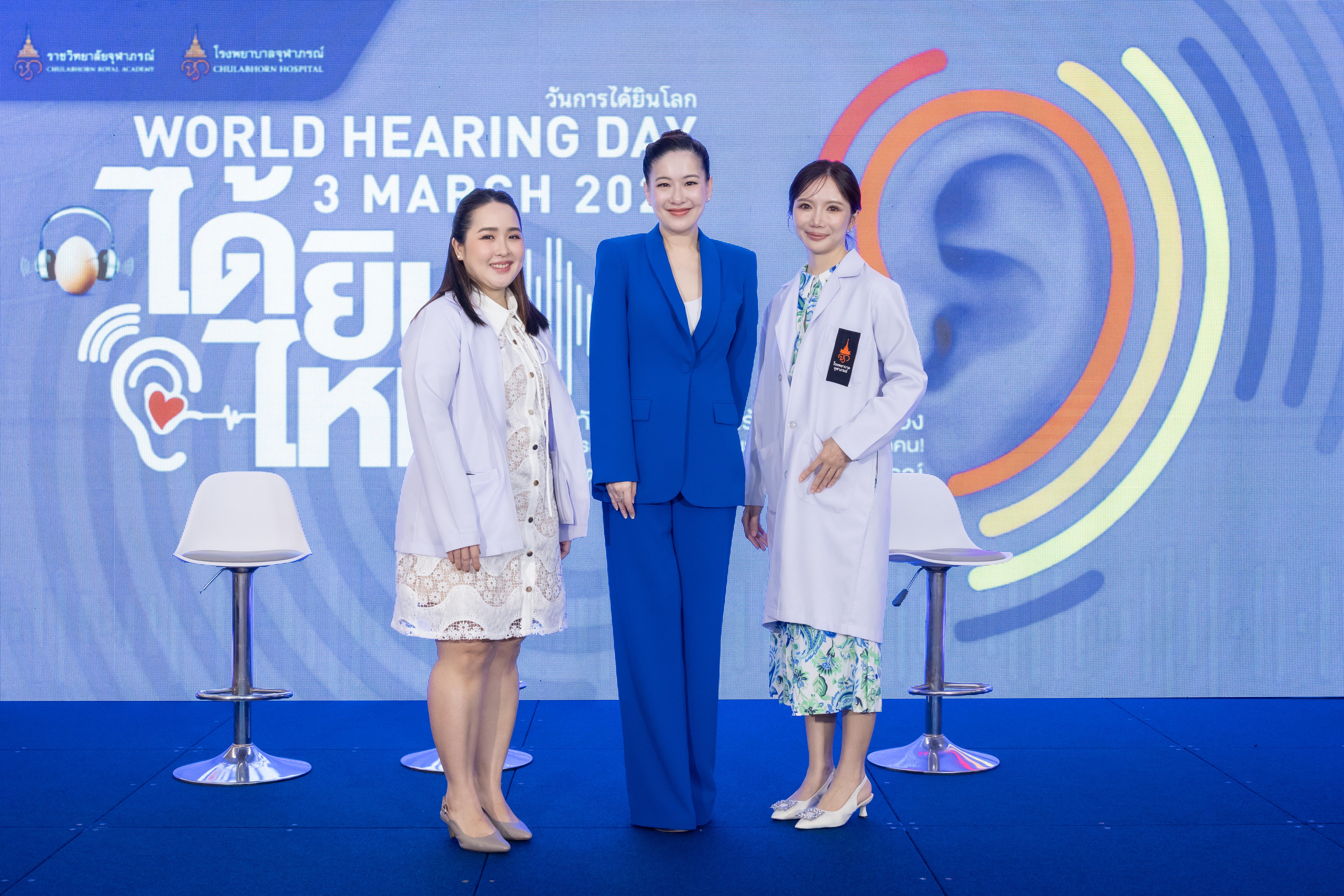 3 มีนาคม 2568 : โรงพยาบาลจุฬาภรณ์ ราชวิทยาลัยจุฬาภรณ์ จัดกิจกรรมรณรงค์สร้างความตระหนักรู้ส่งเสริมการดูแลสุขภาพหู เนื่องในวันการได้ยินโลก World Hearing Day 2025 ภายใต้ธีม Changing Mindsets : Empower Yourself Make ear and hearing care a reality for all “ เปลี่ยนทัศนคติ ร่วมสร้างพลังให้ตนเองเพื่อให้การดูแลหูและการได้ยินเป็นจริงสำหรับทุกคน ” โดยทีมแพทย์เฉพาะทางโสต ศอ นาสิก โรงพยาบาลจุฬาภรณ์และนักเวชศาสตร์การสื่อความหมาย ร่วมเสวนาให้ความรู้ด้านการดูแลสุขภาพหูและการได้ยิน ในหัวข้อ เพราะการได้ยินมีความสำคัญต่อการดำเนินชีวิตในทุกช่วงวัย “รักษ์หู….ใส่ใจการได้ยิน” นำโดย พญ.พิลาสลักษณ์ นำชัยชนะกิจ หัวหน้างานโสต ศอ นาสิก โรงพยาบาลจุฬาภรณ์ พญ.วิชชุดา เทียมพยุหา แพทย์เฉพาะทางด้านโสตประสาทการได้ยินและการทรงตัว พร้อมด้วยคุณพิมพิมล สีแสงหน่อม นักเวชศาสตร์การสื่อความหมาย ร่วมเวทีเสวนาและเติมพลังบวกพร้อมแง่คิดดี ๆ กับและแขกรับเชิญพิเศษ “ดีเจพี่อ้อย นภาพร ไตรวิทย์วารีกุล” ผู้ดูแลหัวใจของสังคมแห่ง Club Friday กับช่วงเสวนา Changing Mindsets เปิดใจรับฟัง “เข้าใจ….ต่างวัย” นอกจากนี้ ยังมีบูธกิจกรรมจากทางโรงพยาบาลจุฬาภรณ์มาให้บริการ อาทิ บริการให้คำปรึกษาโดยทีมแพทย์เฉพาะทางด้านมะเร็งศีรษะและลำคอ โรงพยาบาลจุฬาภรณ์ นำโดย นพ.สิรวิชญ์ ศิริรัตน์ พญ.ชญานิน เรือนแป้น และ พญ.ธณิอร ศุภนิตย์ บริการนัดหมายสำหรับผู้ที่มีความประสงค์จะเข้ารับการตรวจรักษา ชมนิทรรศการ “น้องหู” ชวนทำความรู้จักกับกายวิภาคหู สรีรวิทยาของหู และบูธกิจกรรมตอบคำถามชิงรางวัลภายในงาน โดยมี รศ.พญ.ชนิสา โชติพานิช รองผู้อำนวยการโรงพยาบาลจุฬาภรณ์ เป็นประธานเปิดงาน ดำเนินรายการโดยคุณได๋ ไดอาน่า จงจินตนาการ ณ ชั้น 1 อาคารโรงพยาบาลจุฬาภรณ์ ขนาด 400 เตียง เขตหลักสี่ กรุงเทพมหานคร