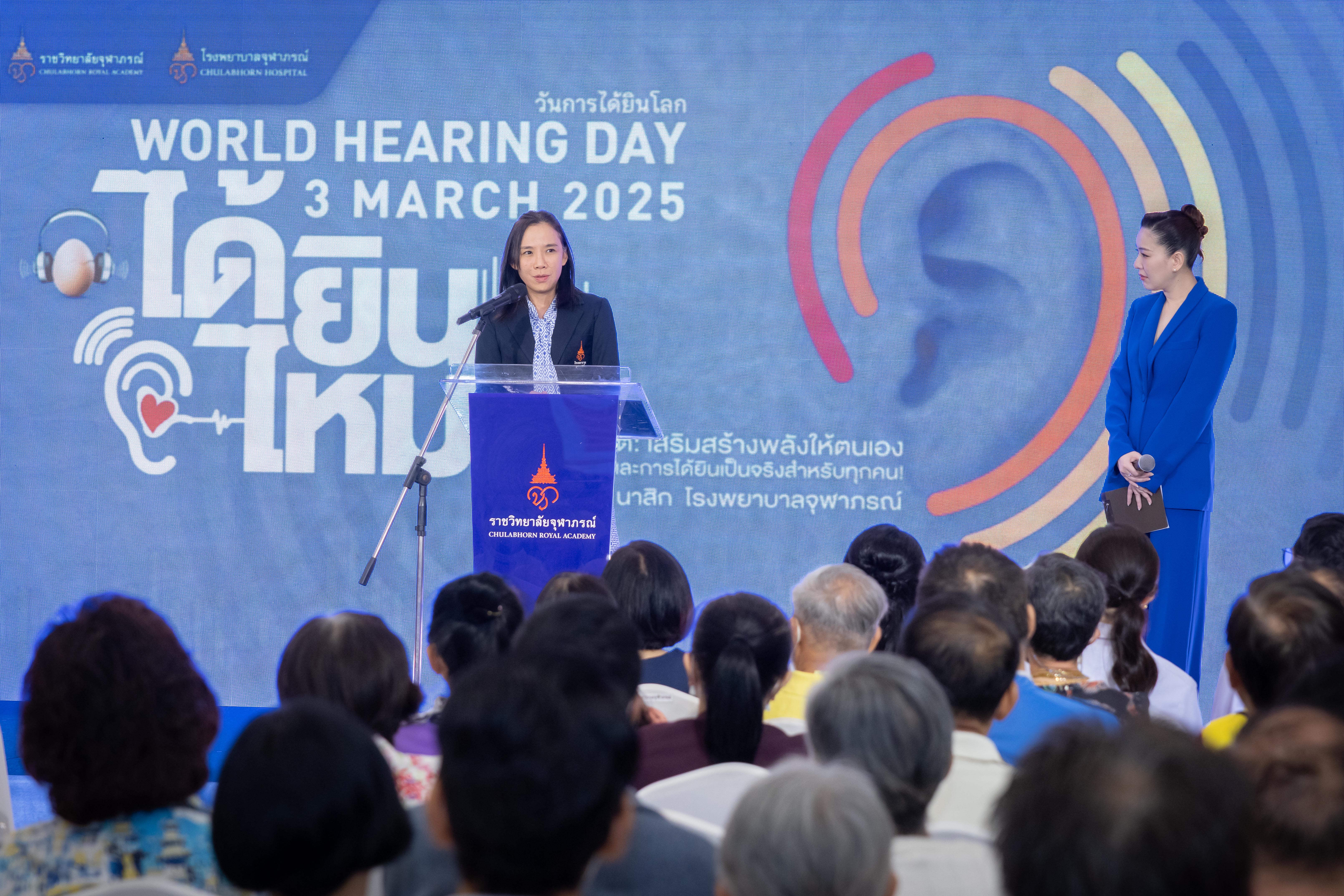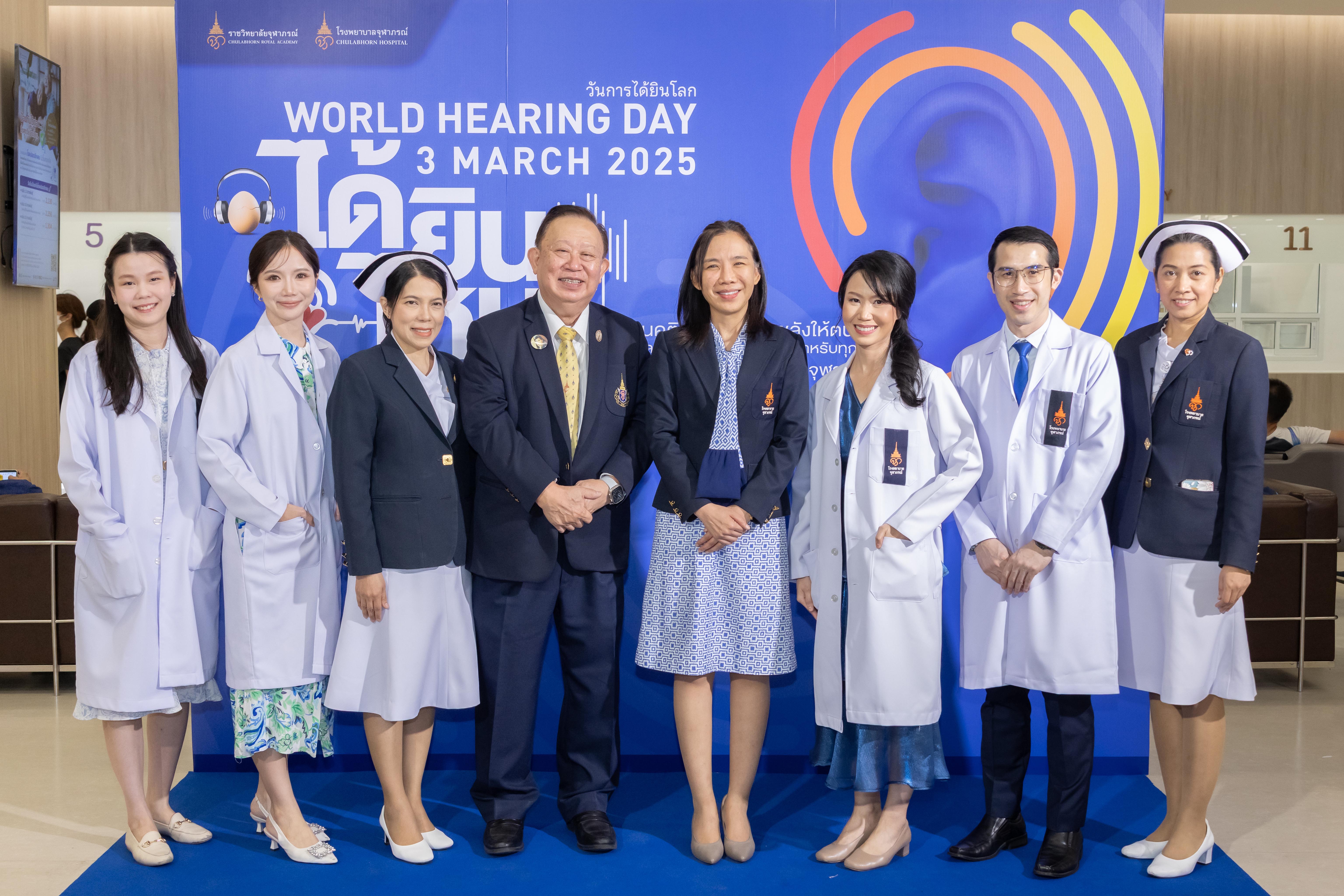 รศ.พญ.ชนิสาโชติพานิช รองผู้อำนวยการโรงพยาบาลจุฬาภรณ์ กล่าวว่า “ ราชวิทยาลัยจุฬาภรณ์ เป็นสถาบันการศึกษาวิจัยและสถาบันการแพทย์ มีพันธกิจในด้านบริการวิชาการและวิชาชีพด้านสุขภาพแก่สังคม โดยมีโรงพยาบาลจุฬาภรณ์ เป็นส่วนงานหลักในการให้บริการรักษาพยาบาลแก่ประชาชน กิจกรรมครั้งนี้ จัดขึ้นเพื่อส่งเสริมให้ความรู้และการดูแลเชิงป้องกัน รวมถึงกระตุ้นให้ทุกคนตระหนักถึงความสำคัญของการดูแลสุขภาพหูและการได้ยิน ตลอดจนสามารถเข้าถึงการรักษาที่มีคุณภาพและได้มาตรฐานอย่างเท่าเทียม ตามพระปณิธานของศาสตราจารย์ ดร. สมเด็จพระเจ้าน้องนางเธอ เจ้าฟ้าจุฬาภรณวลัยลักษณ์ อัครราชกุมารี กรมพระศรีสวางควัฒน วรขัตติยราชนารี องค์ประธานและนายกสภาราชวิทยาลัยจุฬาภรณ์และองค์ประธานผู้ทรงจัดตั้งโรงพยาบาลจุฬาภรณ์ ทั้งนี้ องค์การอนามัยโลก (WHO) ได้กำหนดให้ในวันที่ 3 มีนาคมของทุกปีเป็นวันการได้ยินโลก เพื่อรณรงค์สร้างความตระหนักรู้เกี่ยวกับวิธีป้องกันความพิการทางหูและการสูญเสียการได้ยิน ตลอดจนส่งเสริมการดูแลหูและการได้ยินทั่วโลก โดยธีมในปี 2025 มุ่งเน้นการเปลี่ยนแปลงทัศนคติเกี่ยวกับการดูแลหูและการได้ยิน โดยมุ่งหวังให้ผู้คนร่วมเสริมสร้างพลังให้ตนเองและผู้อื่นมีสุขภาพหูที่ดี ภายใต้ธีม Changing Mindsets : Empower Yourself Make ear and hearing care a reality for all “การเปลี่ยนทัศนคติ : เสริมสร้างพลังให้ตนเองเพื่อให้การดูแลหูและการได้ยินเป็นจริงสำหรับทุกคน!” โดยมีเป้าหมายเพื่อกระตุ้นให้ทุกคนตระหนักถึงความสำคัญของสุขภาพหูและการได้ยิน และเพื่อสร้างแรงบันดาลใจให้ทุกคนเปลี่ยนพฤติกรรมเพื่อปกป้องการได้ยินจากเสียงดังและป้องกันการสูญเสียการได้ยิน พร้อมทั้งหมั่นตรวจสอบการได้ยินเป็นประจำ ”