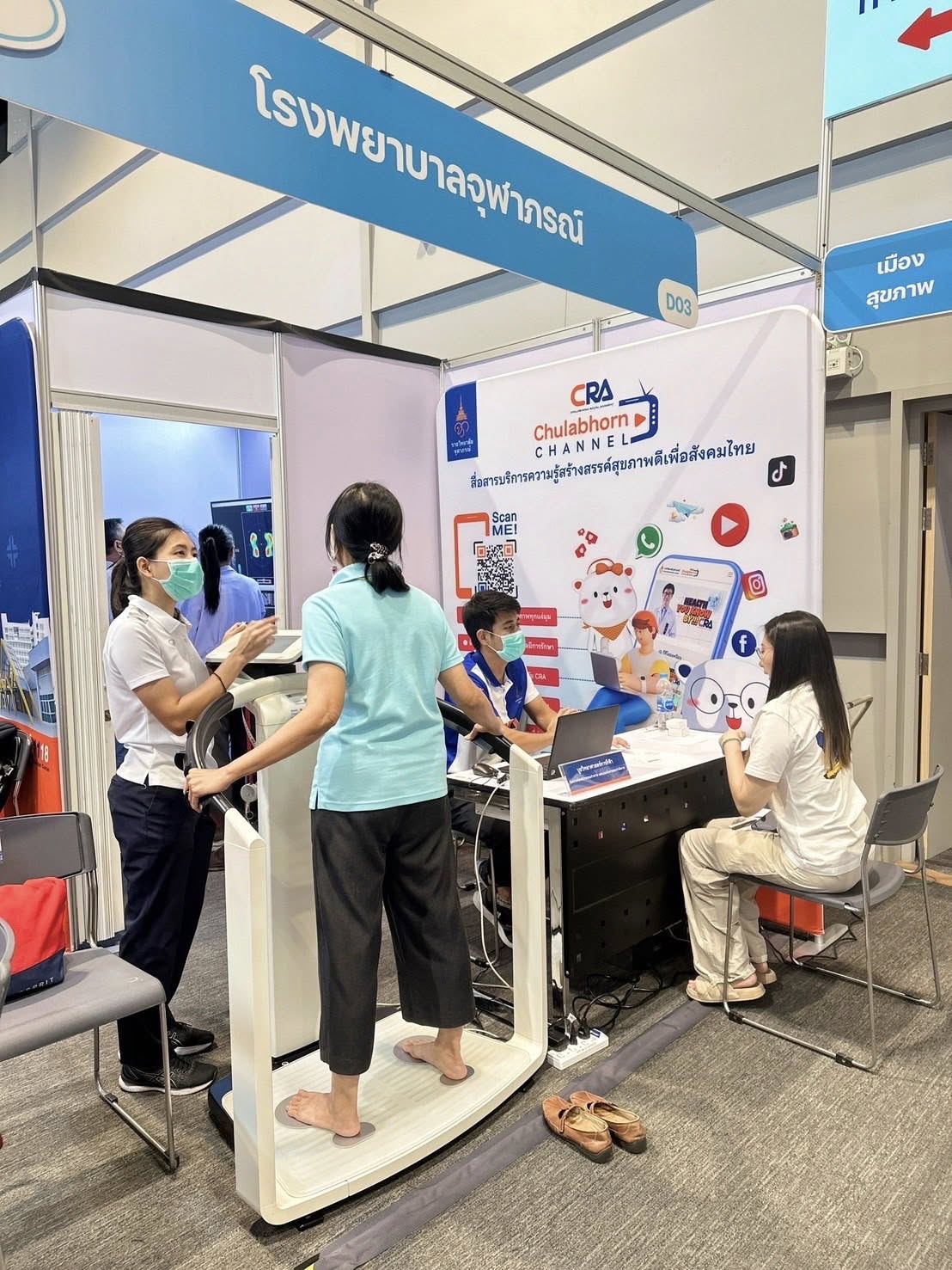 โรงพยาบาลจุฬาภรณ์ ราชวิทยาลัยจุฬาภรณ์ เข้าร่วมให้บริการตรวจวิเคราะห์องค์ประกอบร่างกาย แนะนำการออกกำลังกาย และตรวจการลงน้ำหนักฝ่าเท้า แนะนำการเลือกรองเท้า โดยนักวิทยาศาสตร์การกีฬาและนักกายอุปกรณ์ บริการแก่ประชาชนในงาน “Thailand Healthcare 2025 A Better Life : สร้างสุขทุกช่วงวัย มหกรรมงานแฟร์ด้านสุขภาพ” จัดโดยเครือมติชนและองค์กรด้านสุขภาพทั้งภาครัฐและเอกชน ระหว่างวันที่ 28 – 29 มิถุนายน 2568 ณ ชั้น 5 ศูนย์การค้าสามย่านมิตรทาวน์ กรุงเทพฯ