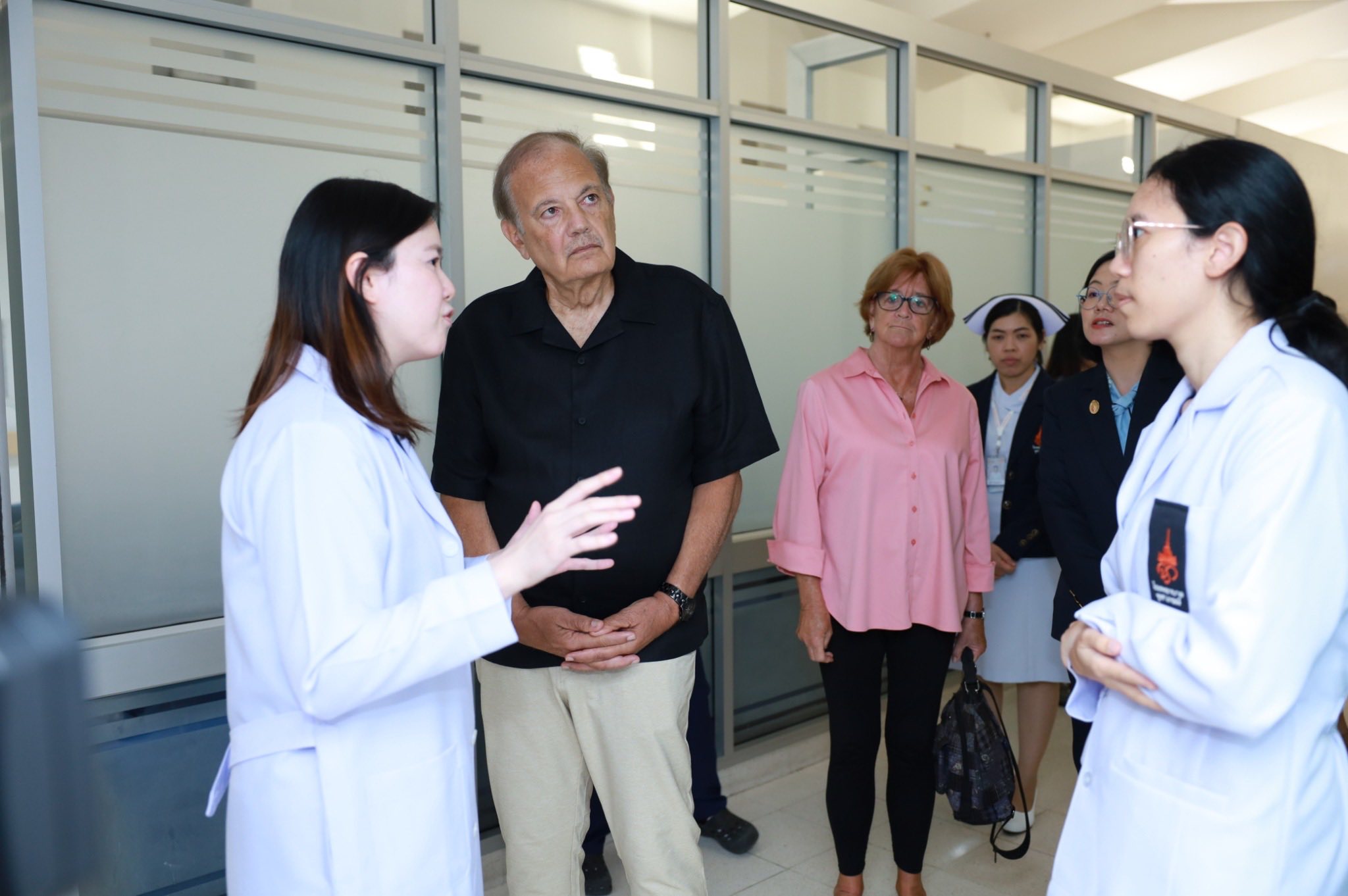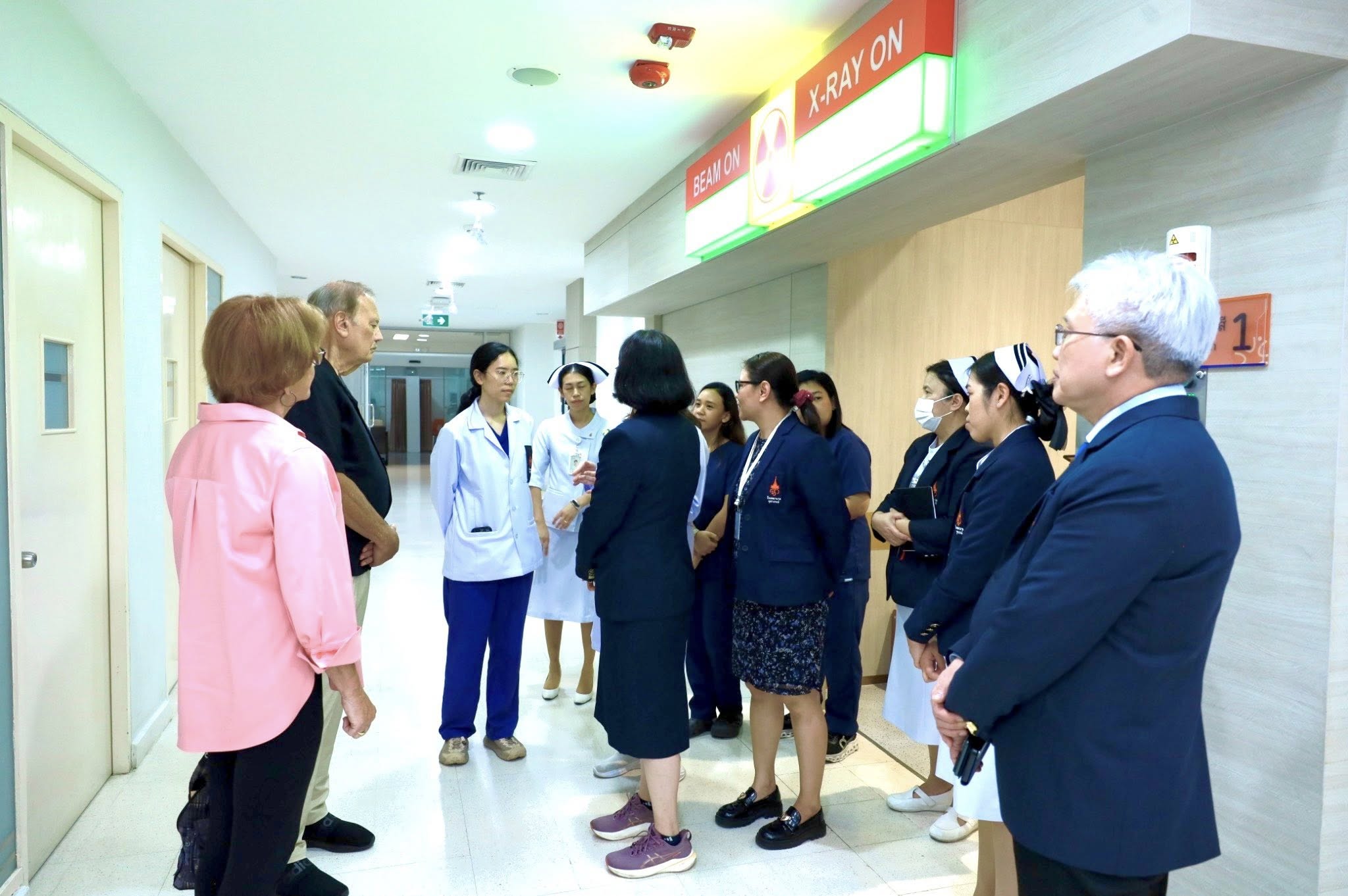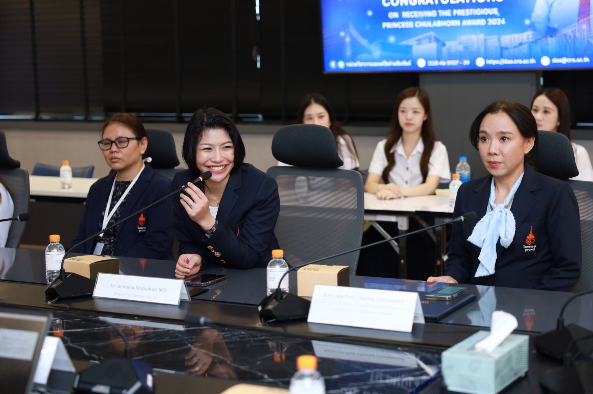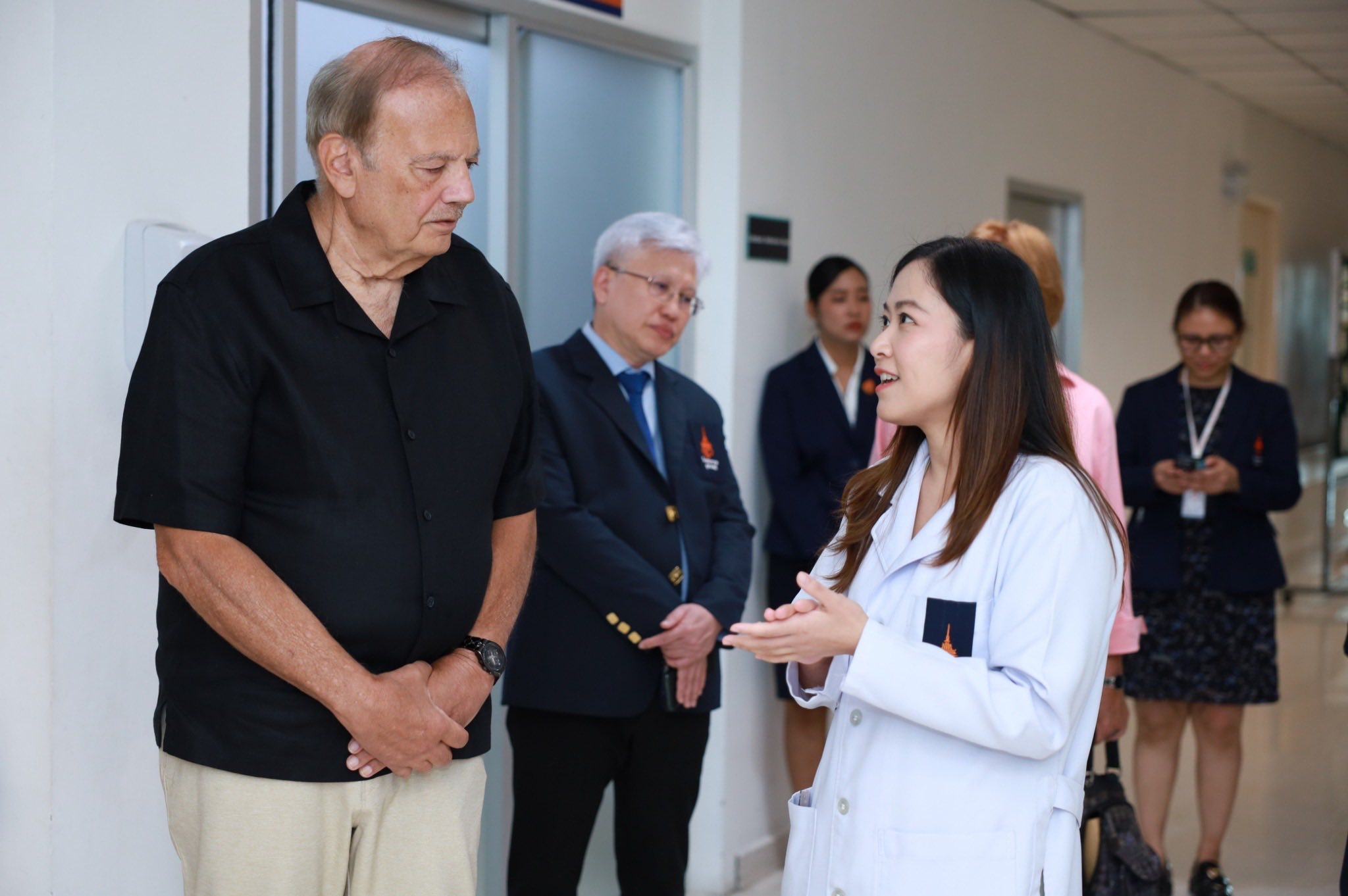 โอกาสนี้ รองศาสตราจารย์ นายแพทย์สุรศักดิ์ ลีลาอุดมลิปิ รักษาการผู้อำนวยการโรงพยาบาลจุฬาภรณ์ ได้กล่าวต้อนรับและแสดงความยินดีอย่างเป็นทางการ เพื่อเป็นเกียรติแก่ผู้ได้รับพระราชทานรางวัลฯ ในปีนี้ หลังจากนั้น นำชมวีดิทัศน์แนะนำราชวิทยาลัยจุฬาภรณ์และการให้บริการทางการแพทย์ของโรงพยาบาลจุฬาภรณ์ พร้อมรับฟังการนำเสนอข้อมูลงานวิจัยทางคลินิก/การแปลงผลงานวิจัยด้านมะเร็งเต้านม : ความท้าทาย และแนวโน้มในอนาคต โดย ผู้ช่วยศาสตราจารย์ปฏิบัติการ แพทย์หญิงอัจฉรา สุภาวเวช หัวหน้างานอายุรกรรมมะเร็งวิทยา , นางสาวกานต์ธิดา แจ้งยุบล นักวิทยาศาสตร์ งานห้องปฏิบัติการวิจัยโครโมโซม , ดร.ทิวารัตน์ สินธุวิวัฒน์ นักวิจัย งานห้องปฏิบัติการวิจัยโครโมโซม, ดร.ปริยวุฒิ เหราบัตย์ รักษาการหัวหน้างานห้องปฏิบัติการวิจัยโครโมโซม , ดร.ปิติทัศน์ ปูรณโชติ อาจารย์ สำนักวิชาการและวิจัยบูรณาการ คณะแพทยศาสตร์ศรีสวางควัฒน , ดร.หัฏฐะภาคย์ เดชะไกศยะ อาจารย์ สำนักวิชาการและวิจัยบูรณาการ คณะแพทยศาสตร์ศรีสวางควัฒน และ แพทย์หญิงฐิติพร วรรณศรี แพทย์ผู้เชี่ยวชาญสาขาศัลยศาสตร์เต้านมและศัลยศาสตร์มะเร็งวิทยา ภายหลังเสร็จสิ้นการนำเสนอได้นำเยี่ยมชมหน่วยบริการทางการแพทย์ของโรงพยาบาลจุฬาภรณ์ เริ่มจากหน่วยโลหิตวิทยาและเซลล์บำบัด ชั้น ๙ โดยมี แพทย์หญิงเอมวิภา ลือประสิทธิ์สกุล หัวหน้างานอายุรกรรมโลหิตวิทยา และ นางปัญจภัสร์ สกุลระพีวิชญ์ หัวหน้าหอผู้ป่วย 9A ให้การต้อนรับ หน่วยเคมีบำบัด(ชั้น ๓) โดยมี แพทย์หญิงจอมธนา ศิริไพบูลย์ ผู้อำนวยการศูนย์มะเร็งวิทยา โรงพยาบาลจุฬาภรณ์ และ นางสาวธนัชพร ปรางจันทร์ หัวหน้าหน่วยพยาบาลเคมีบำบัดและการดูแลระยะสั้นให้ข้อมูลเกี่ยวกับการดูแลผู้ป่วย และหน่วยรังสีรักษามะเร็งวิทยา(ชั้น B1) โดยมีแพทย์หญิงกัญญานีย์ แลบัว หัวหน้างานรังสีรักษามะเร็งวิทยา , แพทย์หญิงรูจา วิจิตเวชไพศาล แพทย์ผู้เชี่ยวชาญสาขารังสีรักษาและมะเร็งวิทยา , นางสาวภัทรกันย์ สุวรรณบุตร นักฟิสิกส์การแพทย์ , นางสาวบัวลูกแก้ว ศักดิ์ชัชวาล นักรังสีการแพทย์ และ คุณนุจรี เพชรแอน หัวหน้าหน่วยพยาบาลรังสีรักษามะเร็งวิทยา ร่วมบรรยายและให้ข้อมูลการปฏิบัติงานเชิงลึกการเยี่ยมชมในครั้งนี้นับเป็นโอกาสสำคัญในการแลกเปลี่ยนองค์ความรู้ทางคลินิกระหว่างนักวิจัยและบุคลากรการแพทย์ระดับนานาชาติ ซึ่งจะนำไปสู่การต่อยอดนวัตกรรมทางการแพทย์ เพื่อยกระดับคุณภาพชีวิตของประชาชนไทยและประชาคมโลกอย่างยั่งยืน ![]()