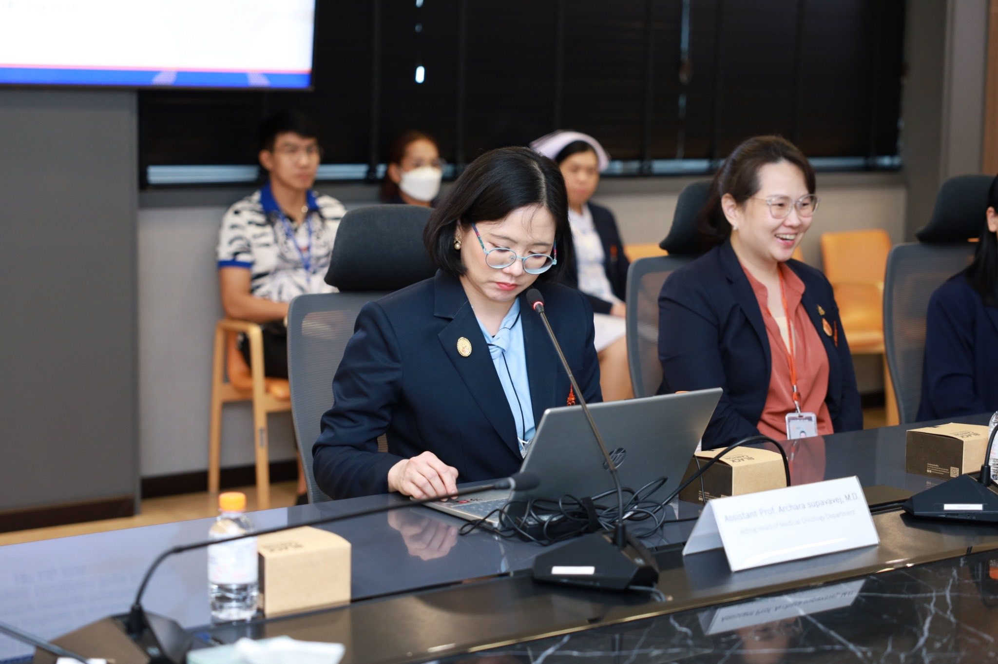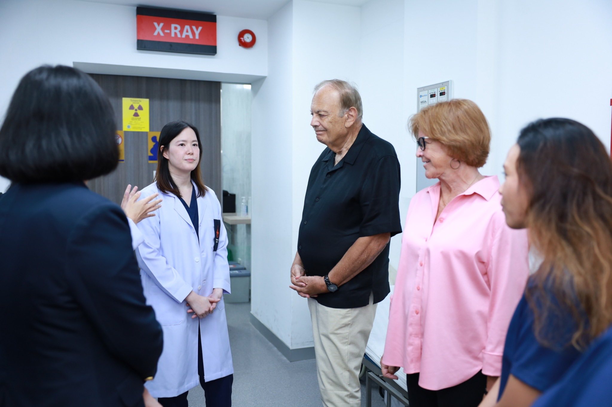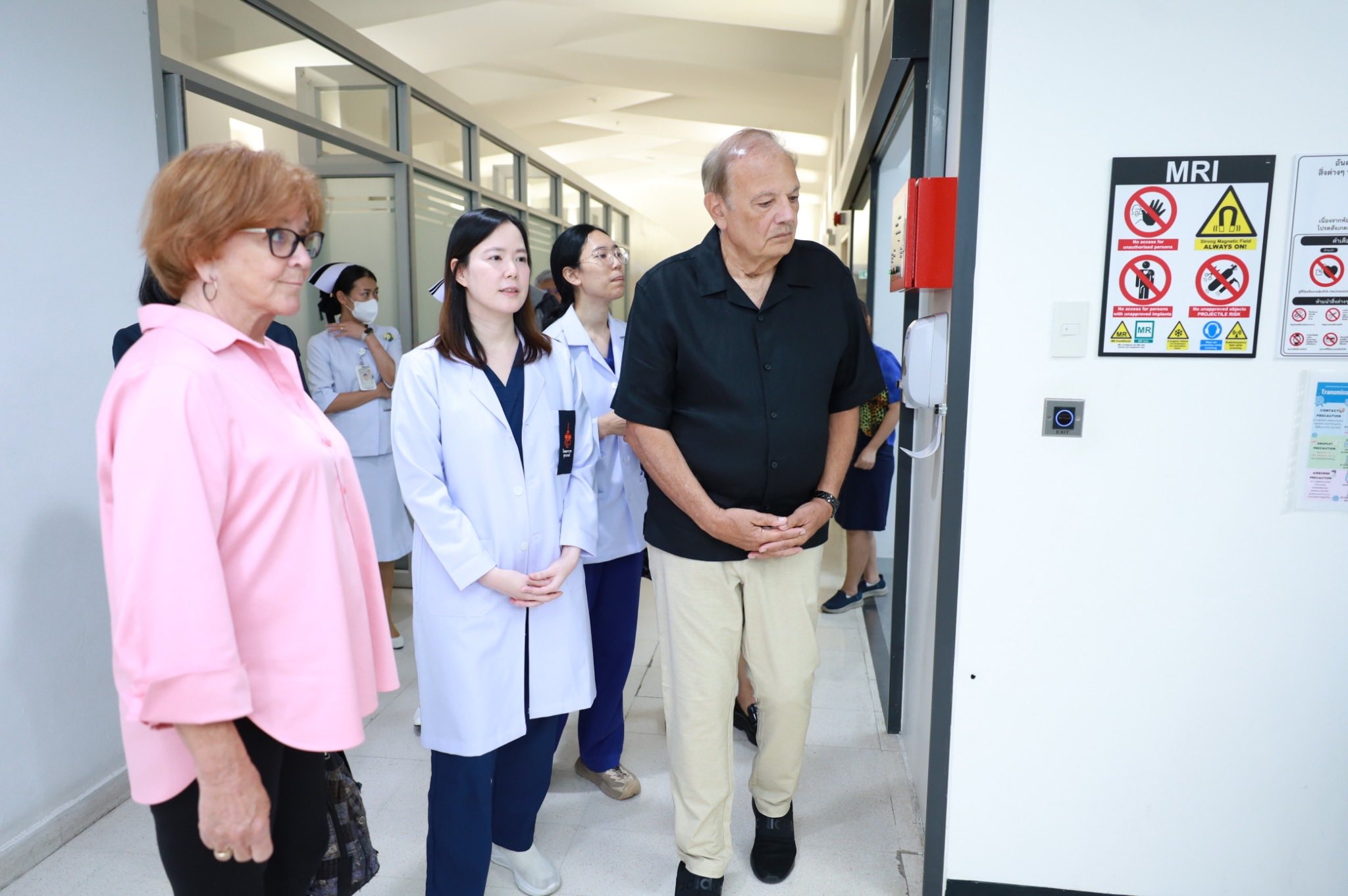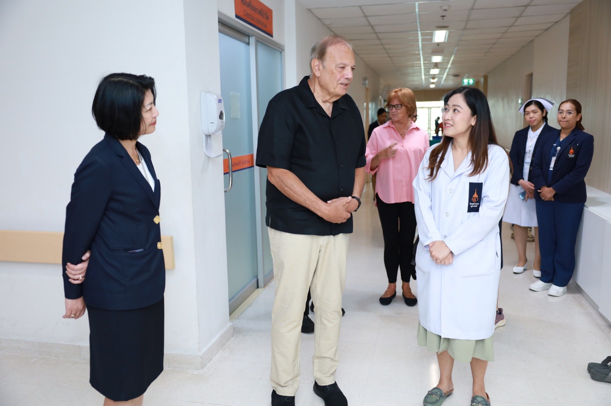 โอกาสนี้ รองศาสตราจารย์ นายแพทย์สุรศักดิ์ ลีลาอุดมลิปิ รักษาการผู้อำนวยการโรงพยาบาลจุฬาภรณ์ ได้กล่าวต้อนรับและแสดงความยินดีอย่างเป็นทางการ เพื่อเป็นเกียรติแก่ผู้ได้รับพระราชทานรางวัลฯ ในปีนี้ หลังจากนั้น นำชมวีดิทัศน์แนะนำราชวิทยาลัยจุฬาภรณ์และการให้บริการทางการแพทย์ของโรงพยาบาลจุฬาภรณ์ พร้อมรับฟังการนำเสนอข้อมูลงานวิจัยทางคลินิก/การแปลงผลงานวิจัยด้านมะเร็งเต้านม : ความท้าทาย และแนวโน้มในอนาคต โดย ผู้ช่วยศาสตราจารย์ปฏิบัติการ แพทย์หญิงอัจฉรา สุภาวเวช หัวหน้างานอายุรกรรมมะเร็งวิทยา , นางสาวกานต์ธิดา แจ้งยุบล นักวิทยาศาสตร์ งานห้องปฏิบัติการวิจัยโครโมโซม , ดร.ทิวารัตน์ สินธุวิวัฒน์ นักวิจัย งานห้องปฏิบัติการวิจัยโครโมโซม, ดร.ปริยวุฒิ เหราบัตย์ รักษาการหัวหน้างานห้องปฏิบัติการวิจัยโครโมโซม , ดร.ปิติทัศน์ ปูรณโชติ อาจารย์ สำนักวิชาการและวิจัยบูรณาการ คณะแพทยศาสตร์ศรีสวางควัฒน , ดร.หัฏฐะภาคย์ เดชะไกศยะ อาจารย์ สำนักวิชาการและวิจัยบูรณาการ คณะแพทยศาสตร์ศรีสวางควัฒน และ แพทย์หญิงฐิติพร วรรณศรี แพทย์ผู้เชี่ยวชาญสาขาศัลยศาสตร์เต้านมและศัลยศาสตร์มะเร็งวิทยา ภายหลังเสร็จสิ้นการนำเสนอได้นำเยี่ยมชมหน่วยบริการทางการแพทย์ของโรงพยาบาลจุฬาภรณ์ เริ่มจากหน่วยโลหิตวิทยาและเซลล์บำบัด ชั้น ๙ โดยมี แพทย์หญิงเอมวิภา ลือประสิทธิ์สกุล หัวหน้างานอายุรกรรมโลหิตวิทยา และ นางปัญจภัสร์ สกุลระพีวิชญ์ หัวหน้าหอผู้ป่วย 9A ให้การต้อนรับ หน่วยเคมีบำบัด(ชั้น ๓) โดยมี แพทย์หญิงจอมธนา ศิริไพบูลย์ ผู้อำนวยการศูนย์มะเร็งวิทยา โรงพยาบาลจุฬาภรณ์ และ นางสาวธนัชพร ปรางจันทร์ หัวหน้าหน่วยพยาบาลเคมีบำบัดและการดูแลระยะสั้นให้ข้อมูลเกี่ยวกับการดูแลผู้ป่วย และหน่วยรังสีรักษามะเร็งวิทยา(ชั้น B1) โดยมีแพทย์หญิงกัญญานีย์ แลบัว หัวหน้างานรังสีรักษามะเร็งวิทยา , แพทย์หญิงรูจา วิจิตเวชไพศาล แพทย์ผู้เชี่ยวชาญสาขารังสีรักษาและมะเร็งวิทยา , นางสาวภัทรกันย์ สุวรรณบุตร นักฟิสิกส์การแพทย์ , นางสาวบัวลูกแก้ว ศักดิ์ชัชวาล นักรังสีการแพทย์ และ คุณนุจรี เพชรแอน หัวหน้าหน่วยพยาบาลรังสีรักษามะเร็งวิทยา ร่วมบรรยายและให้ข้อมูลการปฏิบัติงานเชิงลึกการเยี่ยมชมในครั้งนี้นับเป็นโอกาสสำคัญในการแลกเปลี่ยนองค์ความรู้ทางคลินิกระหว่างนักวิจัยและบุคลากรการแพทย์ระดับนานาชาติ ซึ่งจะนำไปสู่การต่อยอดนวัตกรรมทางการแพทย์ เพื่อยกระดับคุณภาพชีวิตของประชาชนไทยและประชาคมโลกอย่างยั่งยืน ![]()