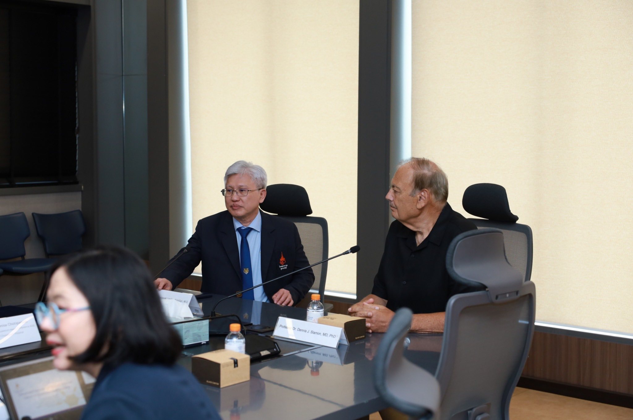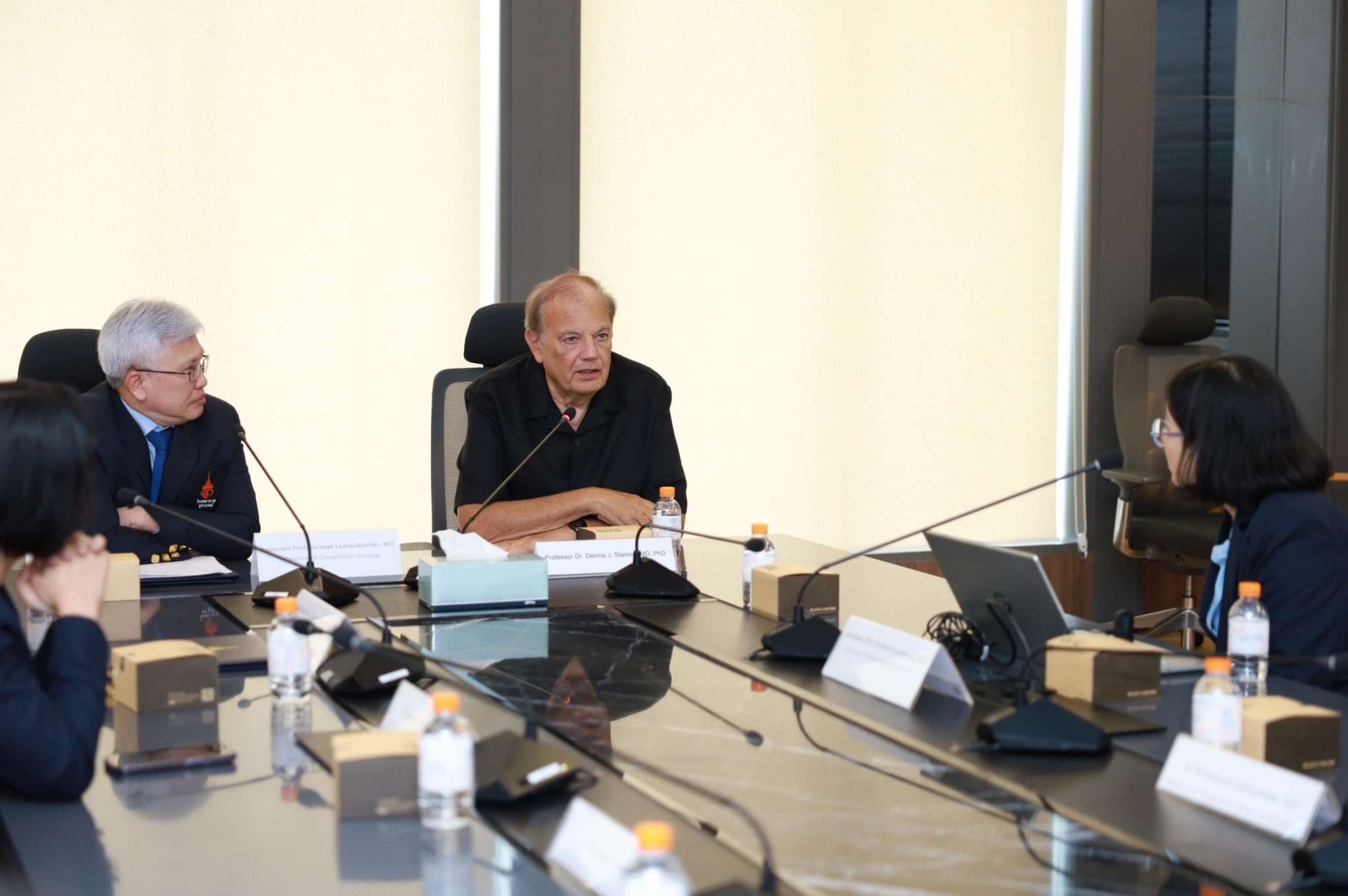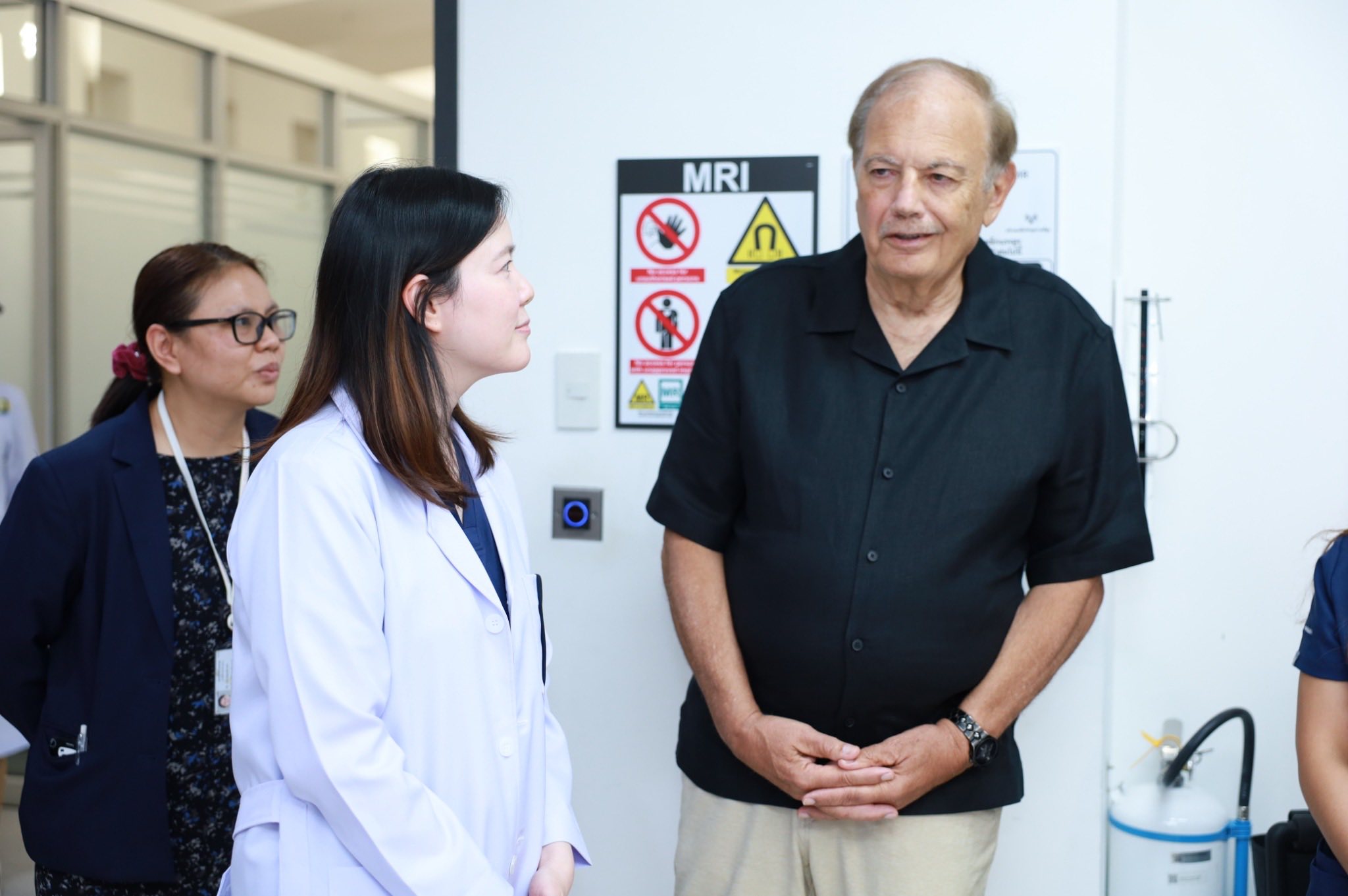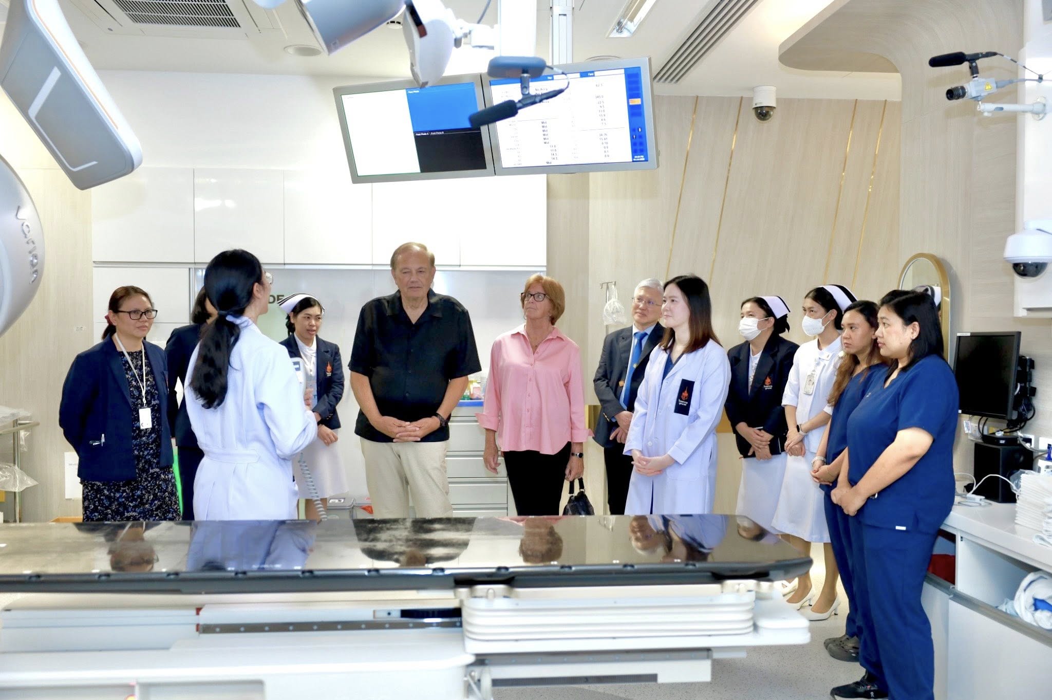 โอกาสนี้ รองศาสตราจารย์ นายแพทย์สุรศักดิ์ ลีลาอุดมลิปิ รักษาการผู้อำนวยการโรงพยาบาลจุฬาภรณ์ ได้กล่าวต้อนรับและแสดงความยินดีอย่างเป็นทางการ เพื่อเป็นเกียรติแก่ผู้ได้รับพระราชทานรางวัลฯ ในปีนี้ หลังจากนั้น นำชมวีดิทัศน์แนะนำราชวิทยาลัยจุฬาภรณ์และการให้บริการทางการแพทย์ของโรงพยาบาลจุฬาภรณ์ พร้อมรับฟังการนำเสนอข้อมูลงานวิจัยทางคลินิก/การแปลงผลงานวิจัยด้านมะเร็งเต้านม : ความท้าทาย และแนวโน้มในอนาคต โดย ผู้ช่วยศาสตราจารย์ปฏิบัติการ แพทย์หญิงอัจฉรา สุภาวเวช หัวหน้างานอายุรกรรมมะเร็งวิทยา , นางสาวกานต์ธิดา แจ้งยุบล นักวิทยาศาสตร์ งานห้องปฏิบัติการวิจัยโครโมโซม , ดร.ทิวารัตน์ สินธุวิวัฒน์ นักวิจัย งานห้องปฏิบัติการวิจัยโครโมโซม, ดร.ปริยวุฒิ เหราบัตย์ รักษาการหัวหน้างานห้องปฏิบัติการวิจัยโครโมโซม , ดร.ปิติทัศน์ ปูรณโชติ อาจารย์ สำนักวิชาการและวิจัยบูรณาการ คณะแพทยศาสตร์ศรีสวางควัฒน , ดร.หัฏฐะภาคย์ เดชะไกศยะ อาจารย์ สำนักวิชาการและวิจัยบูรณาการ คณะแพทยศาสตร์ศรีสวางควัฒน และ แพทย์หญิงฐิติพร วรรณศรี แพทย์ผู้เชี่ยวชาญสาขาศัลยศาสตร์เต้านมและศัลยศาสตร์มะเร็งวิทยา ภายหลังเสร็จสิ้นการนำเสนอได้นำเยี่ยมชมหน่วยบริการทางการแพทย์ของโรงพยาบาลจุฬาภรณ์ เริ่มจากหน่วยโลหิตวิทยาและเซลล์บำบัด ชั้น ๙ โดยมี แพทย์หญิงเอมวิภา ลือประสิทธิ์สกุล หัวหน้างานอายุรกรรมโลหิตวิทยา และ นางปัญจภัสร์ สกุลระพีวิชญ์ หัวหน้าหอผู้ป่วย 9A ให้การต้อนรับ หน่วยเคมีบำบัด(ชั้น ๓) โดยมี แพทย์หญิงจอมธนา ศิริไพบูลย์ ผู้อำนวยการศูนย์มะเร็งวิทยา โรงพยาบาลจุฬาภรณ์ และ นางสาวธนัชพร ปรางจันทร์ หัวหน้าหน่วยพยาบาลเคมีบำบัดและการดูแลระยะสั้นให้ข้อมูลเกี่ยวกับการดูแลผู้ป่วย และหน่วยรังสีรักษามะเร็งวิทยา(ชั้น B1) โดยมีแพทย์หญิงกัญญานีย์ แลบัว หัวหน้างานรังสีรักษามะเร็งวิทยา , แพทย์หญิงรูจา วิจิตเวชไพศาล แพทย์ผู้เชี่ยวชาญสาขารังสีรักษาและมะเร็งวิทยา , นางสาวภัทรกันย์ สุวรรณบุตร นักฟิสิกส์การแพทย์ , นางสาวบัวลูกแก้ว ศักดิ์ชัชวาล นักรังสีการแพทย์ และ คุณนุจรี เพชรแอน หัวหน้าหน่วยพยาบาลรังสีรักษามะเร็งวิทยา ร่วมบรรยายและให้ข้อมูลการปฏิบัติงานเชิงลึกการเยี่ยมชมในครั้งนี้นับเป็นโอกาสสำคัญในการแลกเปลี่ยนองค์ความรู้ทางคลินิกระหว่างนักวิจัยและบุคลากรการแพทย์ระดับนานาชาติ ซึ่งจะนำไปสู่การต่อยอดนวัตกรรมทางการแพทย์ เพื่อยกระดับคุณภาพชีวิตของประชาชนไทยและประชาคมโลกอย่างยั่งยืน ![]()