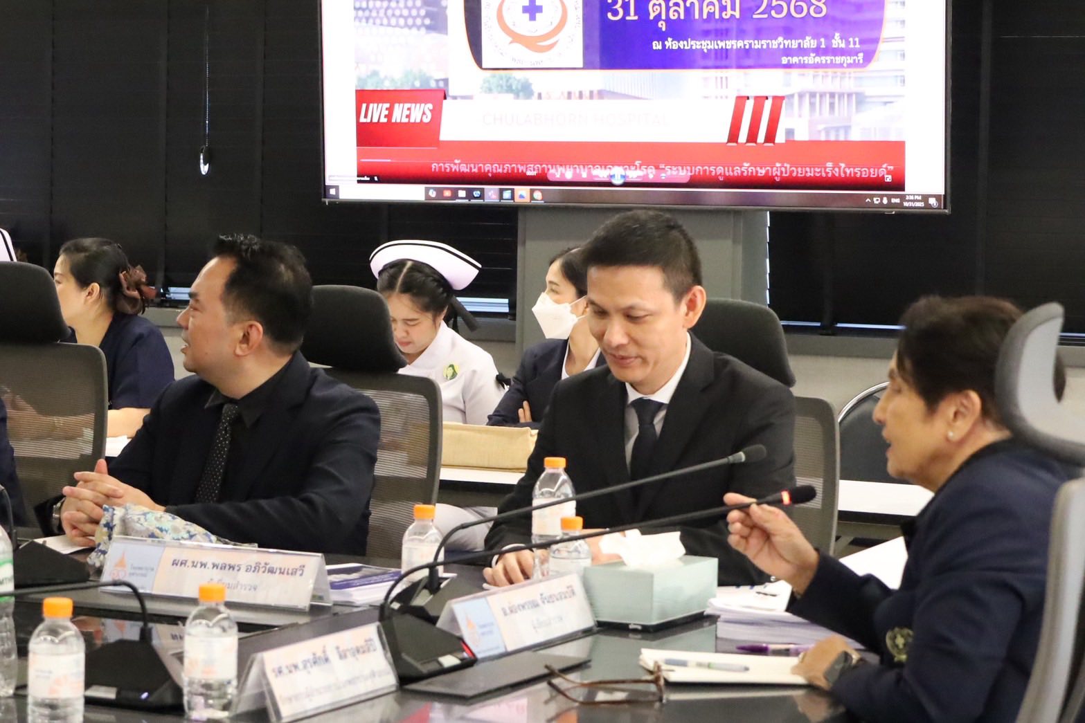 วันที่ 31 ตุลาคม 2568 โรงพยาบาลจุฬาภรณ์ ราชวิทยาลัยจุฬาภรณ์ นำโดย รศ.นพ.สุรศักดิ์ ลีลาอุดมลิปิ ผู้อำนวยการโรงพยาบาลจุฬาภรณ์, พญ. ชญานิน เรือนแป้น และ นพ. พีรพล เกียรติกิตติกุล ประธานคณะทำงาน DSC Thyroid cancer (ระบบการรักษาผู้ป่วยมะเร็งไทรอยด์) ผู้ช่วยผู้อำนวยการโรงพยาบาลจุฬาภรณ์ ด้านคุณภาพและความเสี่ยง ผู้อำนวยการศูนย์เพทสแกนและไซโคลตรอนแห่งชาติ ผู้อำนวยการศูนย์มะเร็งวิทยา หัวหน้างานโสต ศอ นาสิก พร้อมด้วยทีมฝ่ายการพยาบาล ทีมแพทย์สหสาขาต่าง ๆ และ ทีมบุคลากรสหสาขาวิชาชีพ โรงพยาบาลจุฬาภรณ์ ร่วมให้การต้อนรับคณะผู้เยี่ยมสำรวจเพื่อรับรองการพัฒนาคุณภาพสถานพยาบาลเฉพาะโรคหรือเฉพาะระบบ (Disease specific certification) จากสถาบันรับรองคุณภาพสถานพยาบาล (องค์การมหาชน) หรือ สรพ. โดยมีอาจารย์ผ่องพรรณ จันธนสมบัติ ผู้ทรงคุณวุฒิ หัวหน้าทีมผู้เยี่ยมสำรวจ, รศ.นพ. ภาวิน เกษกุล ประธานราชวิทยาลัยโสต ศอ นาสิก, ผศ.นพ. พลพร อภิวัฒนเสวี เลขา ราชวิทยาลัยโสต ศอ นาสิก และ ดร. อาภากร สุปัญญา ในการเข้าตรวจเยี่ยมสำรวจการให้บริการระบบบริการรักษาผู้ป่วยมะเร็งไทรอยด์ ของโรงพยาบาลจุฬาภรณ์ เขตหลักสี่ กรุงเทพมหานคร