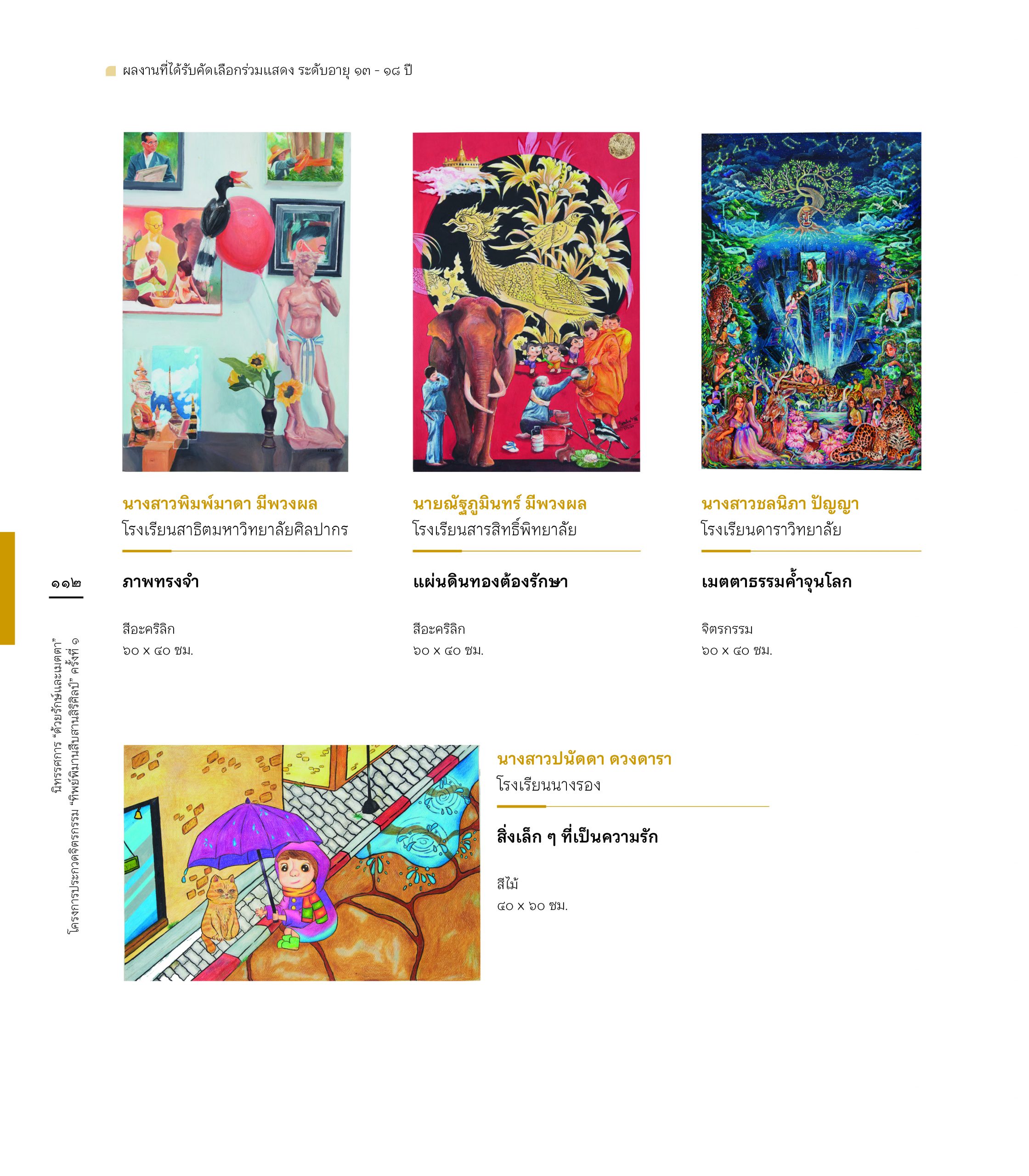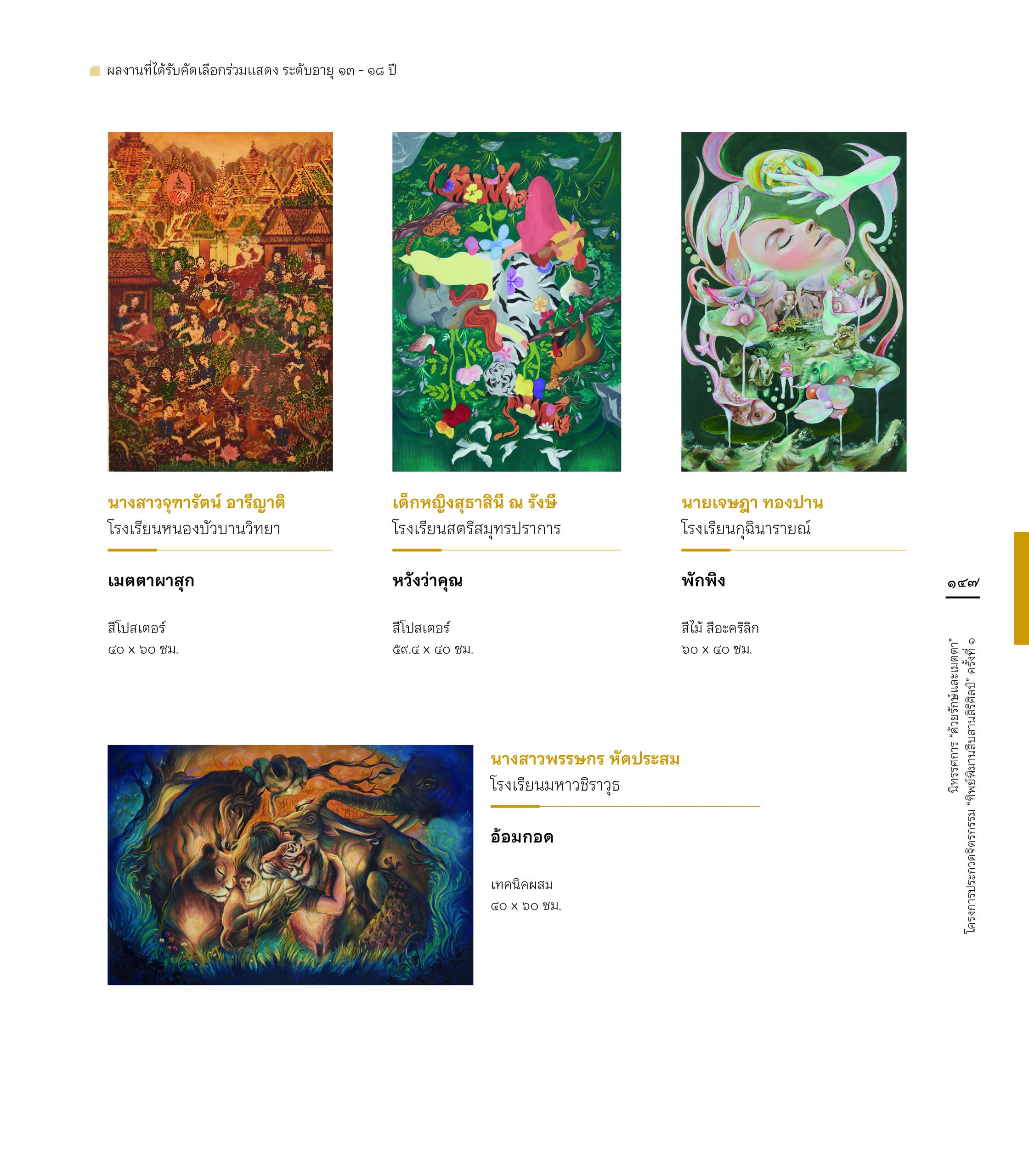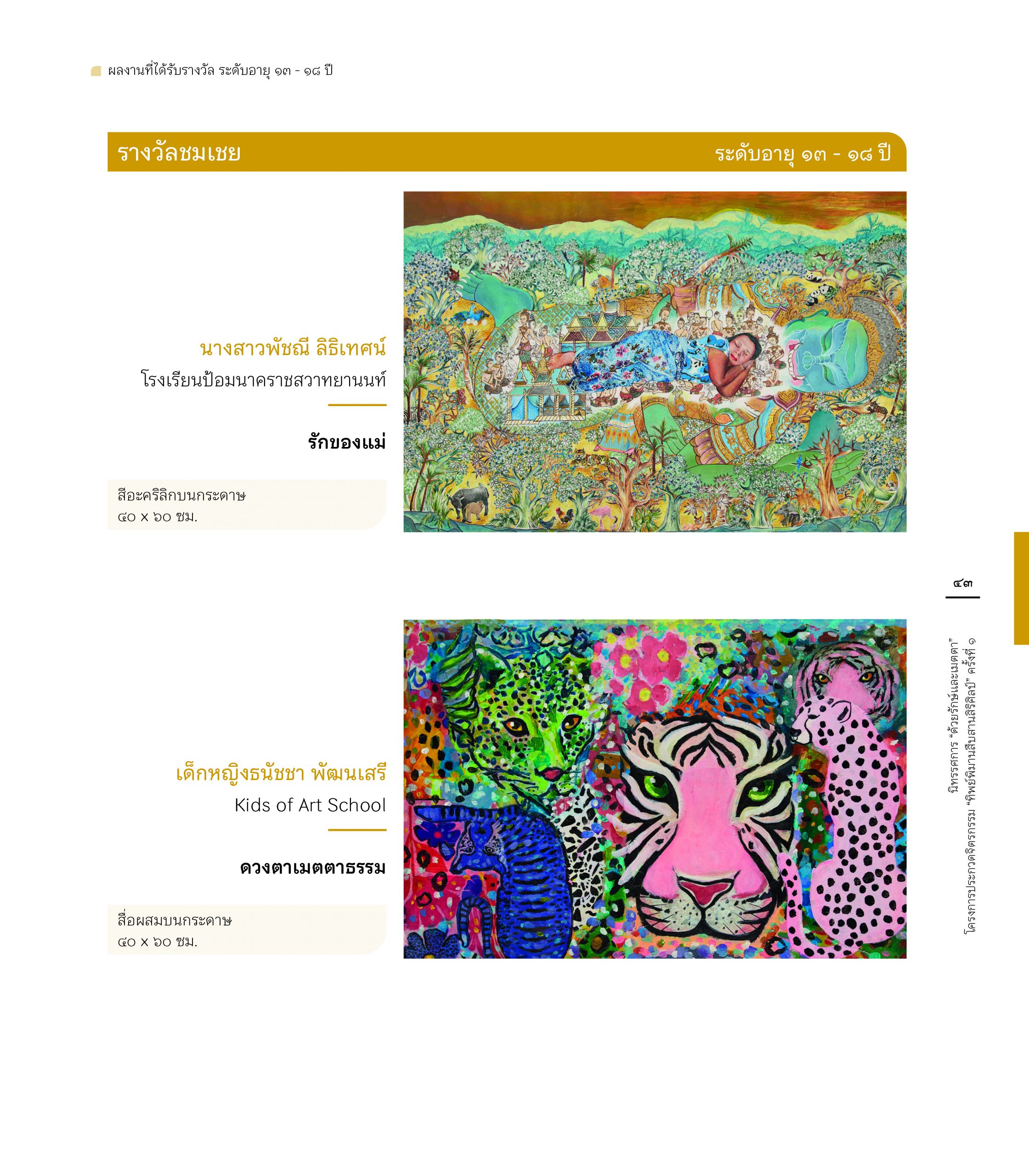 สูจิบัตร นิทรรศการ “ด้วยรักษ์และเมตตา” โครงการประกวดจิตรกรรม”ทิพย์พิมานสืบสานสิริศิลป์” ครั้งที่ 1 6 June 202418 June 2024 ข่าวสารองค์กร FacebookTwitterLine E-Book : https://www.cyberdg.com/Tippimarn_Art/Tippimarn-Art-Gallery.html#p=cover