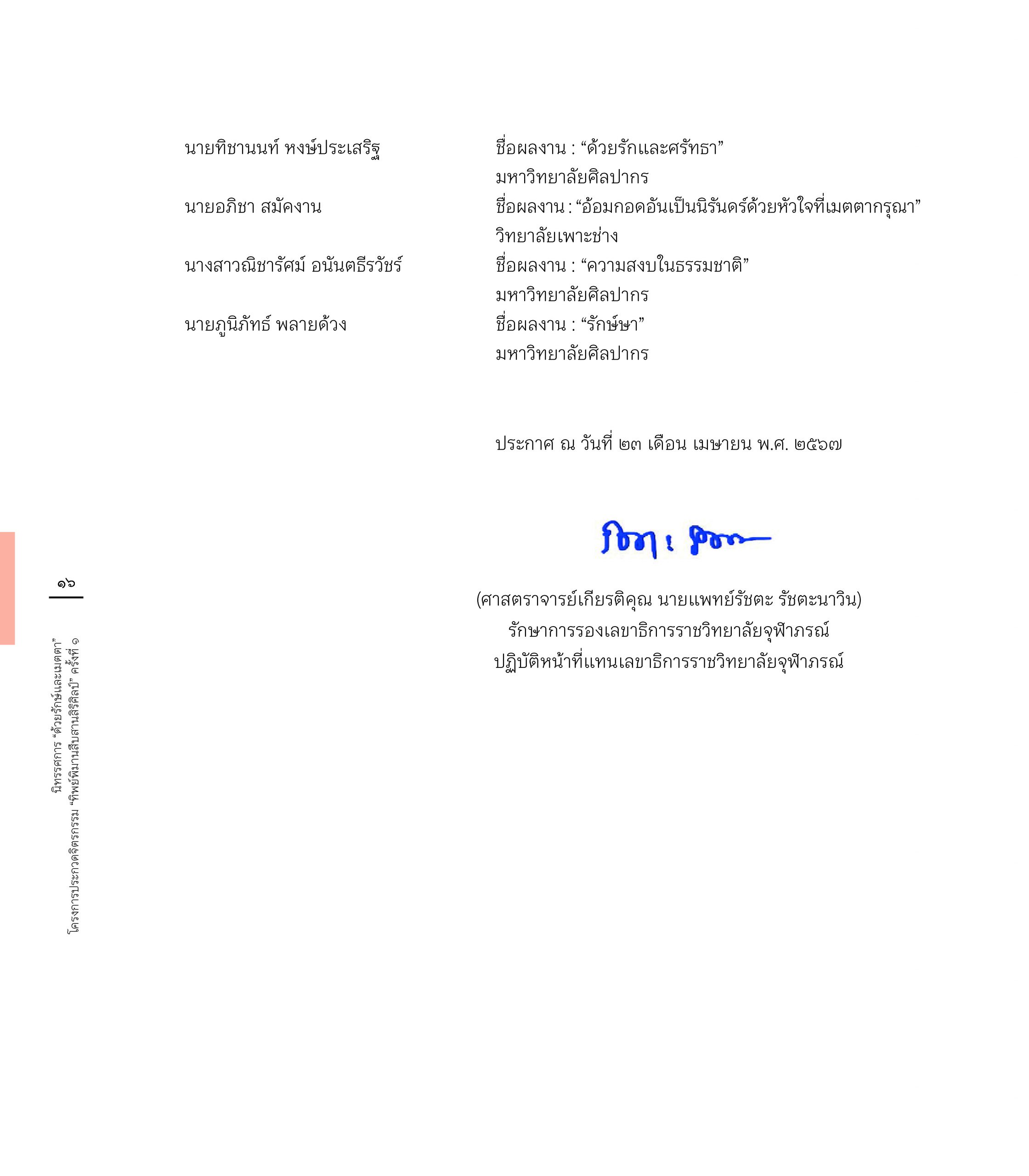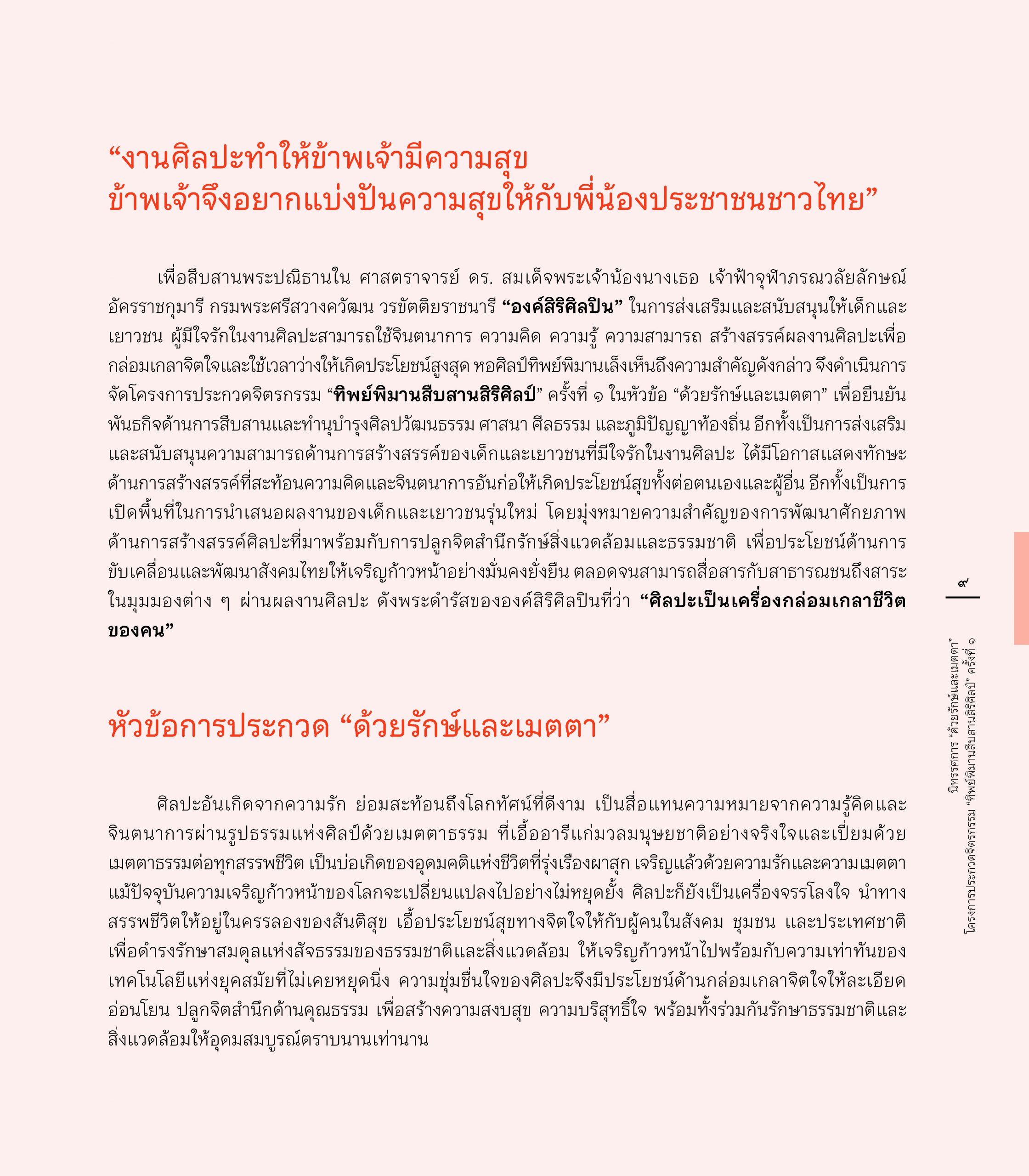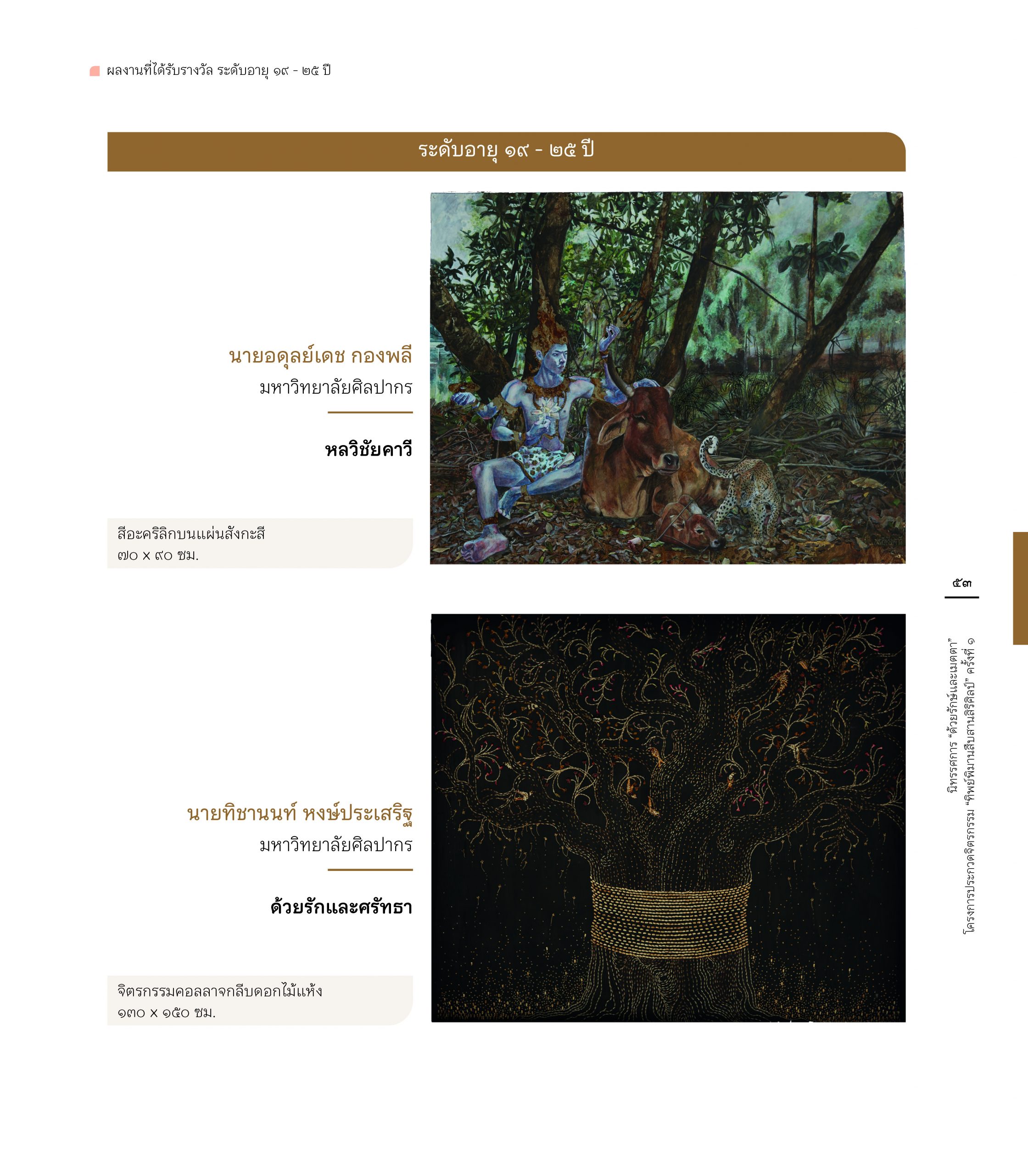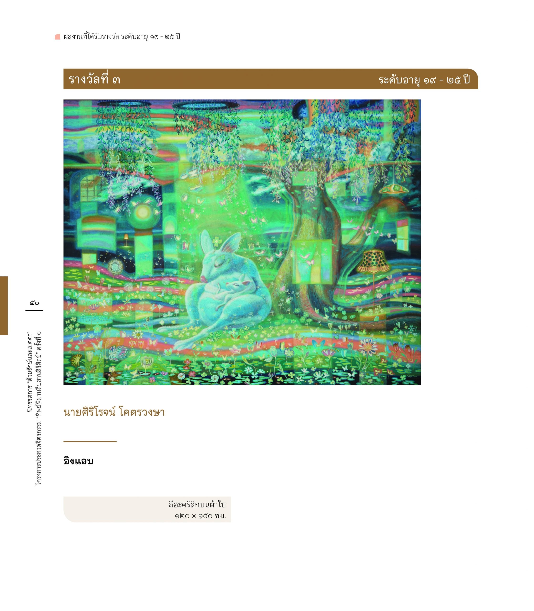 สูจิบัตร นิทรรศการ “ด้วยรักษ์และเมตตา” โครงการประกวดจิตรกรรม”ทิพย์พิมานสืบสานสิริศิลป์” ครั้งที่ 1 6 June 202418 June 2024 ข่าวสารองค์กร FacebookTwitterLine E-Book : https://www.cyberdg.com/Tippimarn_Art/Tippimarn-Art-Gallery.html#p=cover