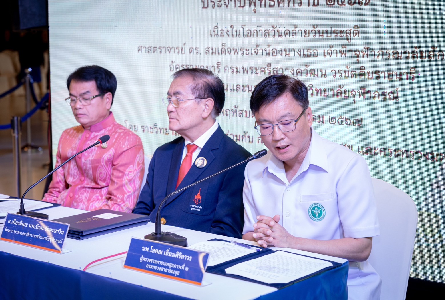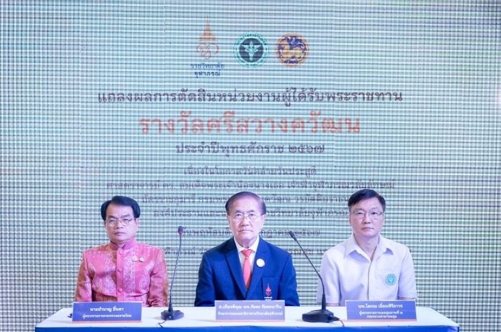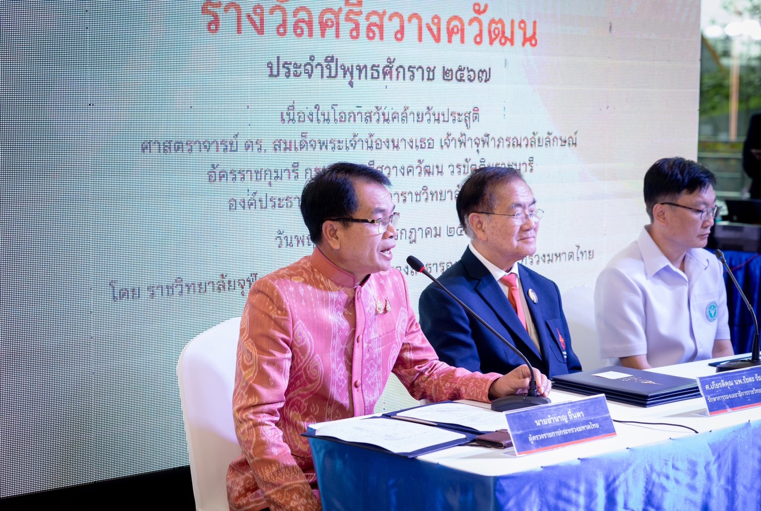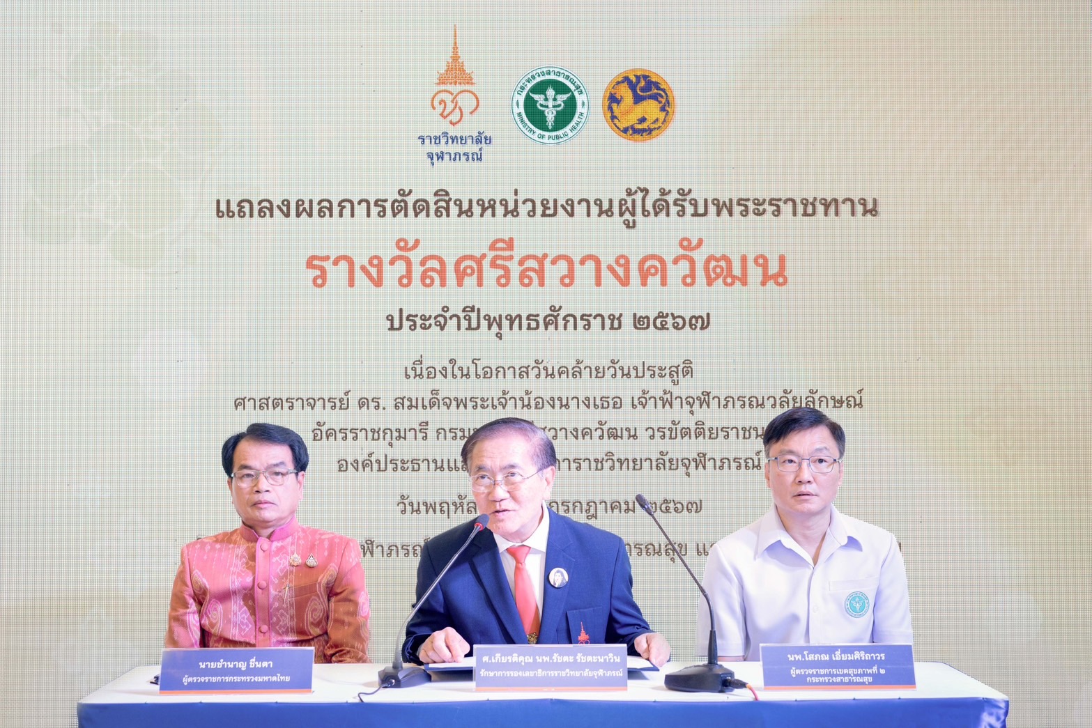๔ กรกฎาคม ๒๕๖๗ : เนื่องในโอกาสวันคล้ายวันประสูติ ศาสตราจารย์ ดร. สมเด็จพระเจ้าน้องนางเธอ เจ้าฟ้าจุฬาภรณวลัยลักษณ์ อัครราชกุมารี กรมพระศรีสวางควัฒน วรขัตติยราชนารี องค์ประธานและนายกสภาราชวิทยาลัยจุฬาภรณ์ ราชวิทยาลัยจุฬาภรณ์ ร่วมกับกระทรวงสาธารณสุข และกระทรวงมหาดไทย จัดพิธีแถลงผลการตัดสินหน่วยงานผู้ได้รับพระราชทานรางวัลศรีสวางควัฒน ประจำปีพุทธศักราช ๒๕๖๗ เพื่อน้อมสำนึกในพระกรุณาคุณและสืบสานพระปณิธานในการส่งเสริมให้โรงพยาบาลทั่วประเทศ พัฒนาการบริการที่มีประสิทธิภาพแก่ประชาชนอย่างต่อเนื่องเพื่อช่วยเหลือผู้ป่วยในทุกถิ่นฐาน โดยมีศาสตราจารย์เกียรติคุณ นายแพทย์รัชตะ รัชตะนาวิน รักษาการรองเลขาธิการราชวิทยาลัยจุฬาภรณ์ พร้อมด้วย นายแพทย์โสภณ เอี่ยมศิริถาวร ผู้ตรวจราชการเขตสุขภาพที่ ๒ กระทรวงสาธารณสุข และ นายชำนาญ ชื่นตา ผู้ตรวจราชการ กระทรวงมหาดไทย ร่วมแถลงผลผลการตัดสินหน่วยงานผู้ได้รับรางวัลศรีสวางควัฒน ประจำปีพุทธศักราช ๒๕๖๗ ณ ชั้น ๑ อาคารโรงพยาบาลจุฬาภรณ์ ขนาด ๔๐๐ เตียง เขตหลักสี่ กรุงเทพมหานคร