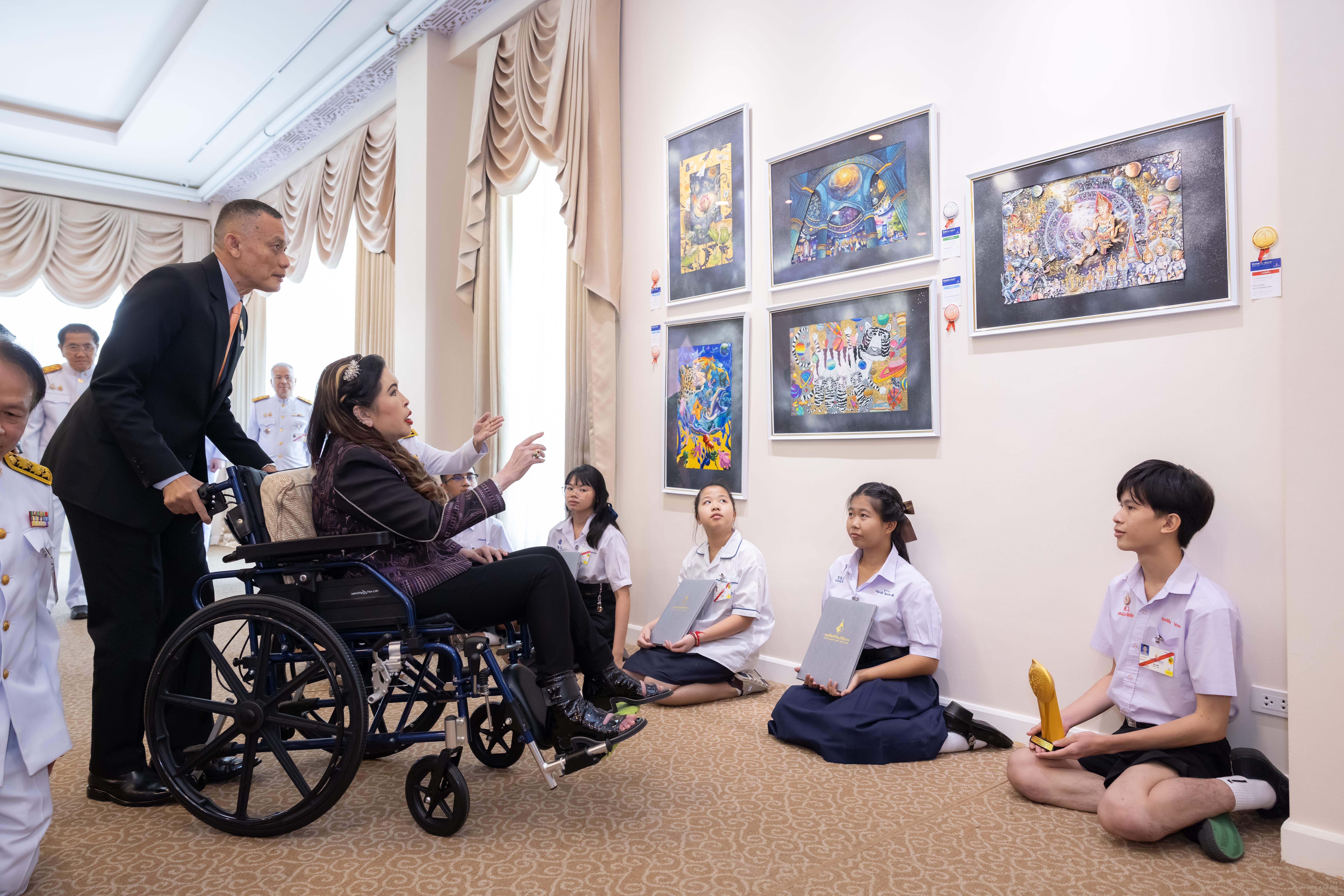 วันอังคารที่ ๑ กรกฎาคม ๒๕๖๘ เวลา ๑๐.๐๐ น. สมเด็จพระเจ้าน้องนางเธอ เจ้าฟ้าจุฬาภรณวลัยลักษณ์ อัครราชกุมารี กรมพระศรีสวางควัฒน วรขัตติยราชนารี เสด็จไปทรงเปิดนิทรรศการ “อวกาศ” โครงการประกวดจิตรกรรม “ทิพย์พิมานสืบสานสิริศิลป์” ครั้งที่ ๒ ณ หอศิลป์ทิพย์พิมาน ต.โป่งตาลอง อ.ปากช่อง จ.นครราชสีมา โดยมีนายปัญญา วิจินธนสาร ผู้อำนวยการหอศิลป์ทิพย์พิมาน รองศาสตราจารย์วิรัญญา จิราธิกิตติ์ รองผู้อำนวยการหอศิลป์ทิพย์พิมาน พร้อมด้วยคณะผู้บริหารราชวิทยาลัยจุฬาภรณ์ ผู้ว่าราชการจังหวัดนครราชสีมา รองอธิบดีผู้พิพากษาภาค ๓ ผู้บัญชาการมณฑลทหารบกที่ ๒๑ ผู้บังคับการตำรวจภูธรจังหวัดนครราชสีมา เฝ้ารับเสด็จ การนี้ พระราชทานพระวโรกาสให้ รองศาสตราจารย์วิรัญญา จิราธิกิตติ์ รองผู้อำนวยการหอศิลป์ทิพย์พิมาน เข้าเฝ้าถวายสูจิบัตร และนายปัญญา วิจินธนสาร ผู้อำนวยการหอศิลป์ทิพย์พิมาน กราบทูลรายงานวัตถุประสงค์การจัดงานและกราบทูลเบิกผู้ได้รับพระราชทานรางวัลโครงการประกวดจิตรกรรม “ทิพย์พิมานสืบสานสิริศิลป์” ครั้งที่ ๒ จำนวน ๕๖ รายเข้ารับพระราชทานรางวัล จากนั้น เสด็จไปทรงตัดแถบแพรเปิดนิทรรศการและทอดพระเนตรนิทรรศการ “อวกาศ” โอกาสนี้ ทรงฉายพระรูปร่วมกับคณะผู้จัดงานและเยาวชนที่ได้รับพระราชทานรางวัลฯ และเสด็จทอดพระเนตรผลงานศิลปะในโครงการประกวดจิตรกรรม “ทิพย์พิมานสืบสานสิริศิลป์” ครั้งที่ ๒ ซึ่งจัดแสดงอยู่ ณ อาคารหอศิลป์ทิพย์พิมาน ชั้น ๒ และชั้น ๓ ตามลำดับ