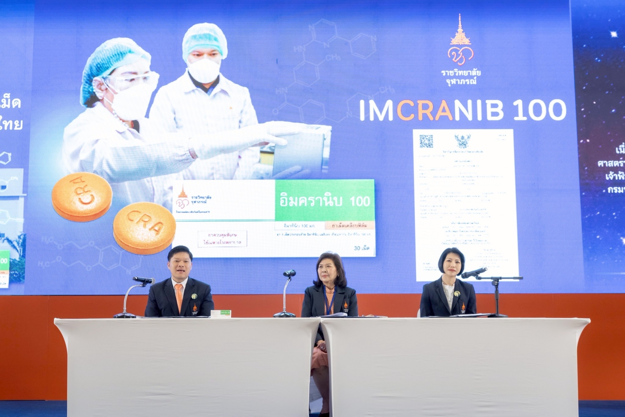 ✴️สำหรับ “ยาอิมครานิบ ๑๐๐” คือ ยารักษาแบบมุ่งเป้า ที่ยับยั้งการทำงานของเอนไซม์ Tyrosine kinase ที่สามารถยับยั้งการเติบโตและการกระจายของเซลล์มะเร็ง ทำให้สามารถควบคุมโรคได้อย่างมีประสิทธิภาพ และลดผลข้างเคียงเมื่อเทียบกับเคมีบำบัดแบบเดิม ซึ่งสามารถใช้รักษาโรคมะเร็งได้หลายประเภท เช่น โรคมะเร็งเม็ดเลือดขาวเรื้อรังชนิดซีเอ็มแอล มะเร็งเม็ดเลือดขาวเฉียบพลันชนิดฟิลาเดลเฟียบวก มะเร็งเนื้อเยื่อในระบบทางเดินอาหาร (GIST) มะเร็งผิวหนังชนิดหายาก (DFSP) แม้ว่ายาอิมมาทินิบนี้ จะสามารถเบิกจ่ายจากกองทุนสุขภาพได้ในหลายโรคแล้วก็จริง แต่ยังมีข้อจำกัดในบางโรค และบางระยะของโรคที่ยังไม่สามารถเบิกจ่ายจากกองทุนสุขภาพในปัจจุบัน การผลิตได้เองในประเทศ จะช่วยแก้ปัญหาข้อจำกัดนี้ โดยการขยายขอบเขตการใช้ยาให้ครอบคลุมทุกข้อบ่งชี้ของการรักษาซึ่งจะเพิ่มโอกาสในการควบคุมโรค ลดความทุกข์ทรมาน และช่วยให้ผู้ป่วยมีคุณภาพชีวิตที่ดีขึ้นอย่างแท้จริง ทั้งนี้ โรงพยาบาลจุฬาภรณ์ โดยศูนย์มะเร็งวิทยา ได้พิจารณานำยา “อิมครานิบ ๑๐๐” มาใช้ในฐานะโรงพยาบาลเฉพาะทางด้านโรคมะเร็ง ได้ทำหน้าที่เป็นตัวกลางที่สำคัญในการเชื่อมโยงองค์ความรู้ด้านวิทยาศาสตร์การแพทย์และศักยภาพของการผลิตยาคุณภาพสูงในประเทศ ไปสู่การนำไปใช้จริงกับผู้ป่วยอย่างเป็นระบบ นอกจากนี้ โรงพยาบาลยังมีความพร้อมในด้านระบบบริการ การจัดการยา และการติดตามข้อมูลผลลัพธ์ทางคลินิก โดยทำงานประสานร่วมกันระหว่างแพทย์ เภสัชกร และทีมสนับสนุน เพื่อให้การนำร่องนี้เกิดประสิทธิภาพและความปลอดภัยโดยคำนึงถึงประโยชน์สูงสุดของผู้ป่วยตั้งแต่เดือนกรกฎาคม ๒๕๖๘ เป็นต้นไป ความสำเร็จนี้นับเป็นพระกรุณาธิคุณที่ไม่เพียงช่วยเหลือประชาชนคนไทยให้พ้นจากทุกข์ภัยของโรคมะเร็งเท่านั้น แต่ยังเป็นการพัฒนาองค์ความรู้เพื่อเสริมสร้างทักษะความชำนาญด้านการพัฒนาตำรับ การผลิต การควบคุมคุณภาพ การประกันคุณภาพ การทดสอบทางเภสัชวิทยา และการขึ้นทะเบียนยารักษาโรคมะเร็งให้แก่บุคลากรและองค์กรที่เกี่ยวข้อง เป็นการยกระดับความสามารถด้านเภสัชอุตสาหการและเทคโนโลยีเภสัชกรรมและบุคลากรทางด้านนี้ของประเทศไทยให้พร้อมรองรับการผลิตและการวิจัยยารักษาโรคมะเร็งตำรับอื่นที่จะเกิดขึ้นในอนาคตต่อไป สร้างความมั่นคงทางยาให้กับประเทศในระยะยาวเพื่อยกระดับคุณภาพชีวิตของประชาชนไทยอย่างยั่งยืน