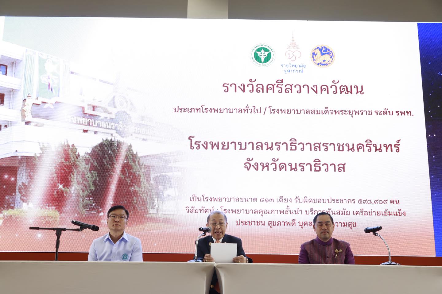 รางวัลชนะเลิศประเภทโรงพยาบาลทั่วไปและ โรงพยาบาลสมเด็จพระยุพราช (ระดับ รพท.) ได้แก่ โรงพยาบาลนราธิวาสราชนครินทร์ อำเภอเมืองนราธิวาส จังหวัดนราธิวาส เป็นโรงพยาบาลทั่วไป ขนาด ๔๑๓ เตียง โดยเป็นโรงพยาบาลที่มีการพัฒนาระบบบริการโรคหลอดเลือดสมองที่บูรณาการได้อย่างครอบคลุม นำไปสู่การสร้างผลลัพธ์การลดอัตราตายอย่างเด่นชัด สามารถลดความพิการ และยกระดับคุณภาพชีวิตผู้ป่วยได้อย่างเป็นรูปธรรม เชื่อมระบบสุขภาพเข้ากับบริบทที่ท้าทายทางศาสนาและวัฒนธรรมของบริบทพื้นที่ โดยระดมพลังเครือข่ายบริการสุขภาพ เครือข่ายชุมชน เครือข่ายผู้นำศาสนา เครือข่ายองค์กรปกครองส่วนท้องถิ่น และเครือข่ายภาคีวิชาชีพให้เกิดประสิทธิภาพสูงสุดด้วยวิสัยทัศน์ในการโรงพยาบาลคุณภาพ ชั้นนำ บริการทันสมัย เครือข่ายเข้มแข็ง ประชาชนสุขภาพดี บุคลากรมีความสุข