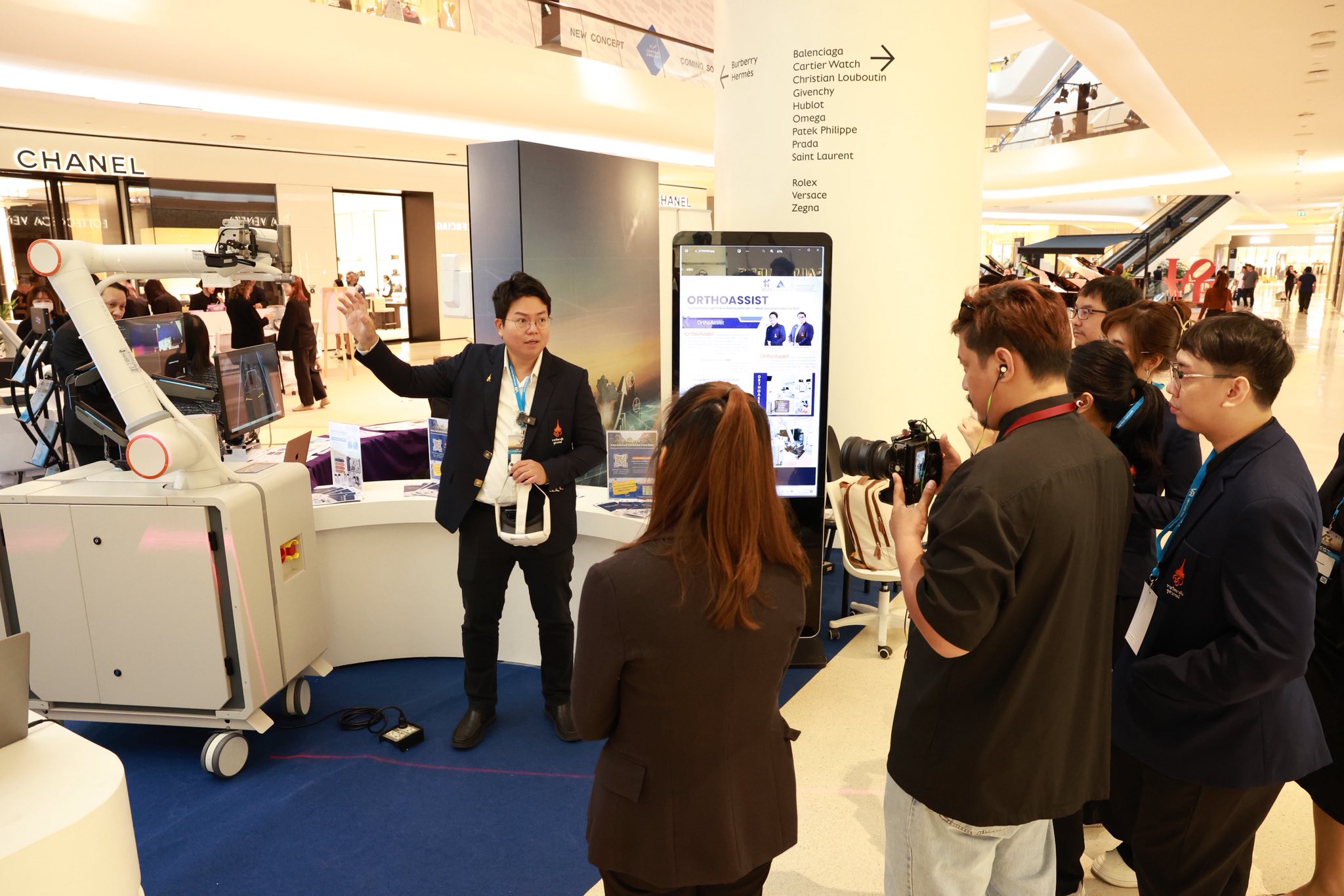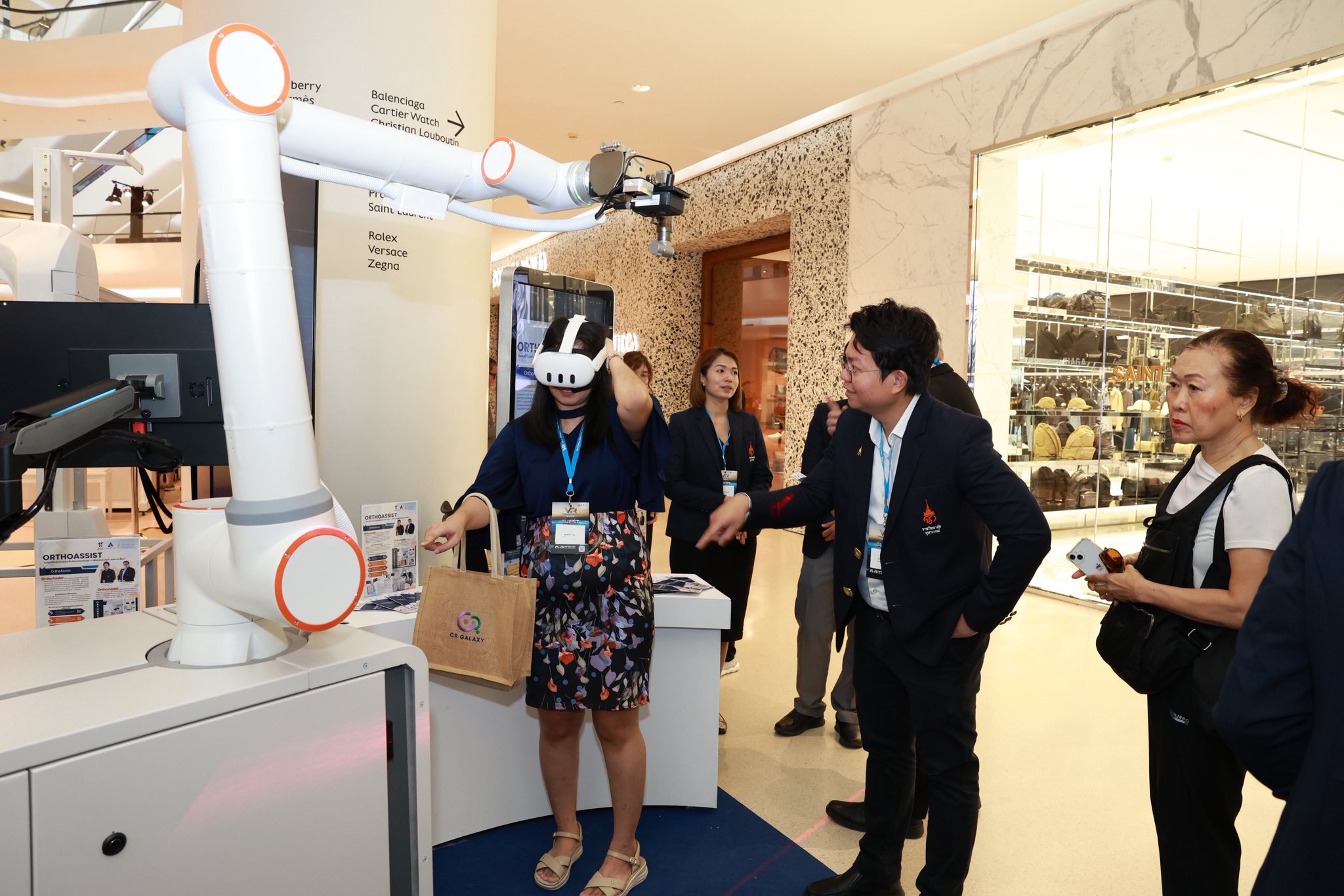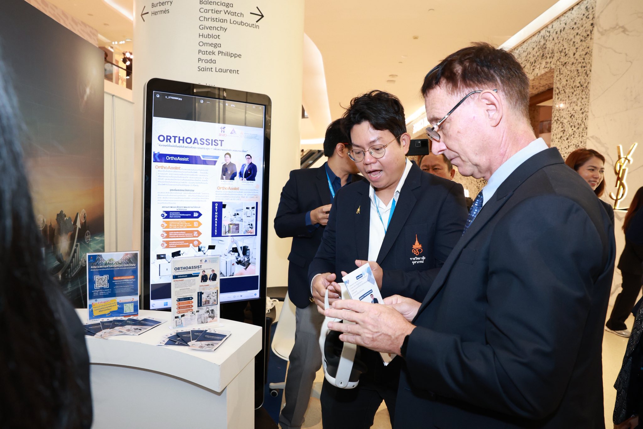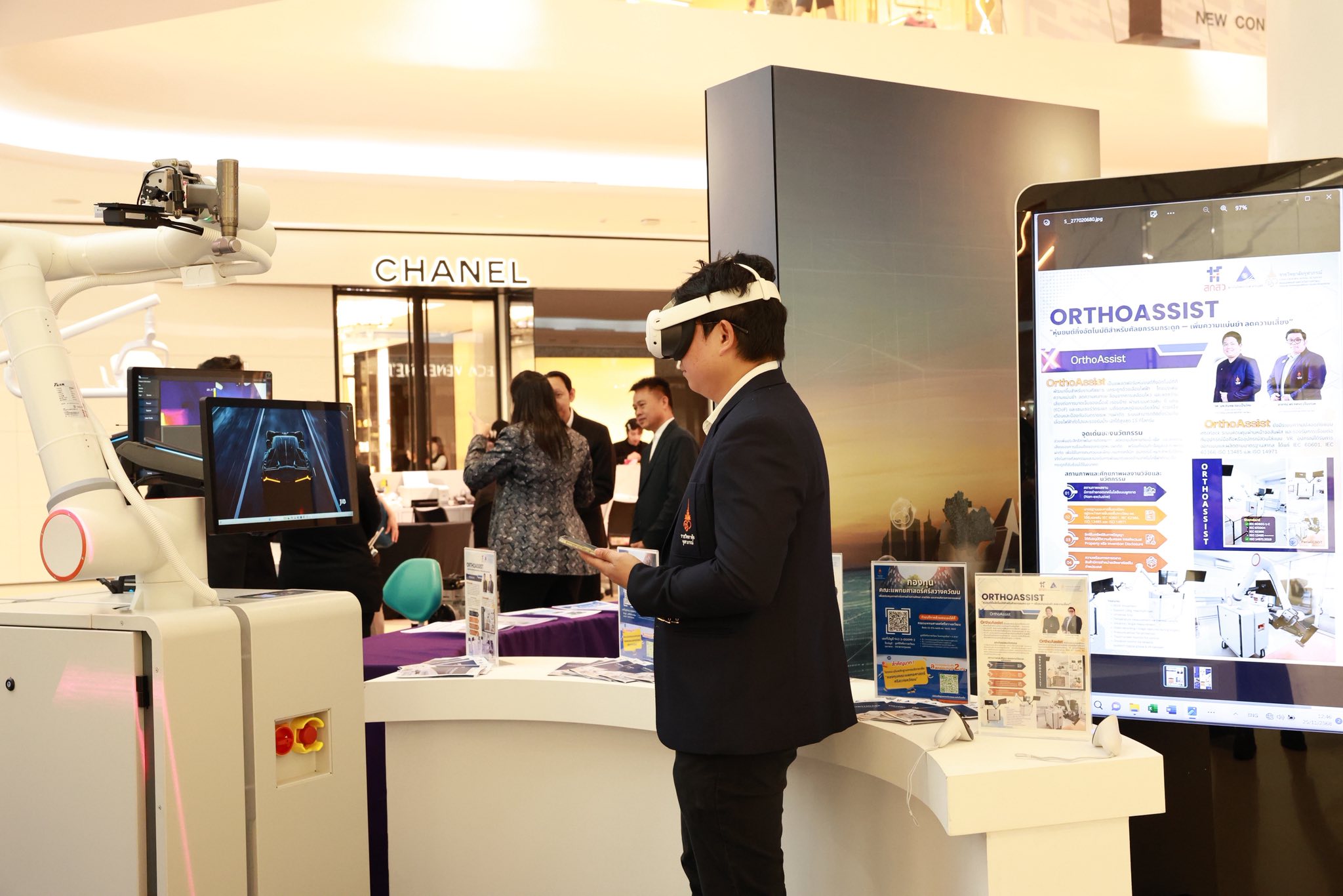 ในโอกาสนี้ คณะแพทยศาสตร์ศรีสวางควัฒน ราชวิทยาลัยจุฬาภรณ์ นำโดย รศ.นพ.ธนพล ชอบเป็นไทย หัวหน้าโครงการวิจัย และ อาจารย์ ดร.ทศพร เฟื่องรอด ผู้ร่วมวิจัย ได้นำนวัตกรรม “ORTHOASSIST – หุ่นยนต์กึ่งอัตโนมัติสำหรับศัลยกรรมกระดูก เพื่อความแม่นยำ ลดความเสี่ยงและสามารถควบคุมระยะไกลได้ผ่านระบบ AR augmented reality” ซึ่งได้การสนับสนุนทุนวิจัยโดย สวรส และ ววน. เข้าร่วมจัดแสดงในนิทรรศการของงาน เพื่อเผยแพร่สู่สาธารณชนและเปิดโอกาสสำหรับการทดสอบศักยภาพทางการตลาด นวัตกรรม ORTHOASSIST นับเป็นอีกหนึ่งความก้าวหน้าทางการแพทย์ที่เกิดจากความร่วมมือของทีมวิจัยไทย ซึ่งได้รับความสนใจจากผู้เข้าร่วมงานอย่างต่อเนื่อง สอดคล้องกับเป้าหมายของการจัดงาน VR Thailand ๒๐๒๕ ในการขับเคลื่อนนวัตกรรมสู่เชิงพาณิชย์และยกระดับขีดความสามารถการแข่งขันของประเทศในอนาคต