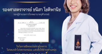 ราชวิทยาลัยจุฬาภรณ์ ขอแสดงความยินดีกับ รองศาสตราจารย์ แพทย์หญิงชนิสา โชติพานิช รองผู้อำนวยการโรงพยาบาลจุฬาภรณ์